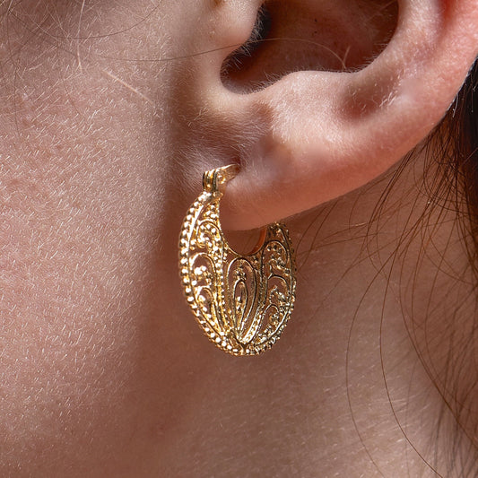 Filigree gold dangle earrings, Solid 14k gold victorian earrings