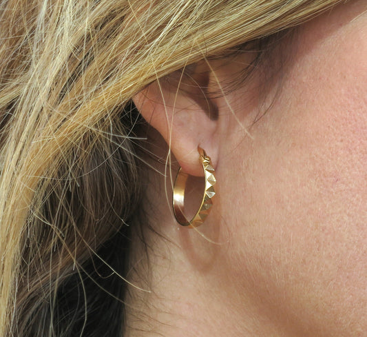 Gold hoop earrings, 14K real gold textured hoop earrings