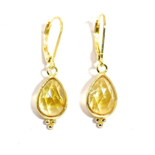 14K Gold Citrine Earrings, Teardrop Yellow Stone Dangle Earrings, November Birthstone Earrings, Pear Shaped Gemstone Earrings for Women