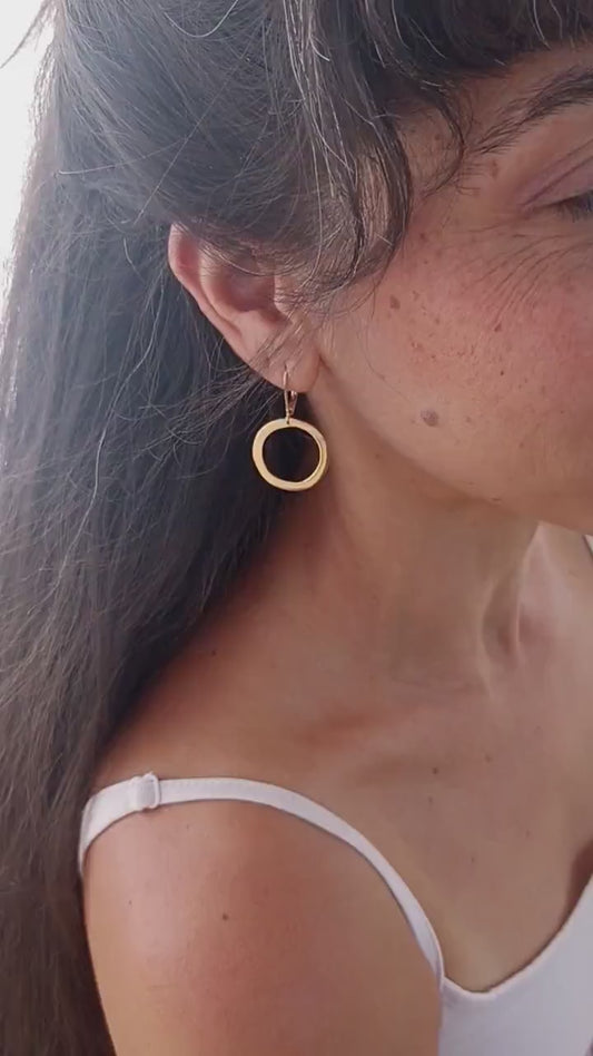 Open circle dangle earrings, Solid 14K gold hoop earrings