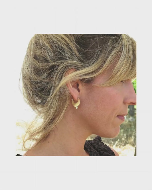 Crescent 14K solid Gold hoop earrings, Vintage hoop earrings