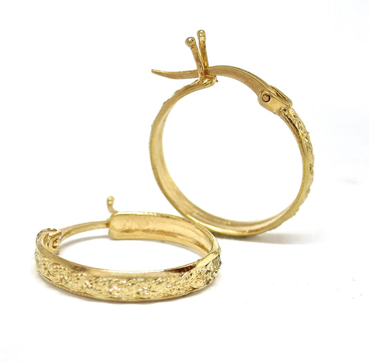 Gold hoop earrings, 14K real gold textured hoop earrings