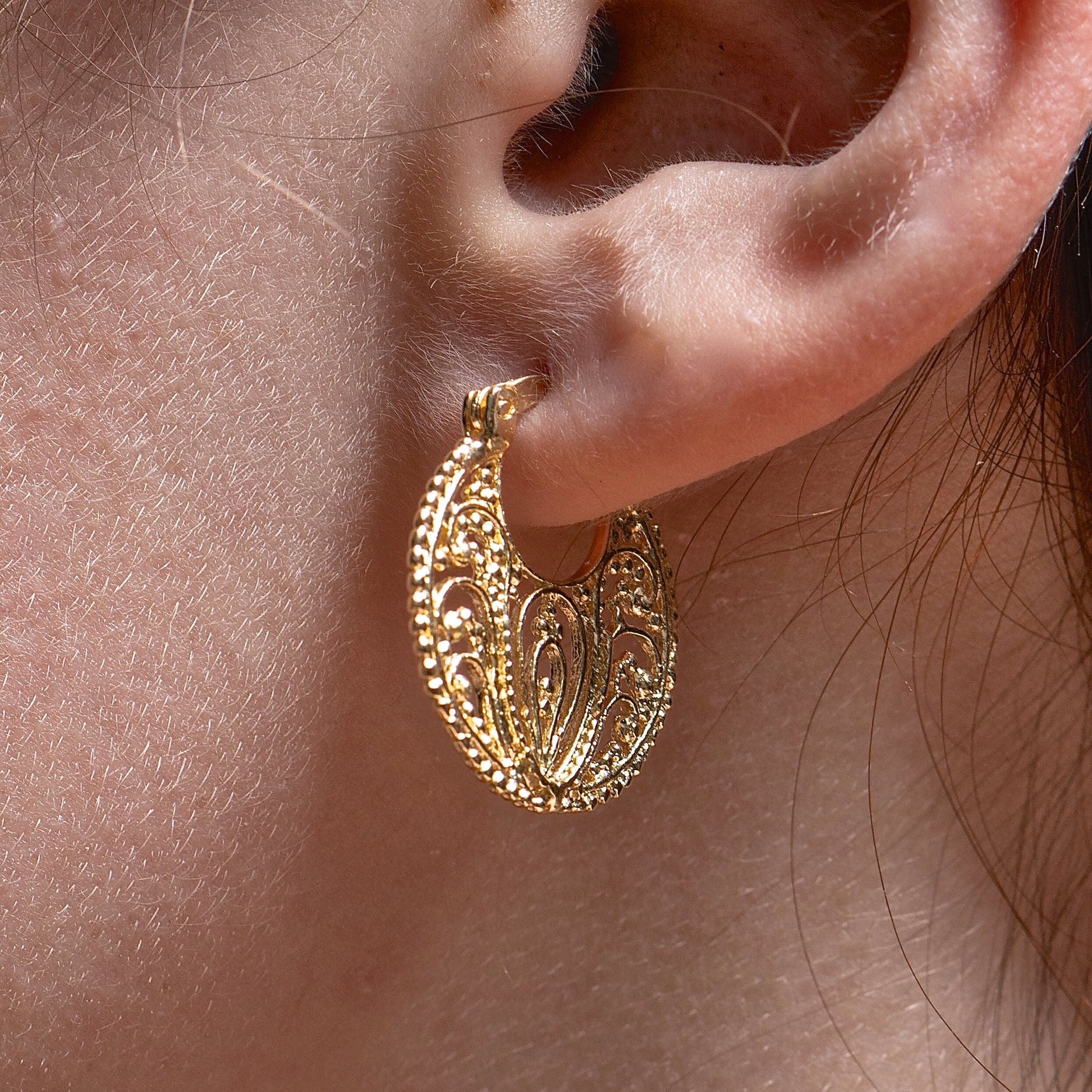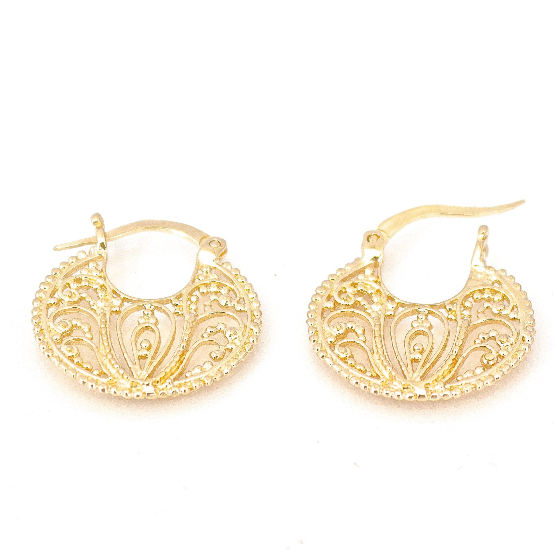 14k solid gold filigree hoop earrings