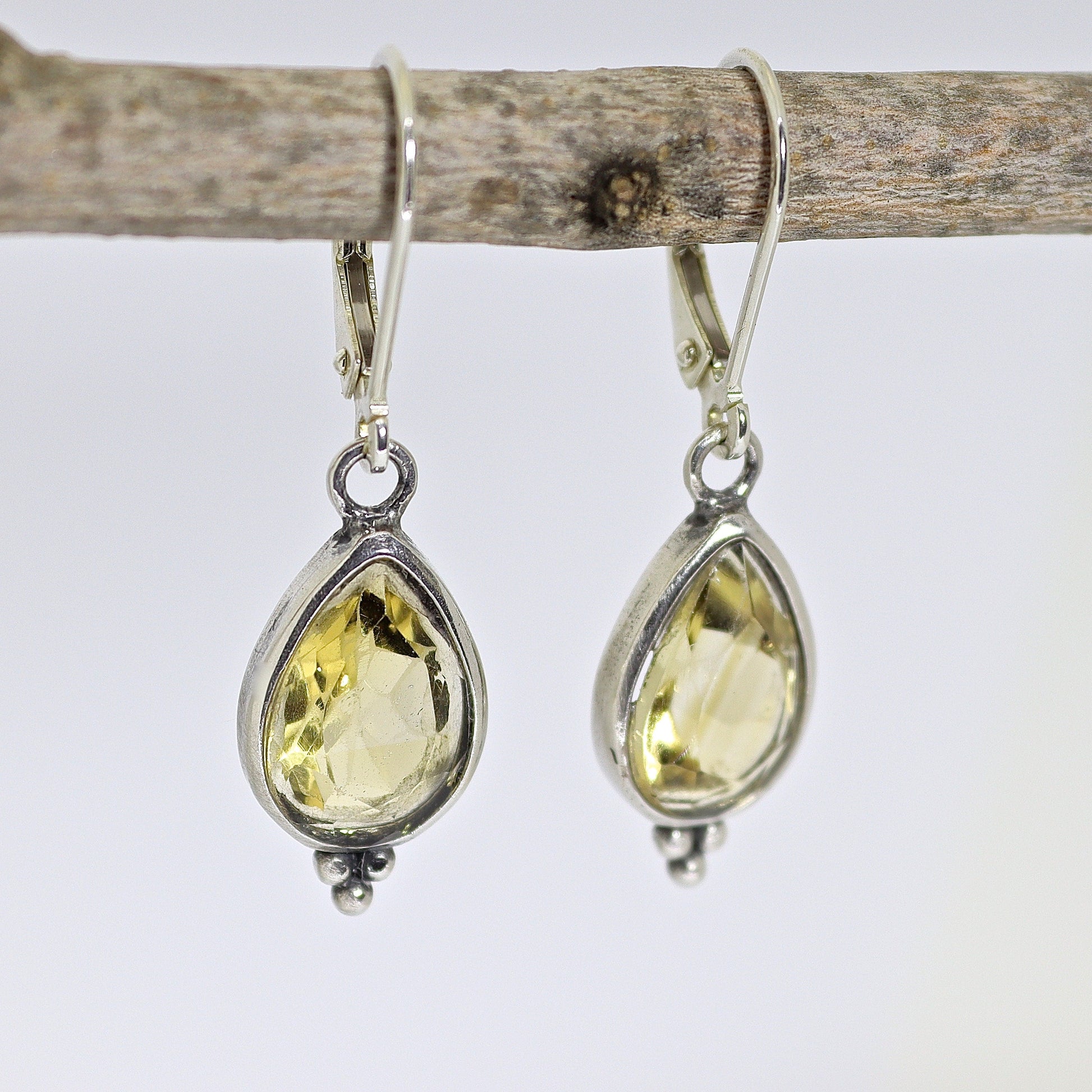 Citrine earrings, Teardrop yellow stone silver dangle earrings