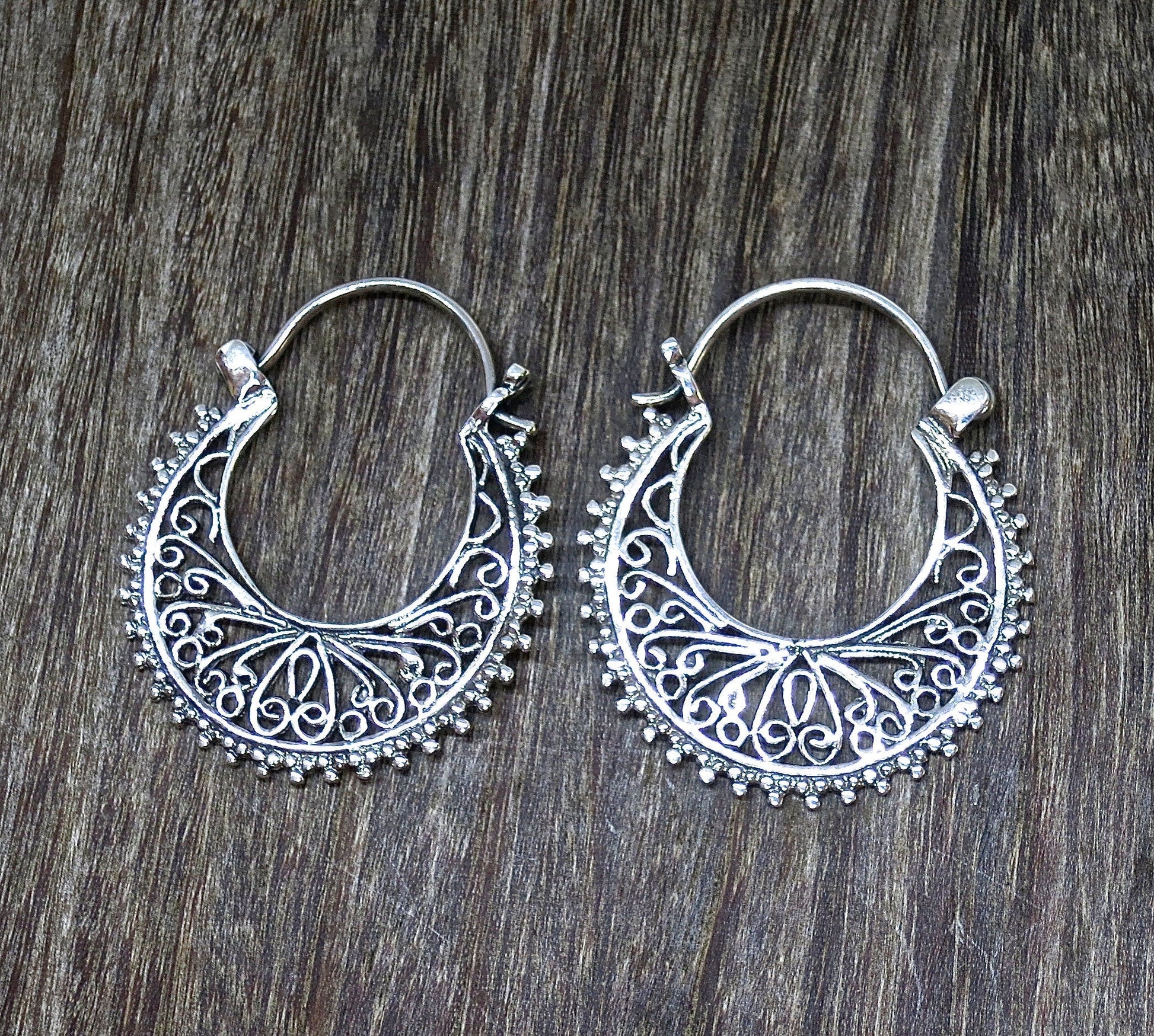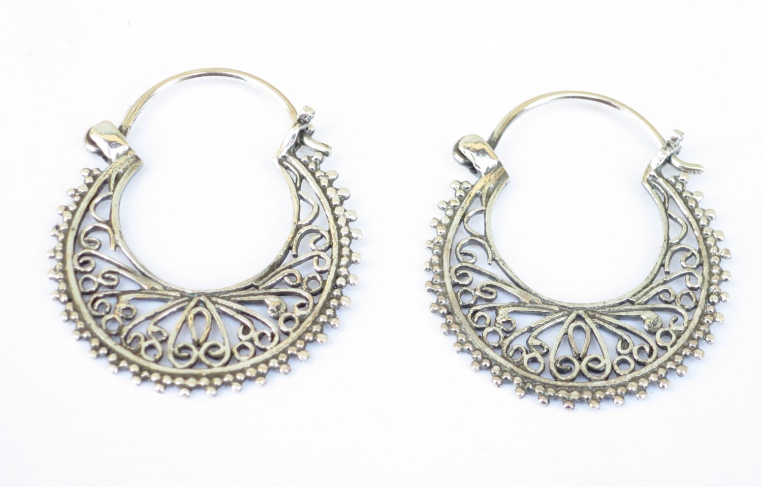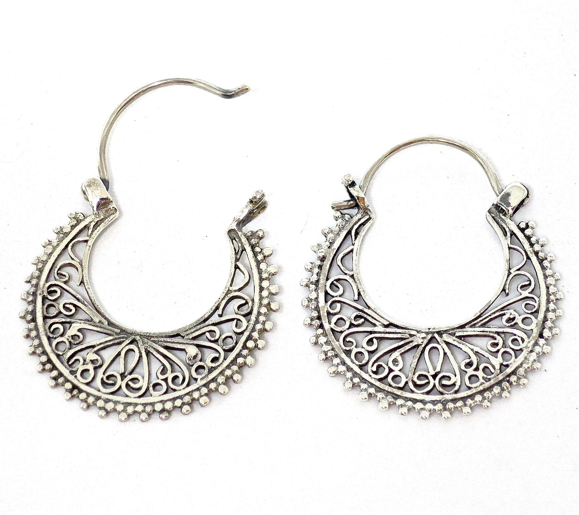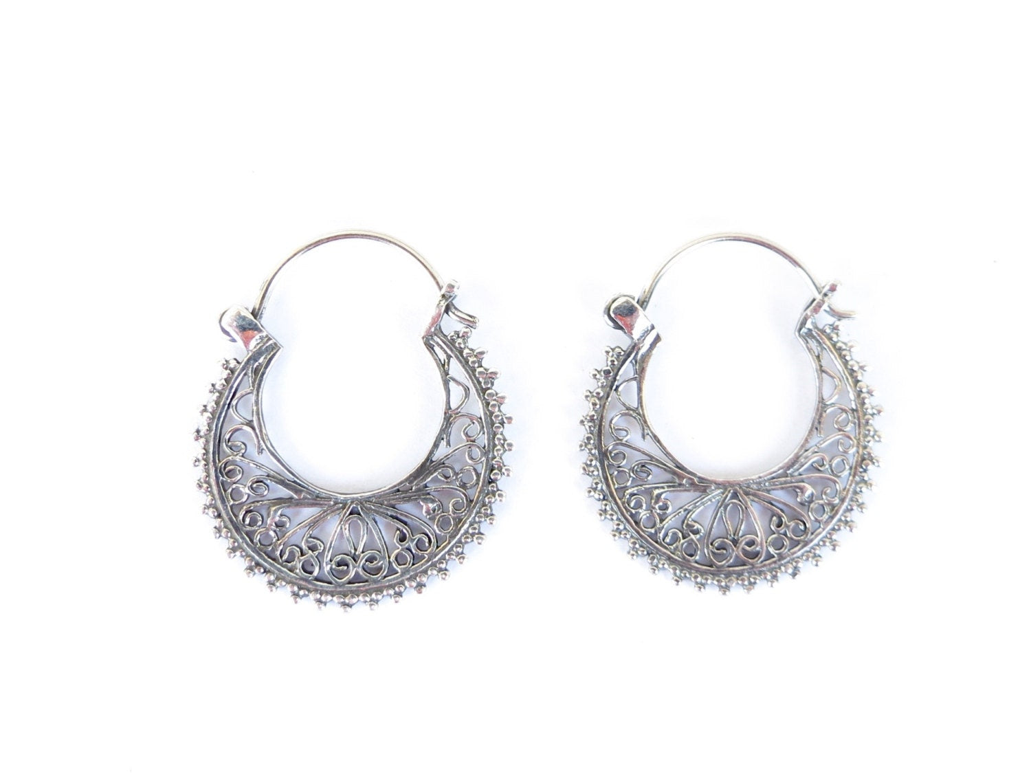 Sterling silver hoop earring, lace silver earrings, Filigree silver hoops