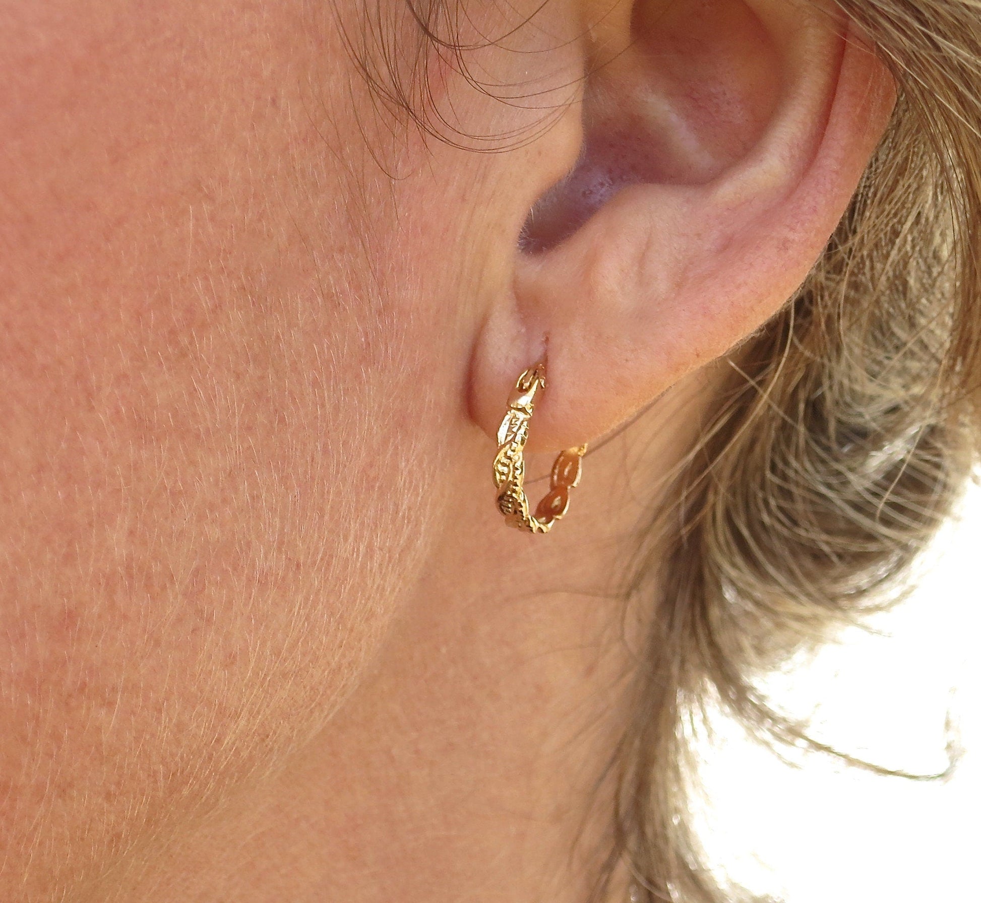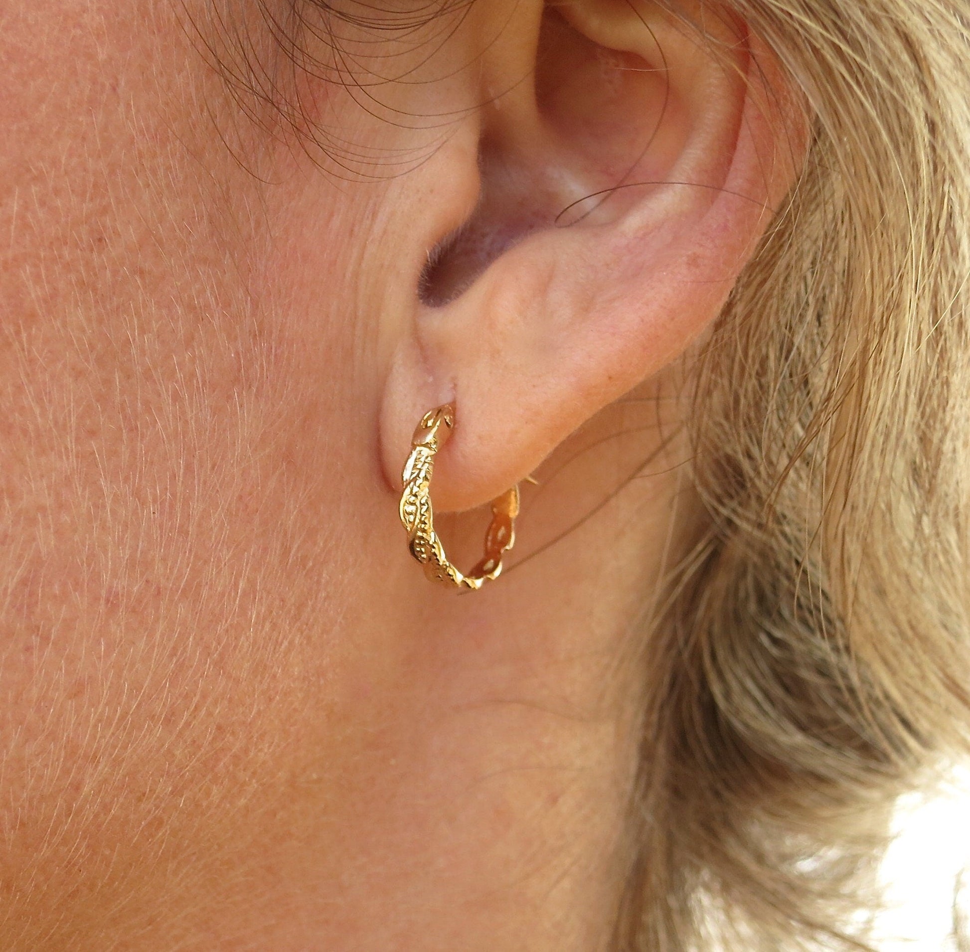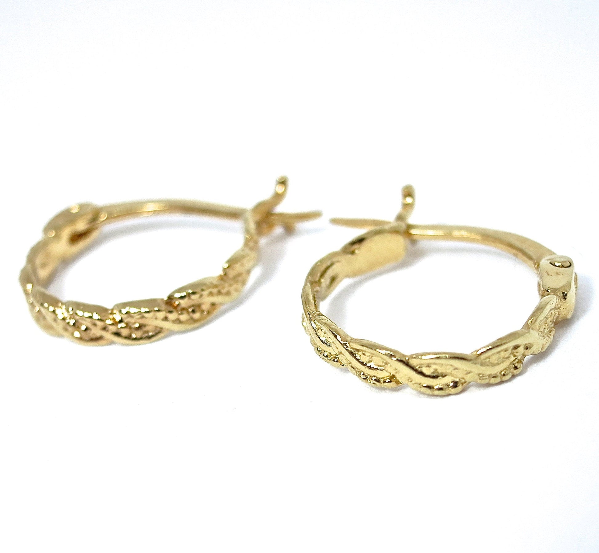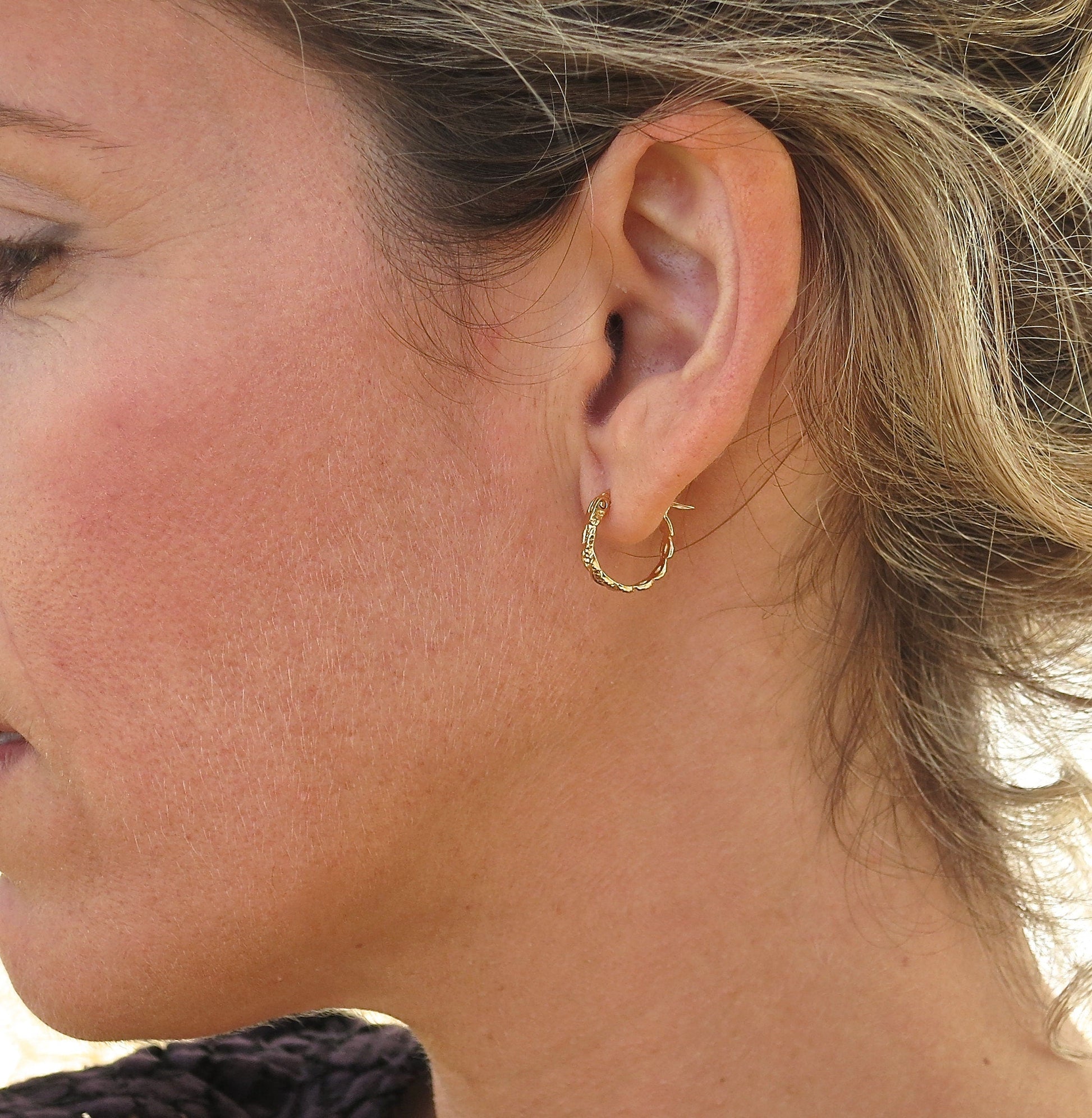 14k Gold Hoop earrings, Tiny hoop earrings, Twisted hoop earrings, Women hoops, gold earrings, Textured hoop earrings.
