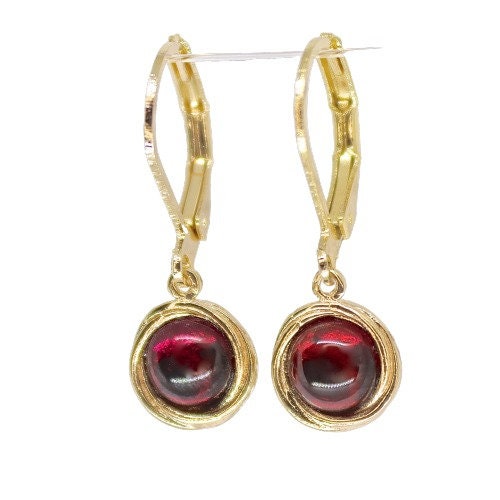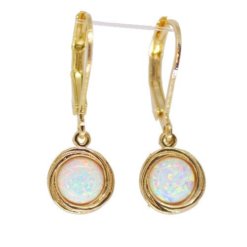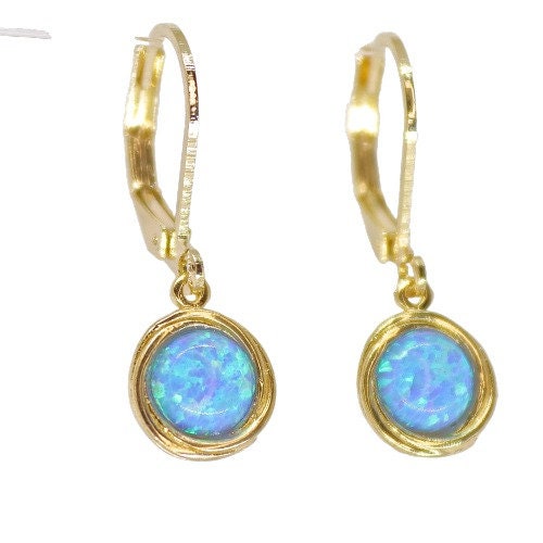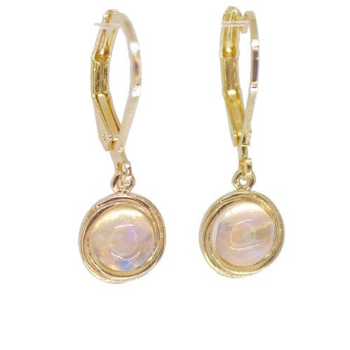 14K gold Jade earrings, Green stone gold earrings, Small round stone gold earrings