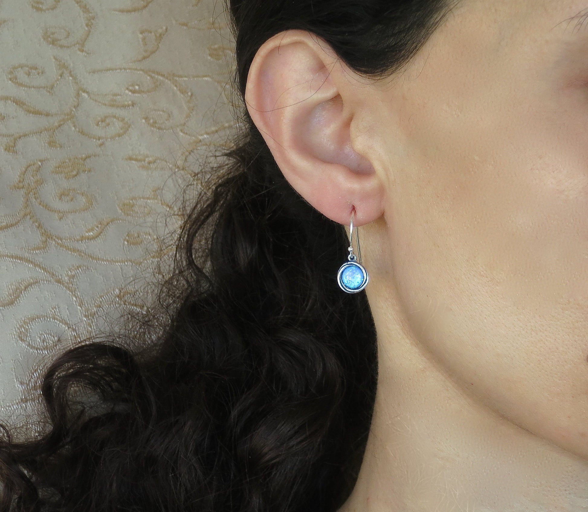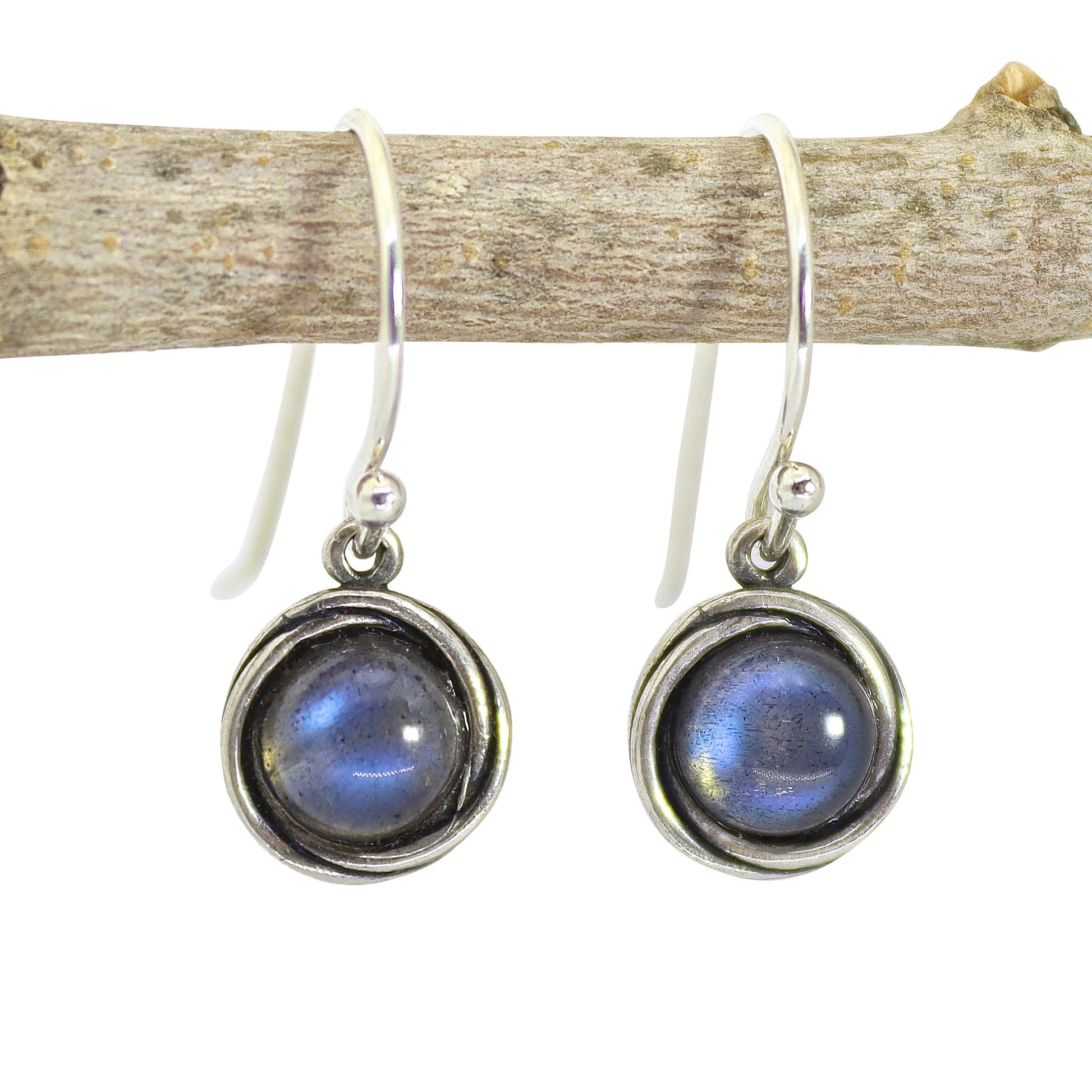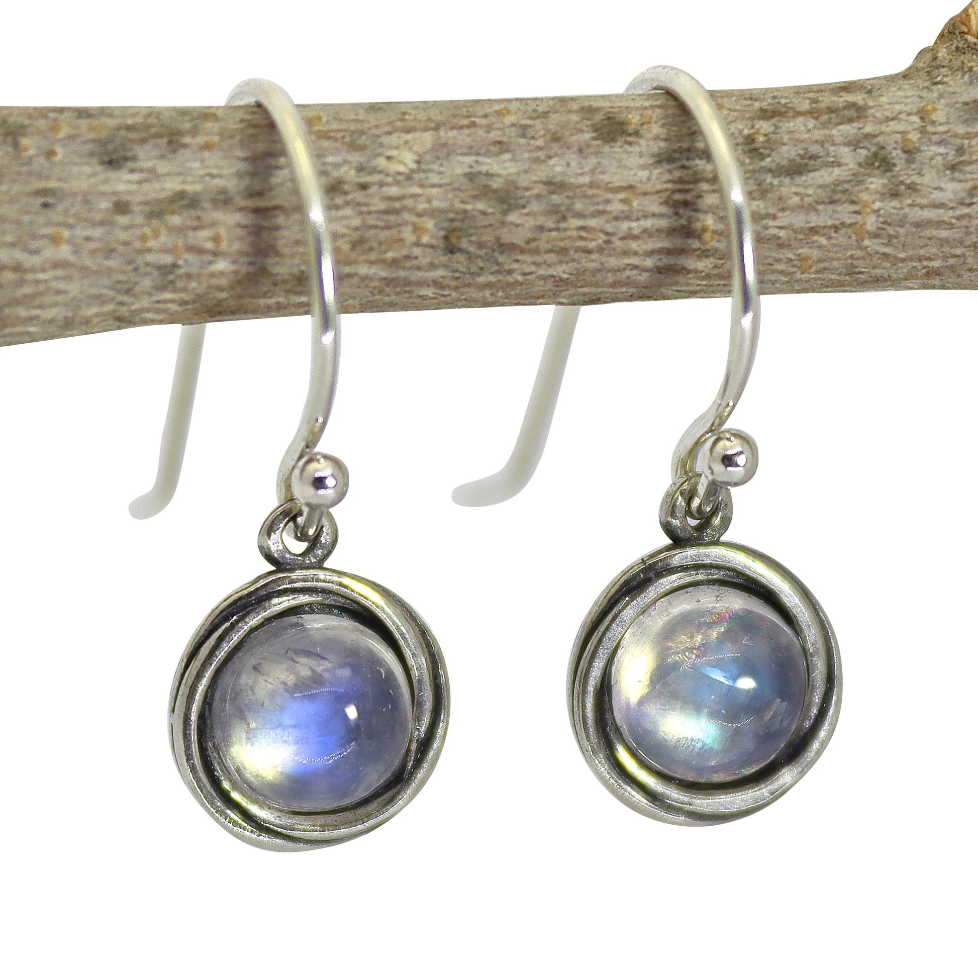 Jade earrings, Sterling silver 925 round stone dangle earrings