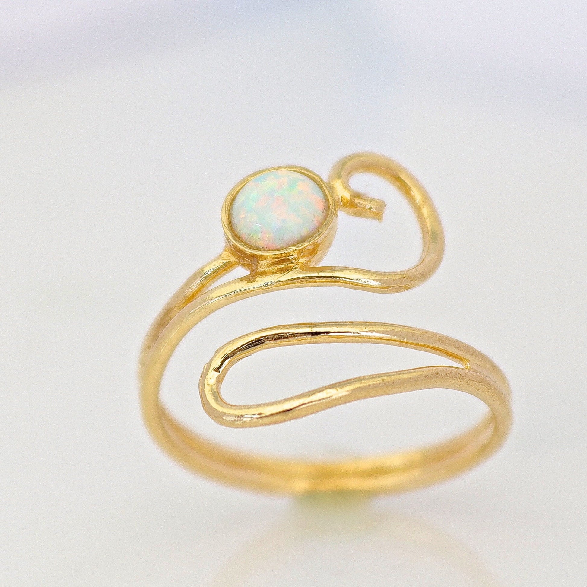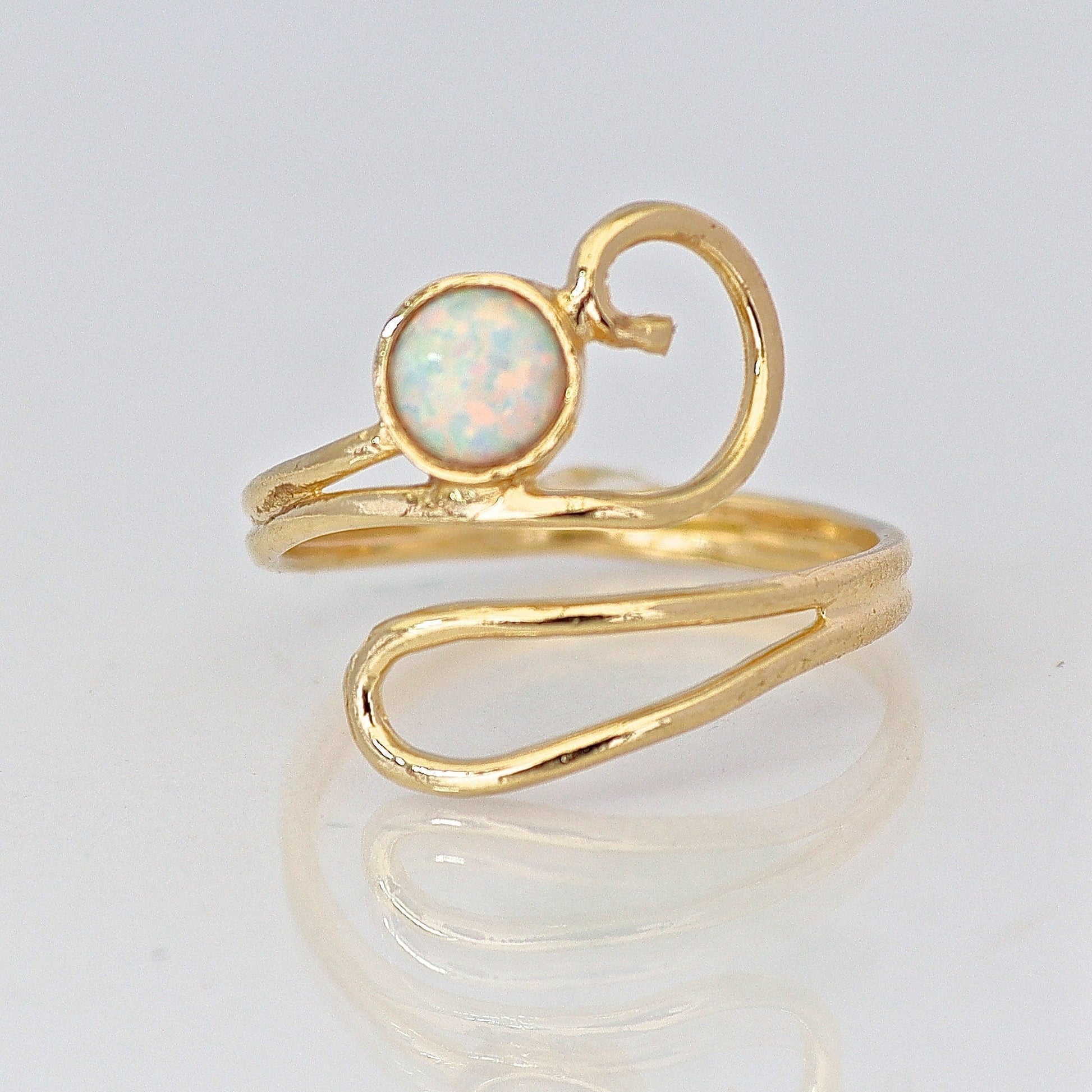 Opal gold ring, Adjustable white opal solid 14k gold ring