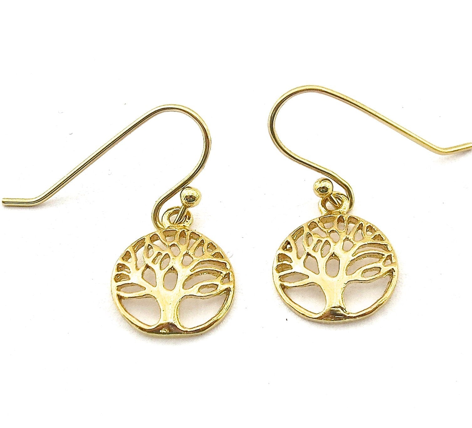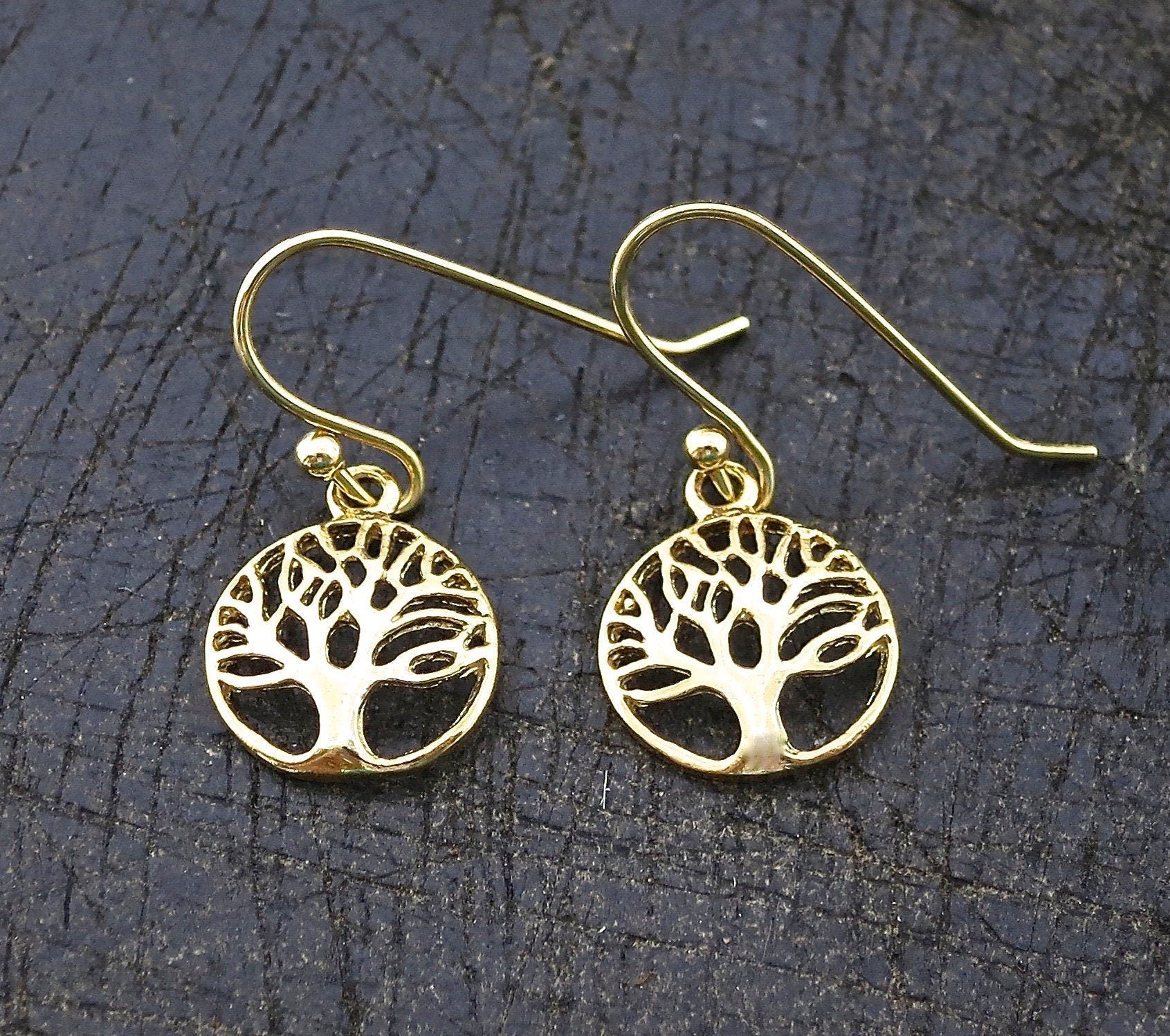 Tree of Life gold dangle Earrings, Solid 14k gold tree earrings