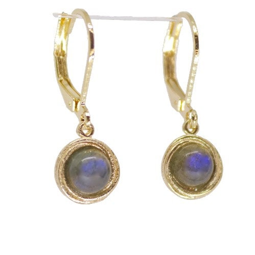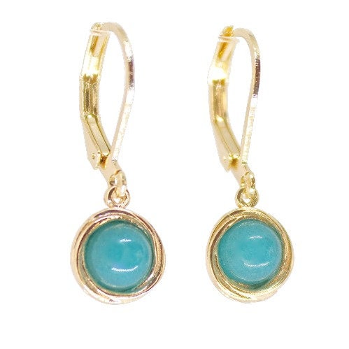 14K gold Turquoise earrings, Turquoise stone gold earrings, Small round stone gold earrings