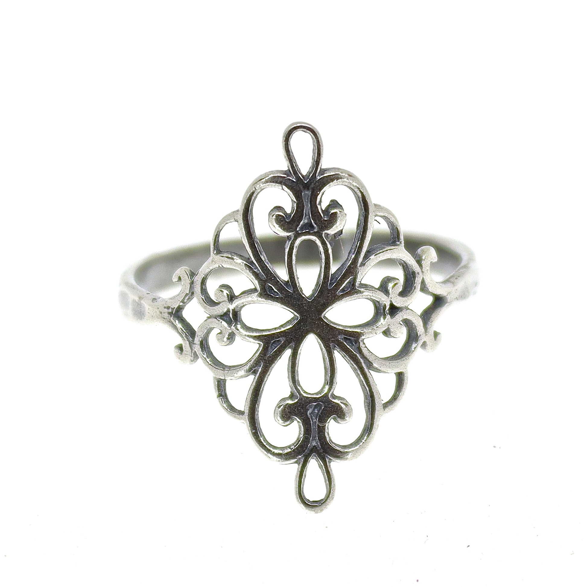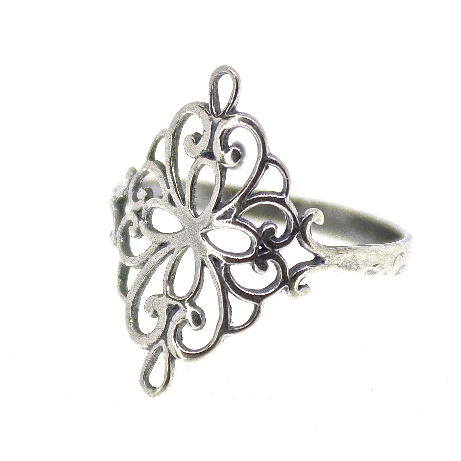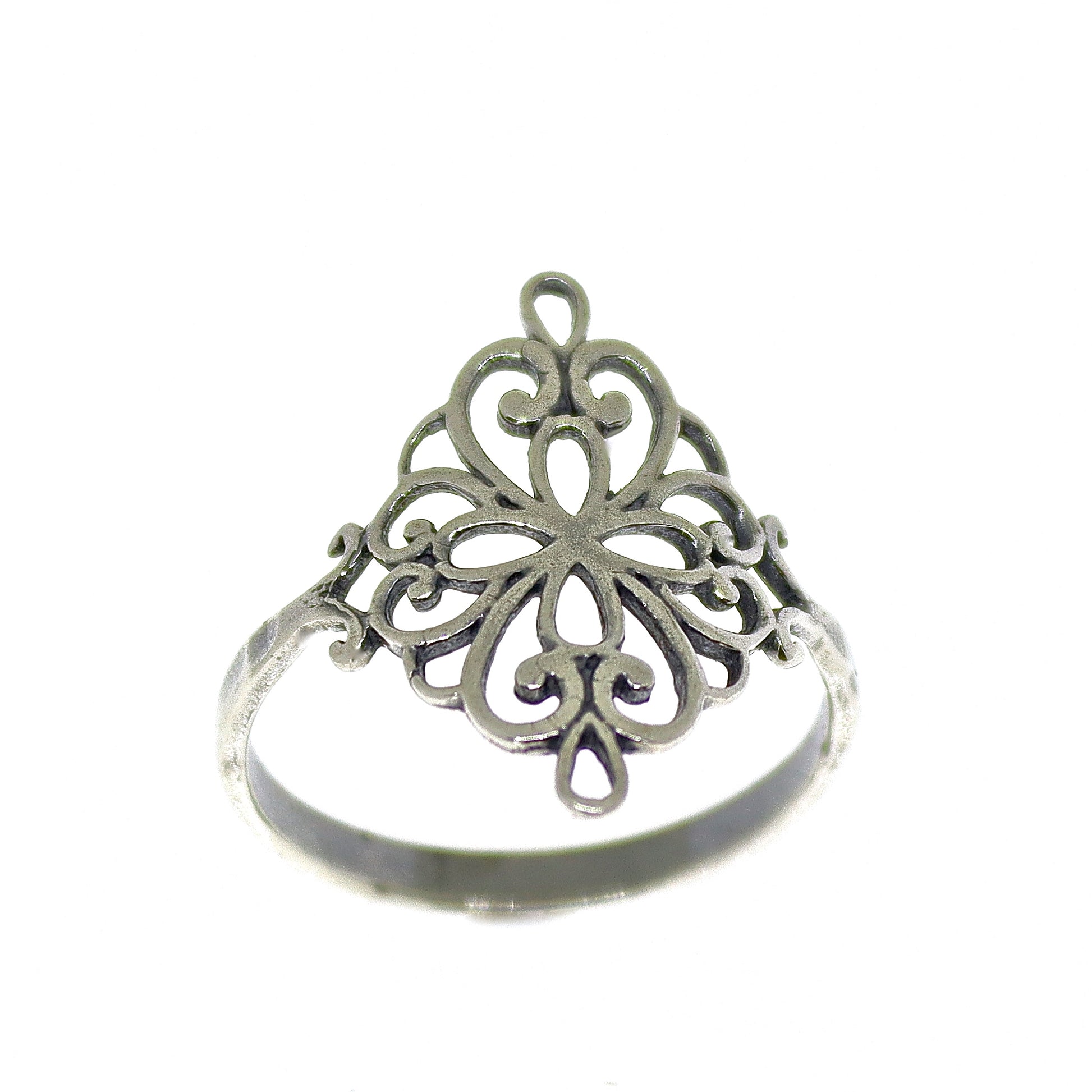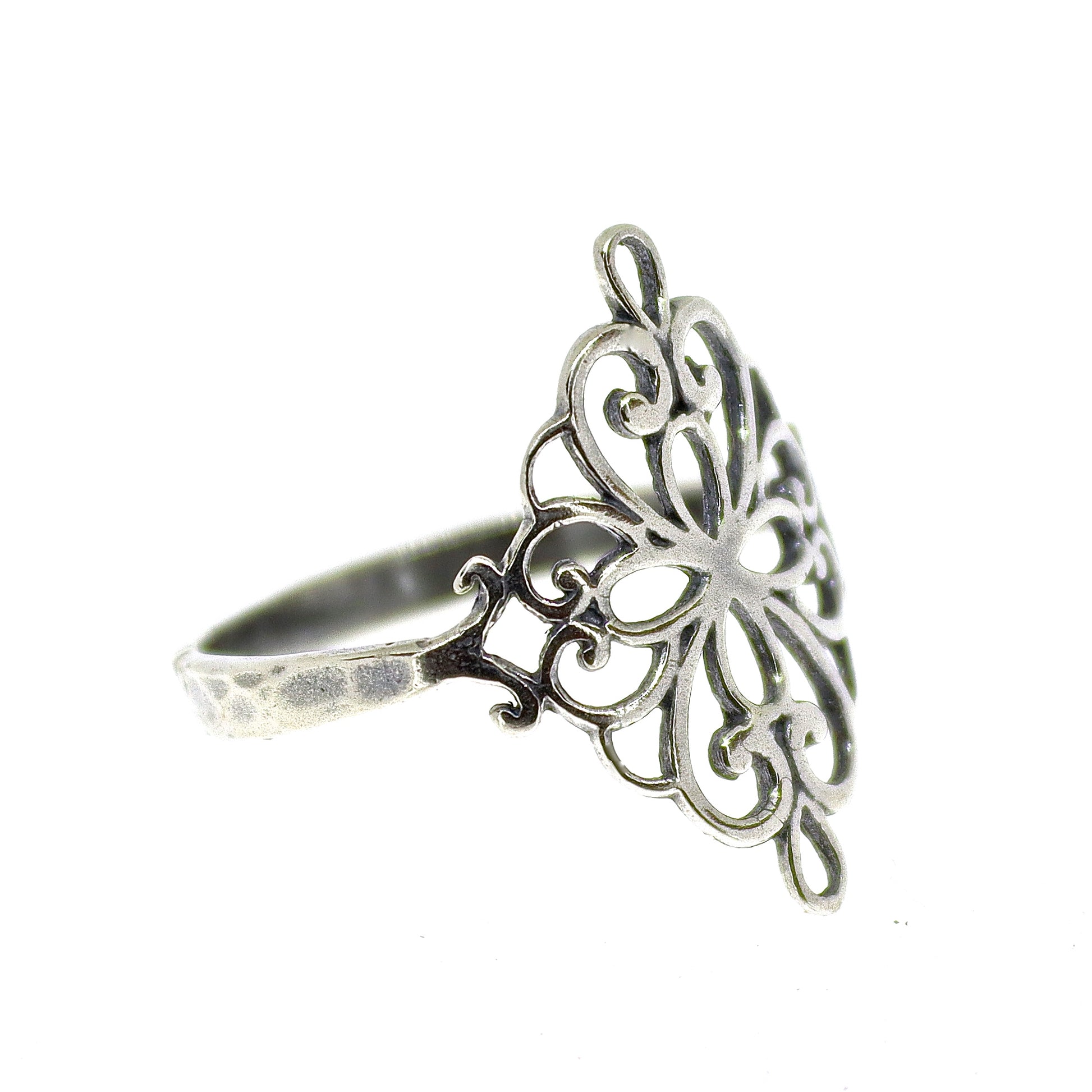 Sterling silver filigree dainty ring band, Oxidized silver long ring