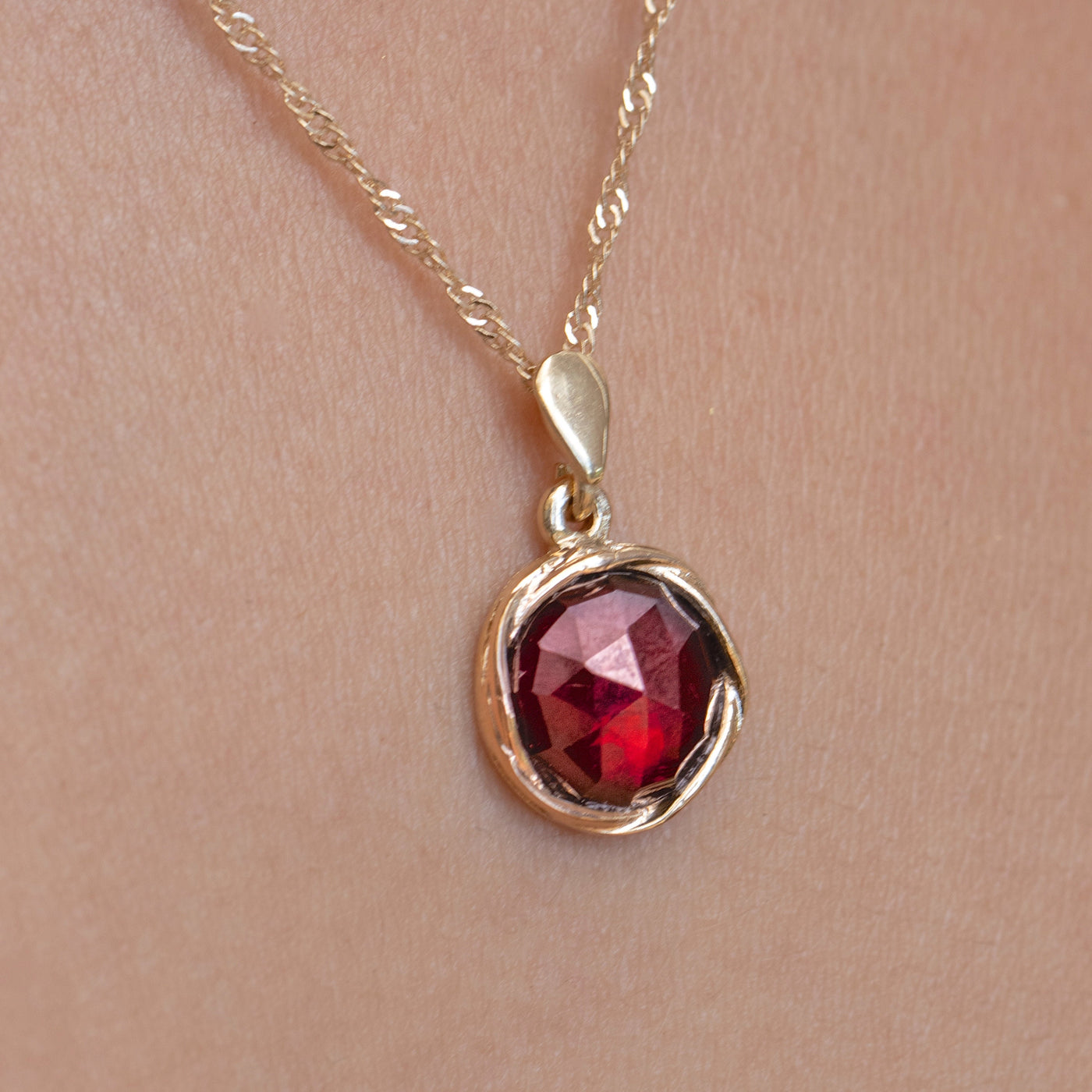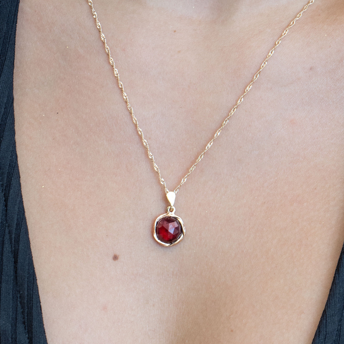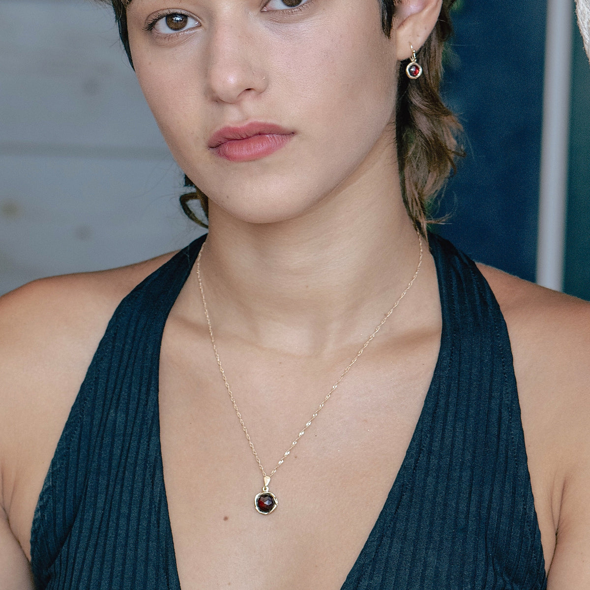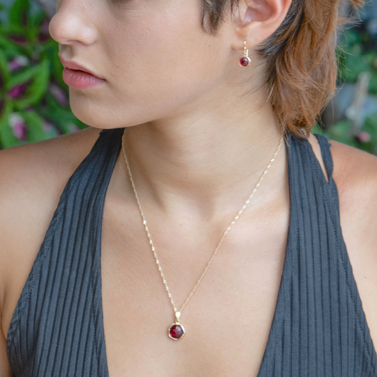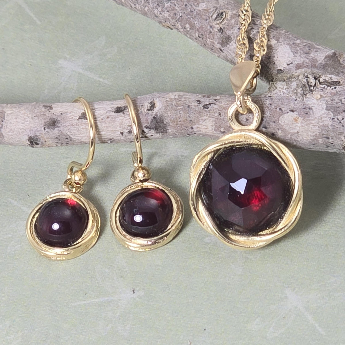 סט תכשיטי זהב גארנט, עגילים ושרשרת