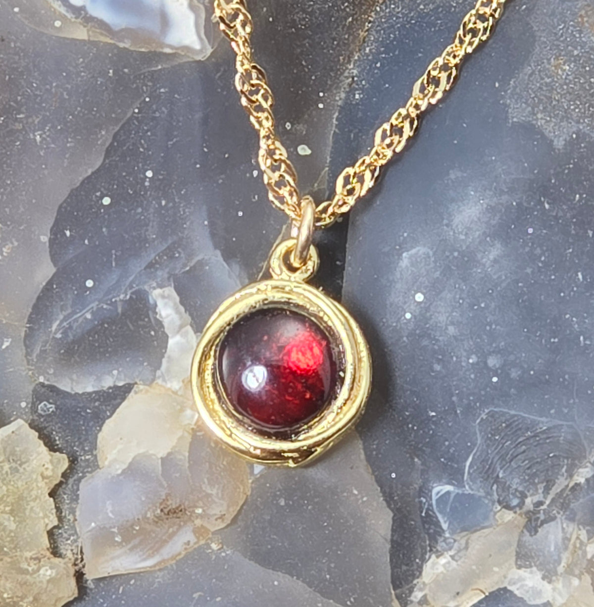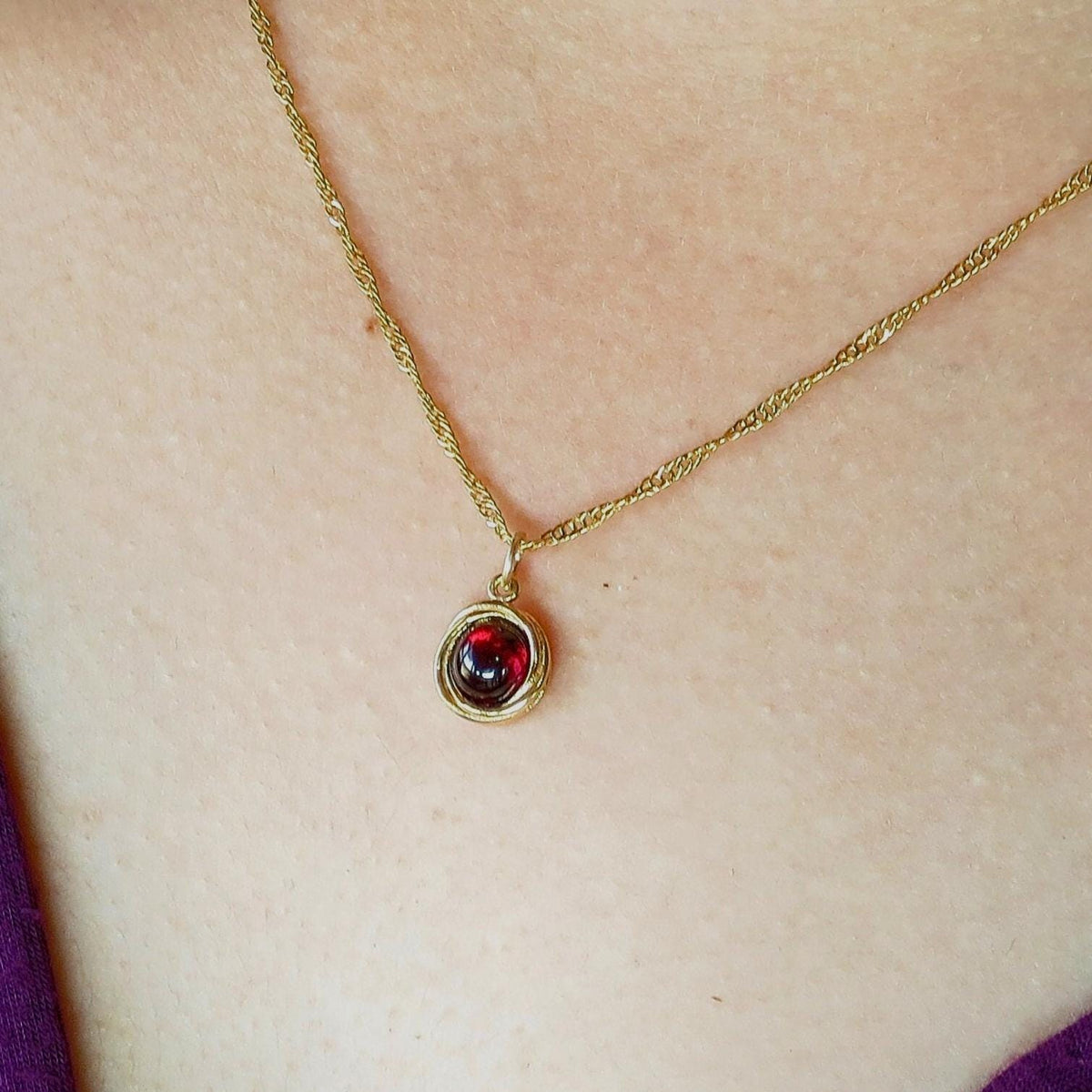שרשרת אבן גארנט קטנה מזהב 14 קראט