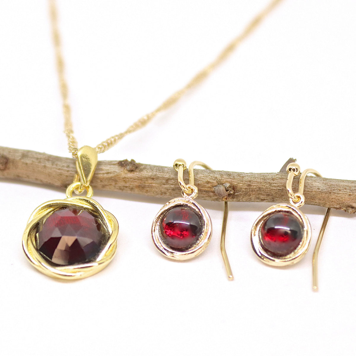 סט עגילי זהב ושרשרת אמטיסט