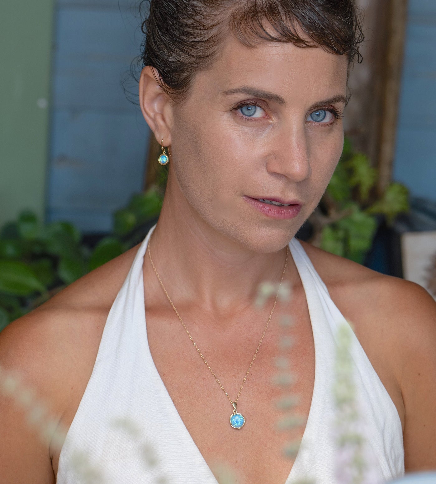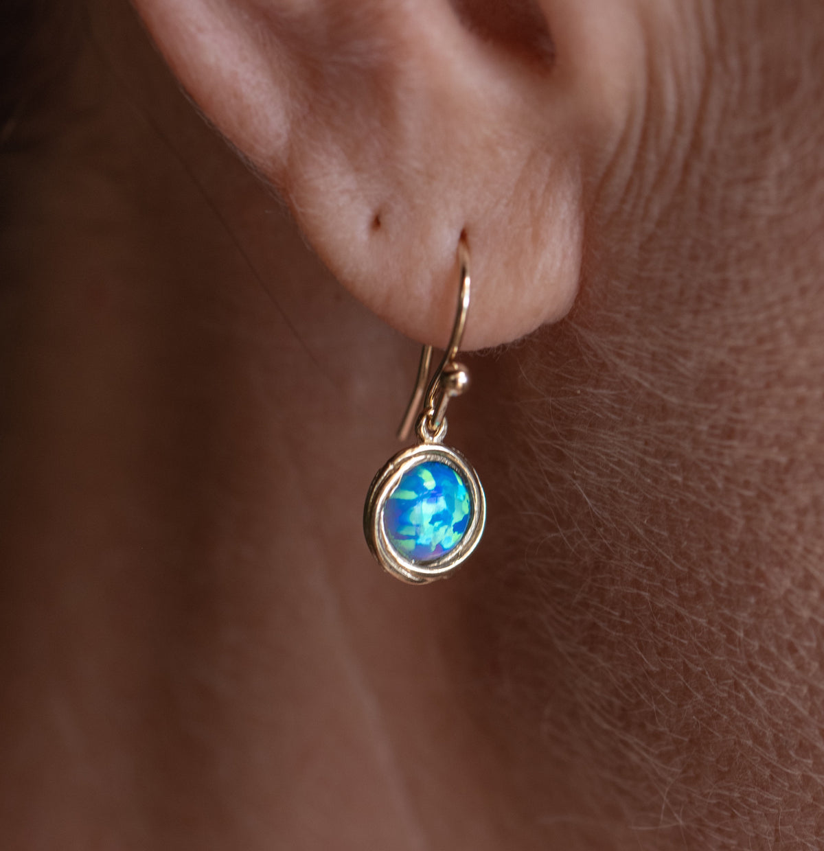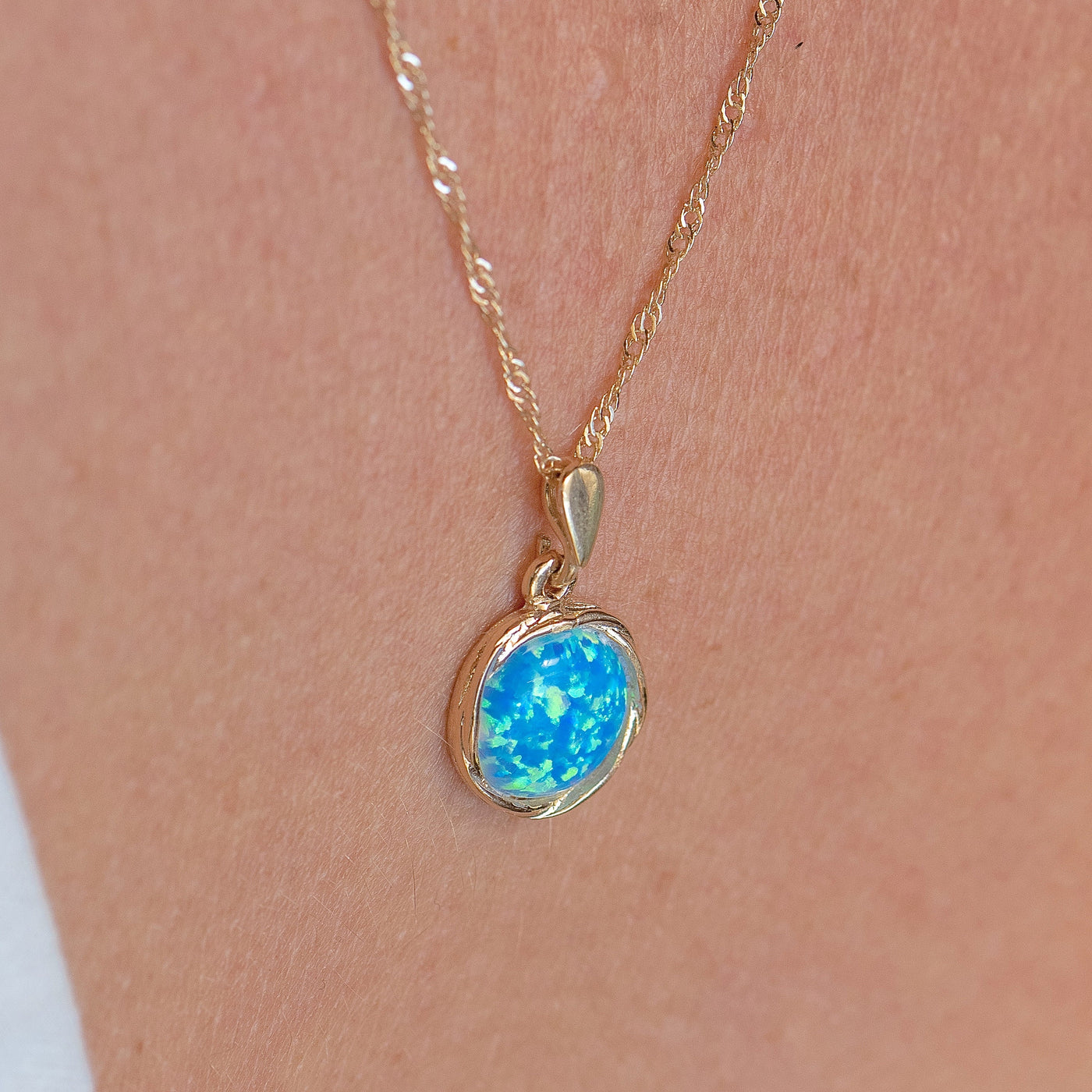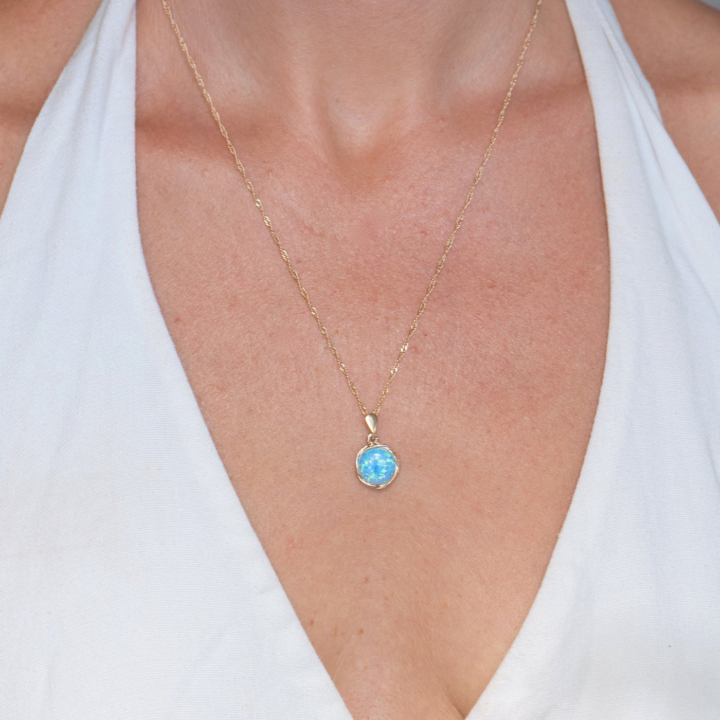סט תכשיטי אופל כחול, עגילים ושרשרת ציפוי זהב