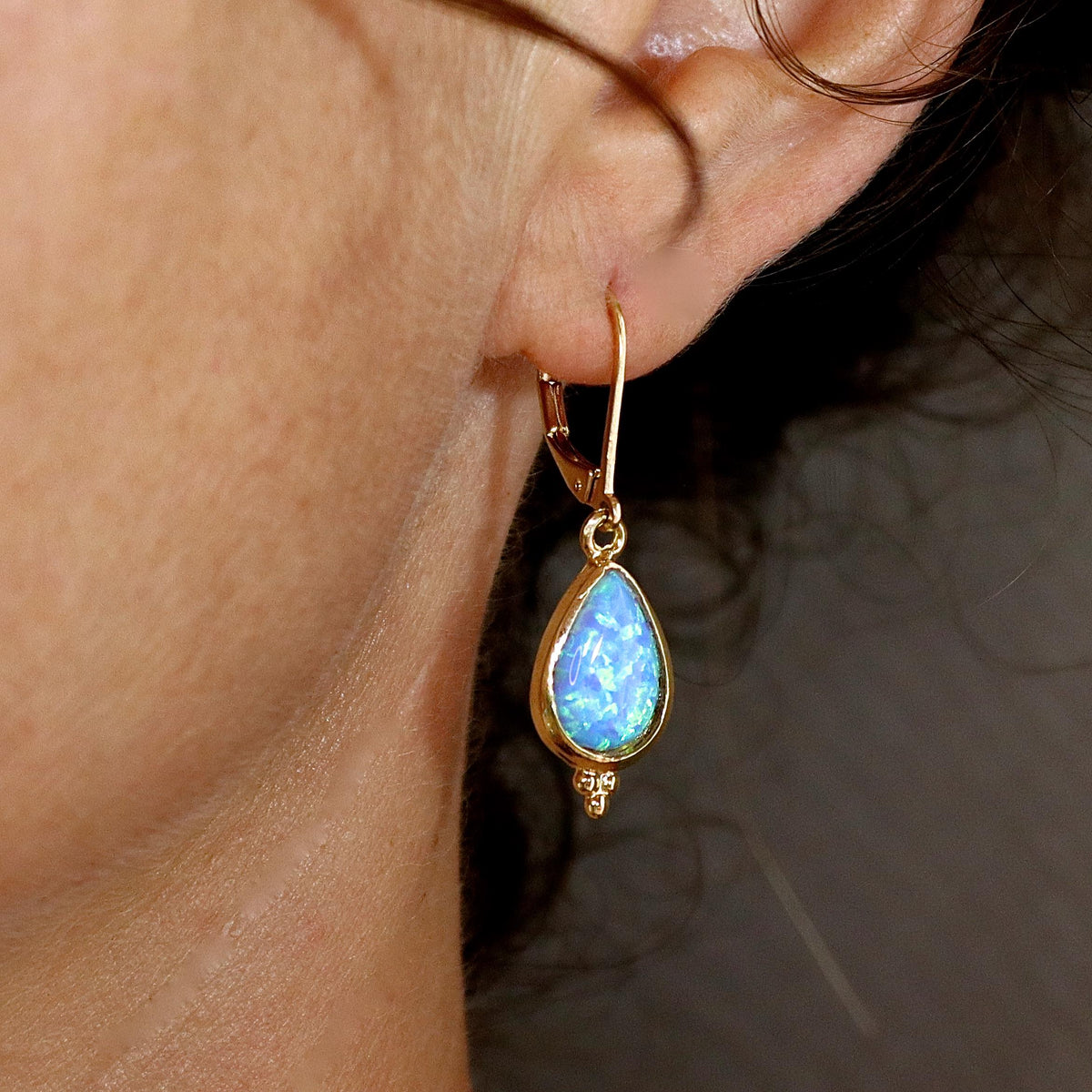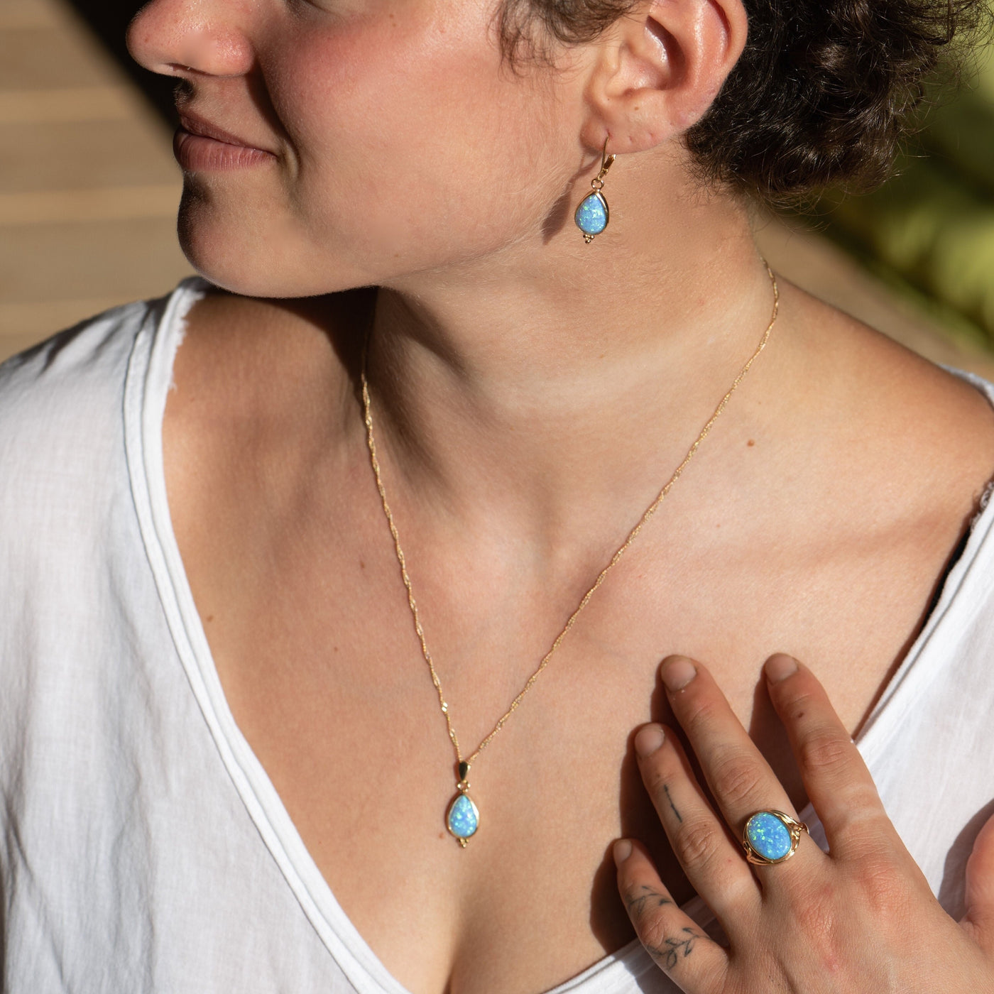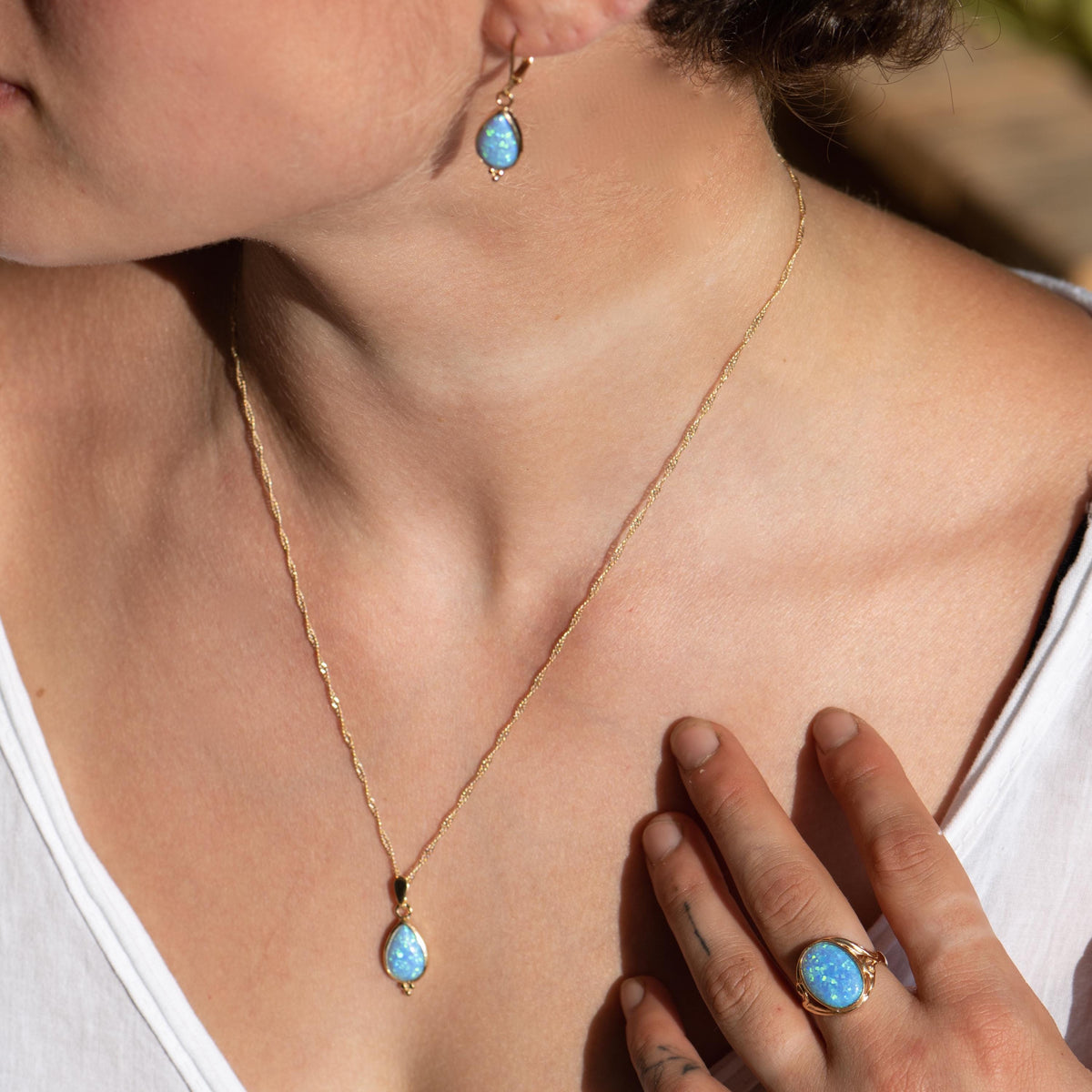 סט תכשיטים- אופל כחול שרשרת ועגילים מציפוי זהב