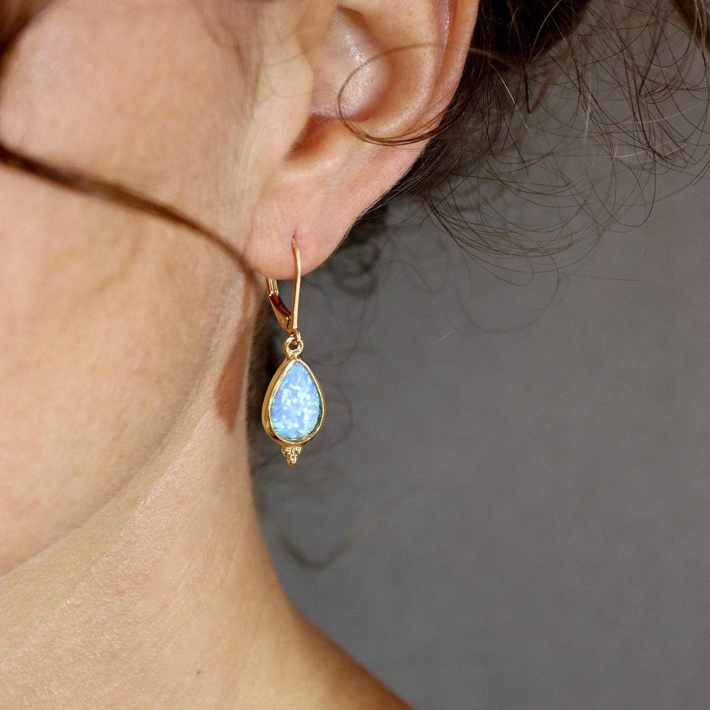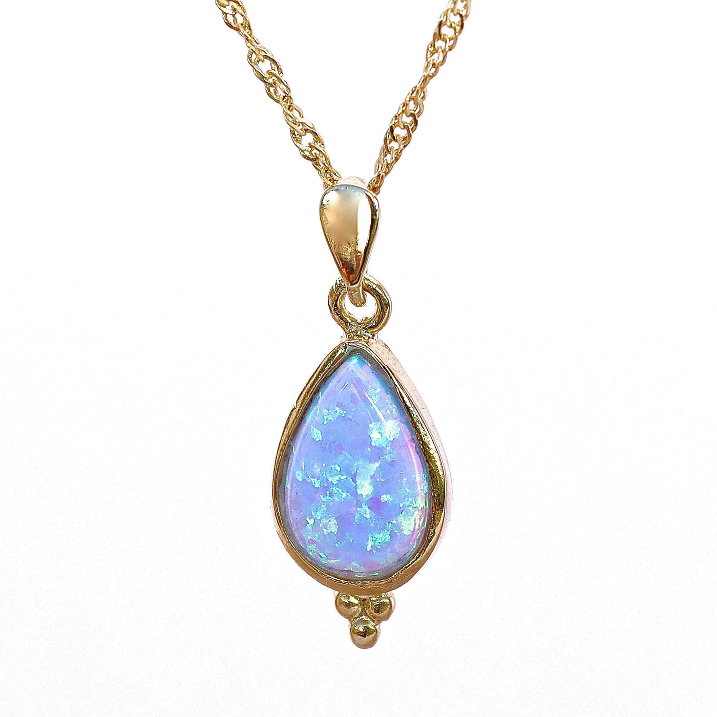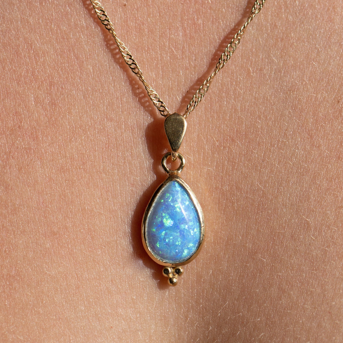 סט תכשיטים- אופל כחול שרשרת ועגילים מציפוי זהב