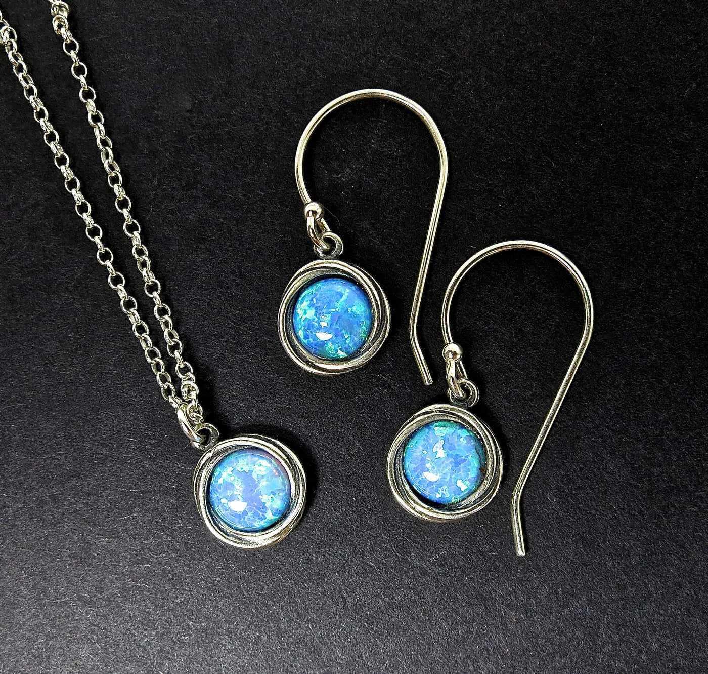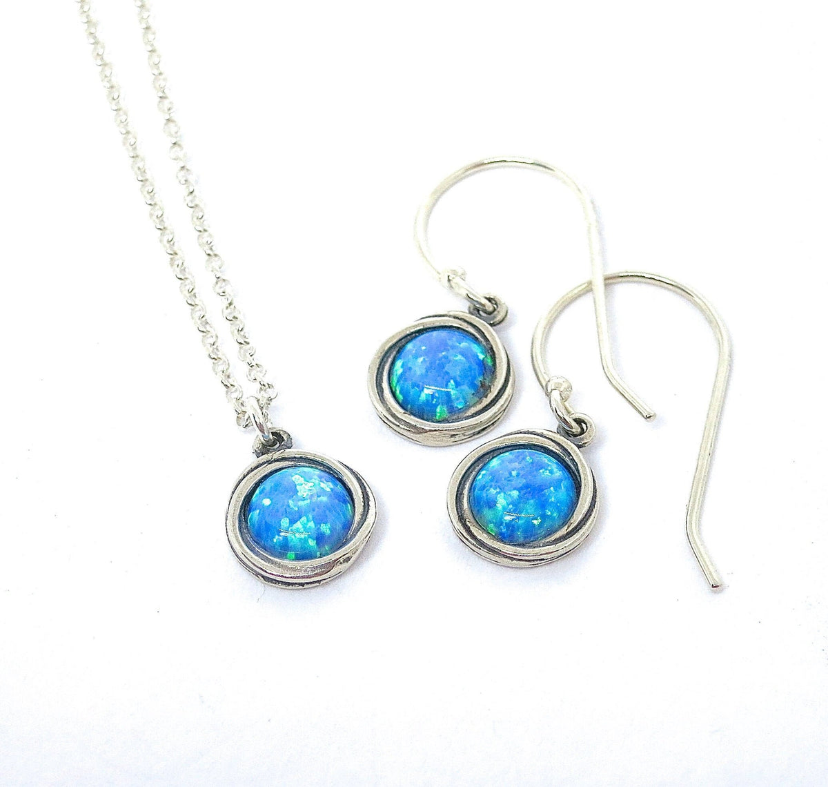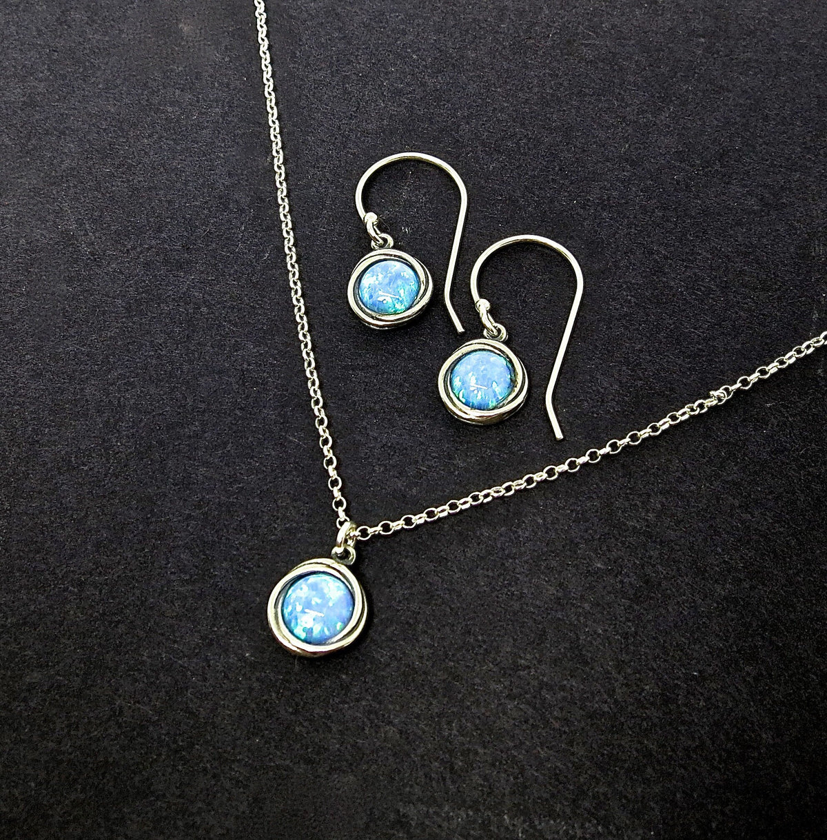 סט תכשיטים אופל כחול כסף 925 עגילים ושרשרת