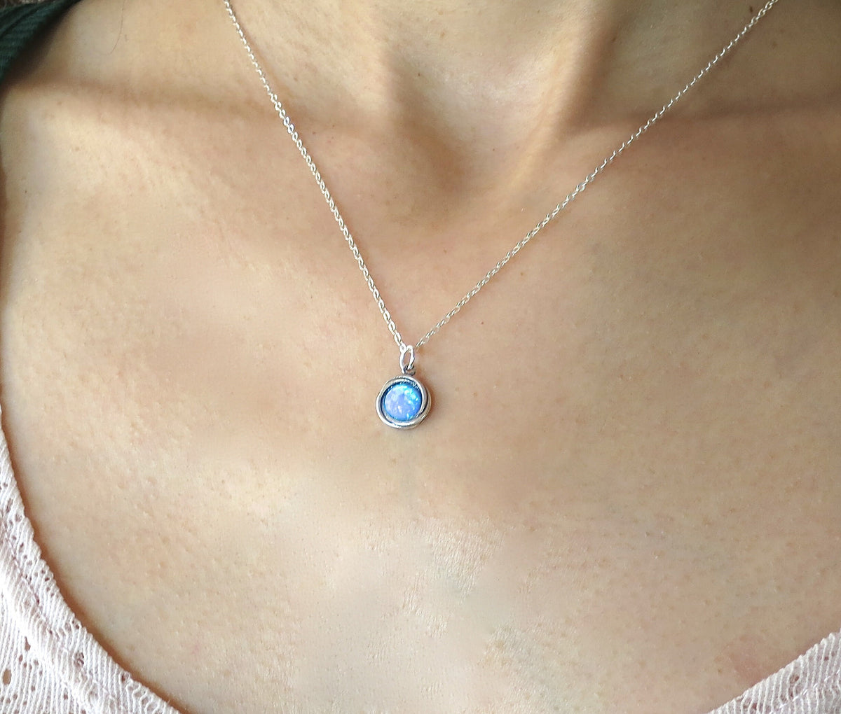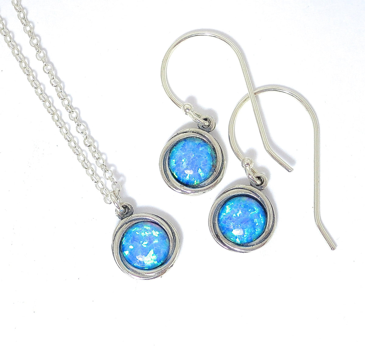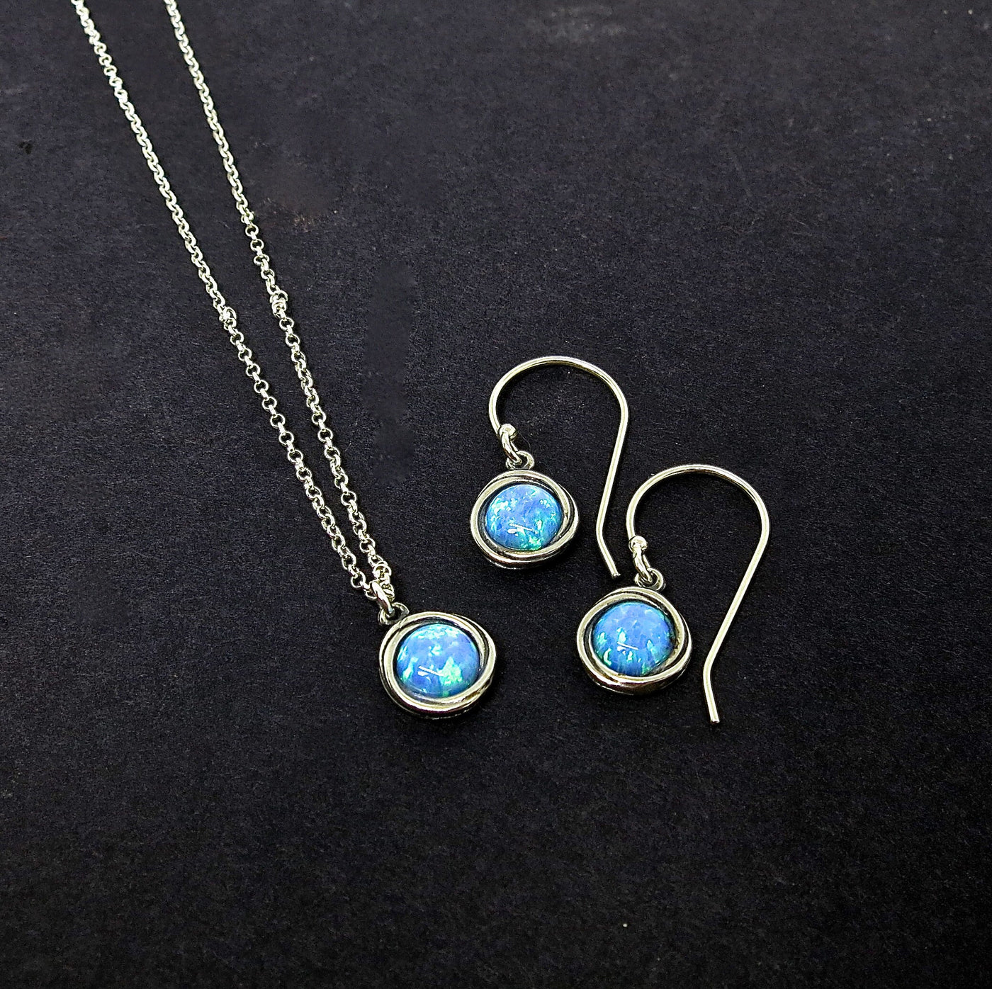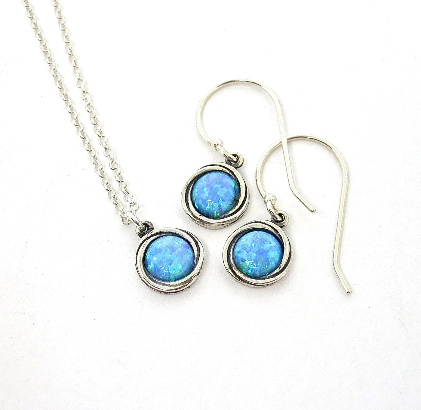 סט תכשיטים אופל כחול כסף 925 עגילים ושרשרת