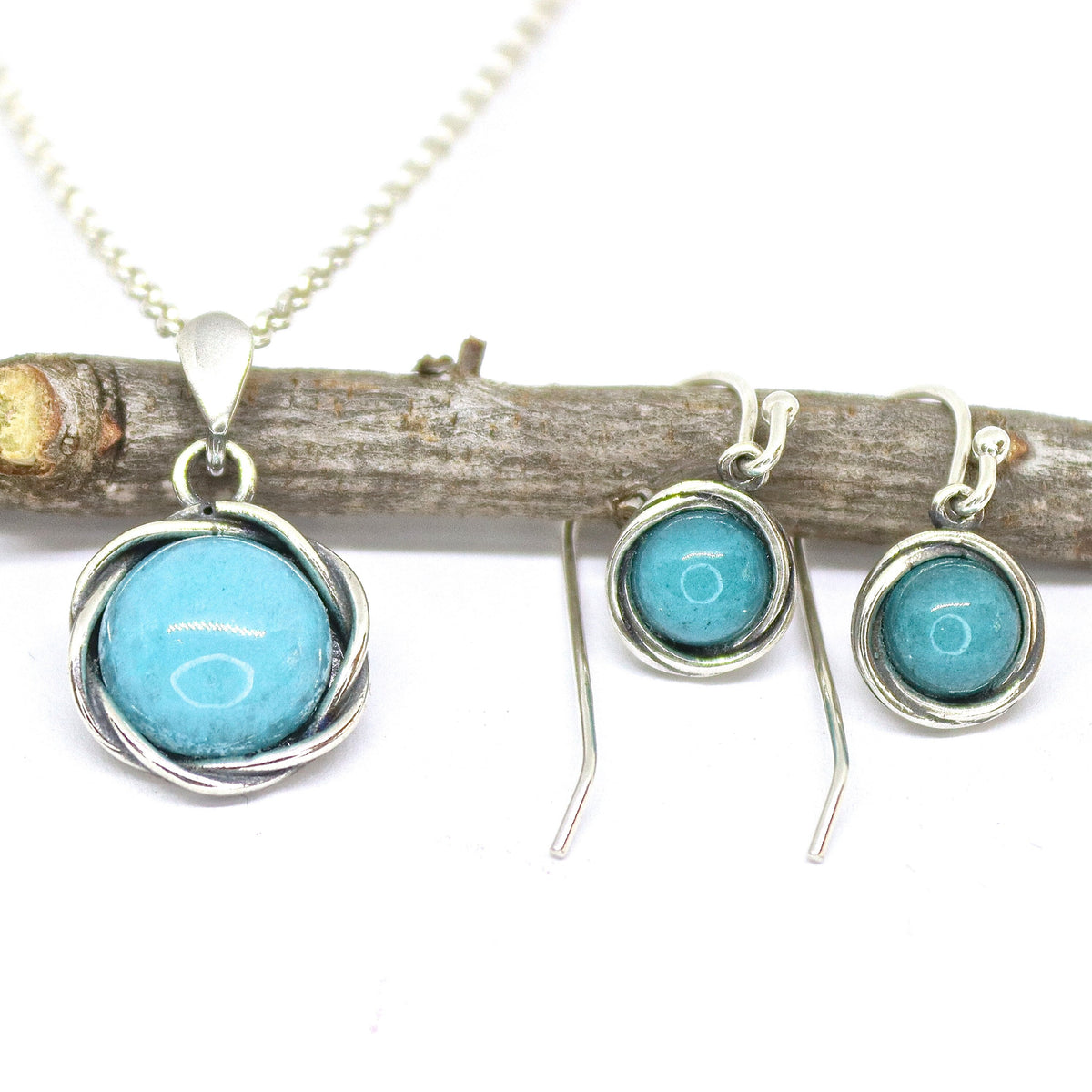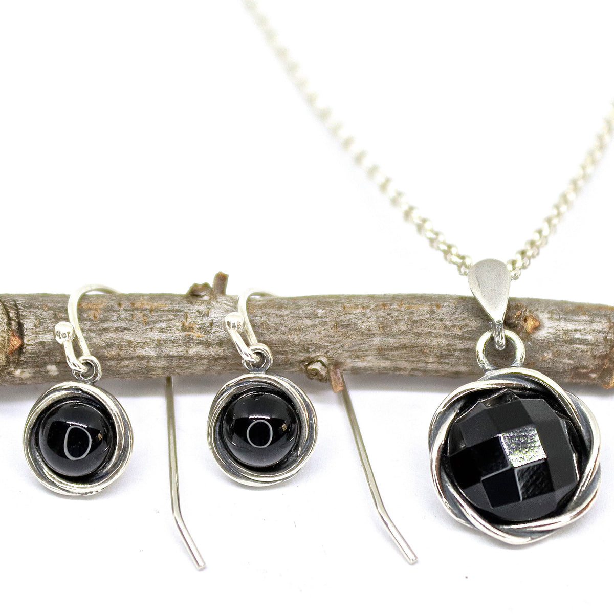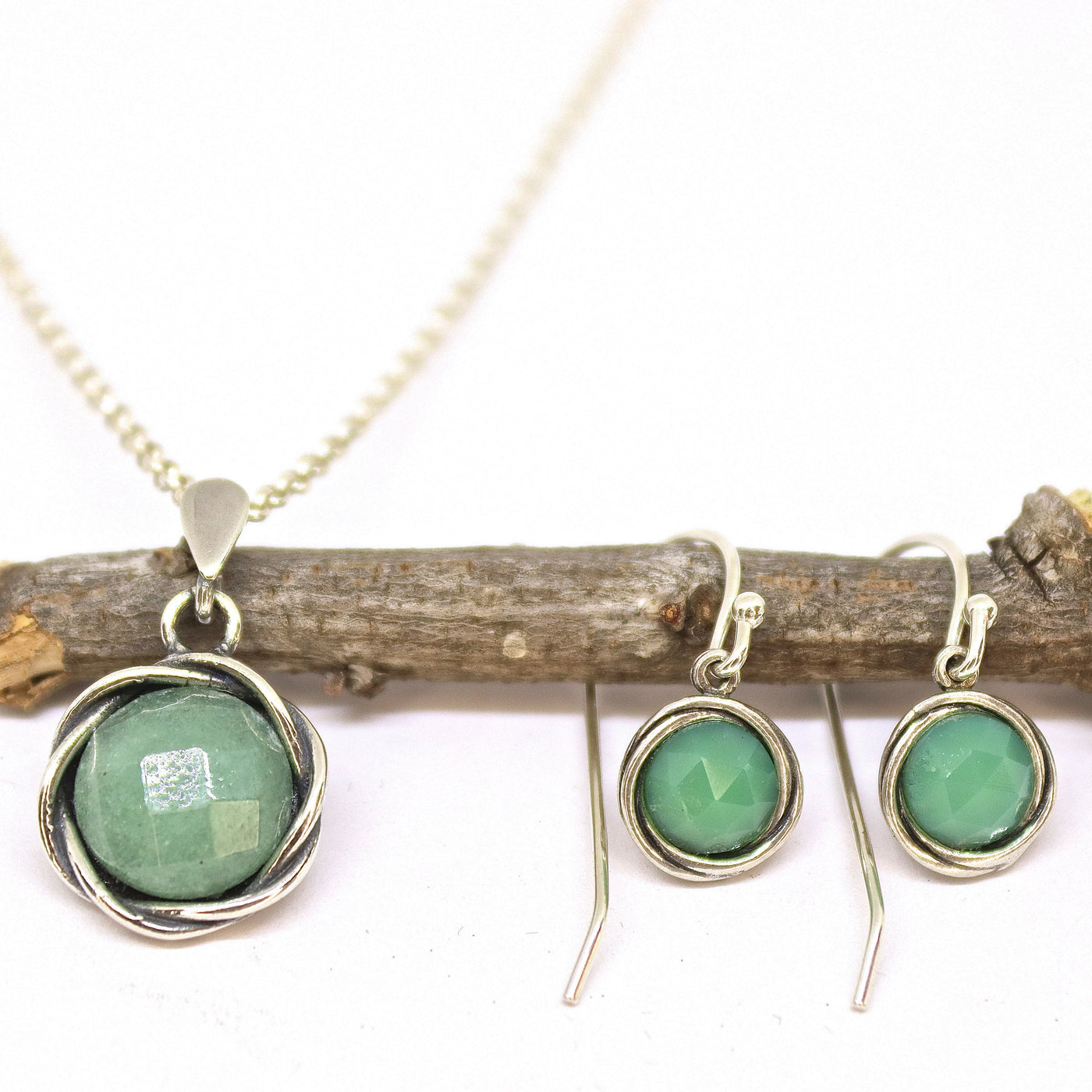 סט תכשיטי כסף : שרשרת ועגילים משובצים