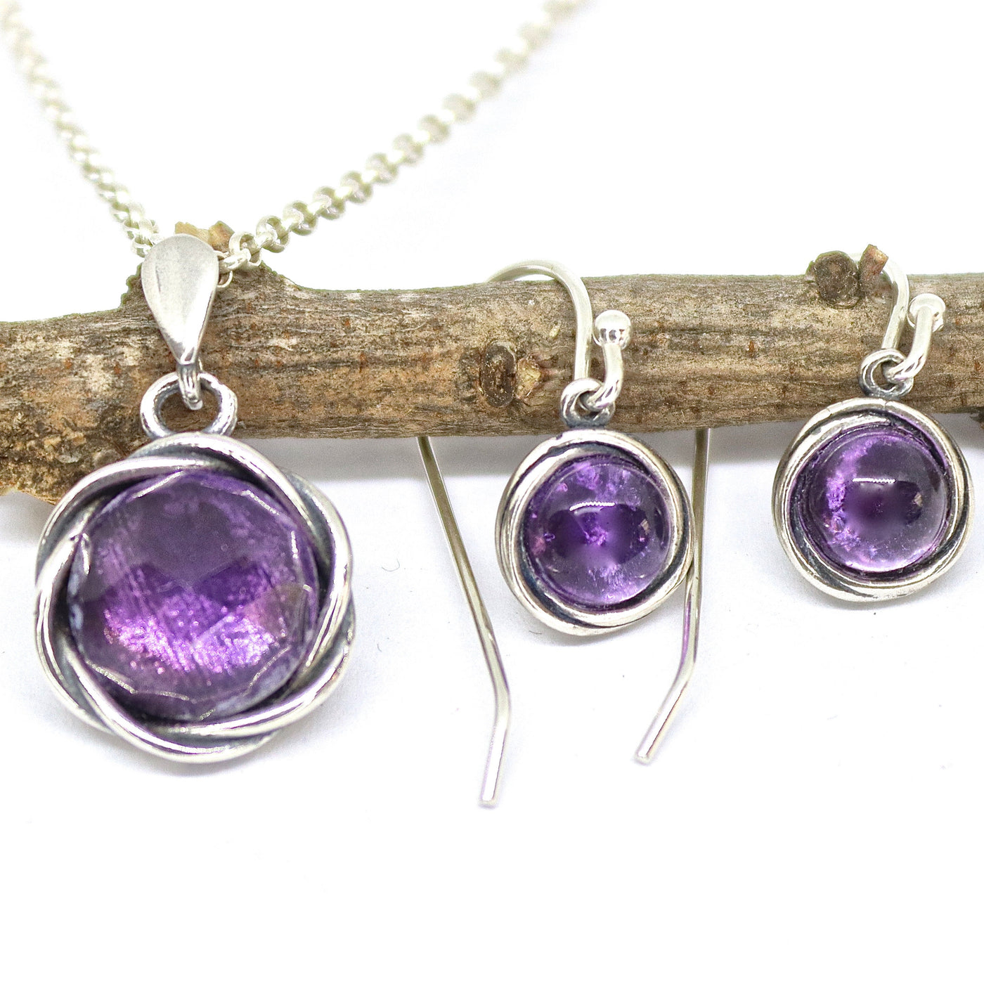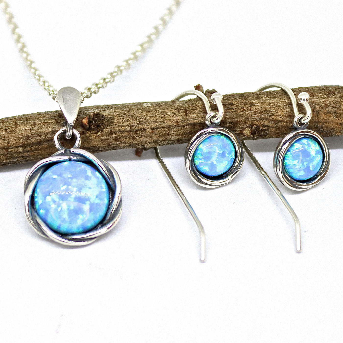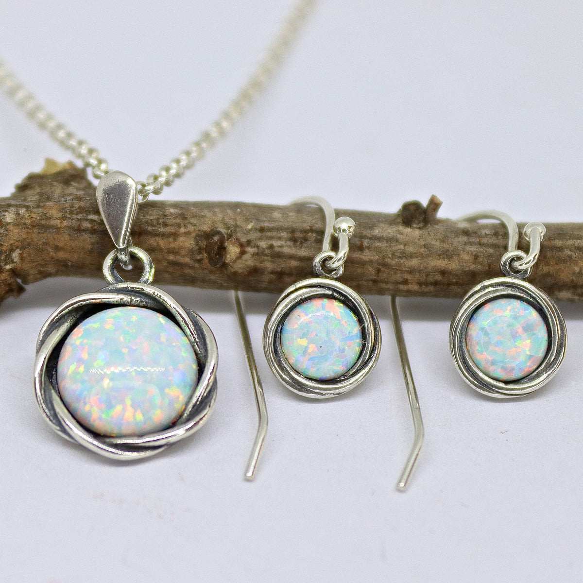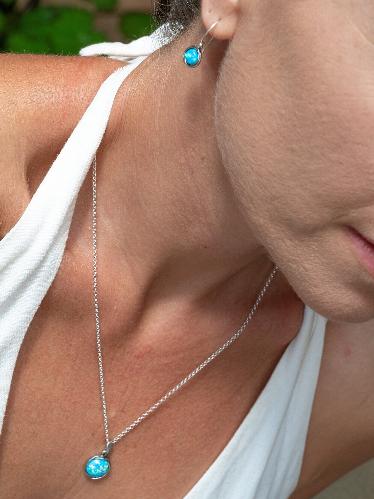 סט תכשיטי כסף : שרשרת ועגילים משובצים
