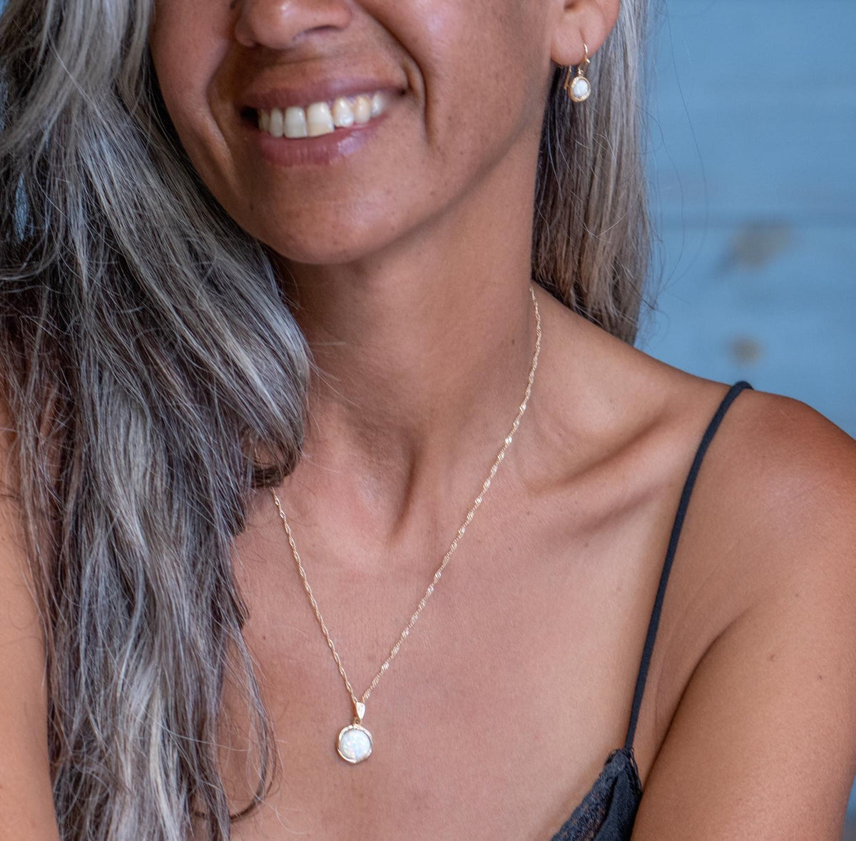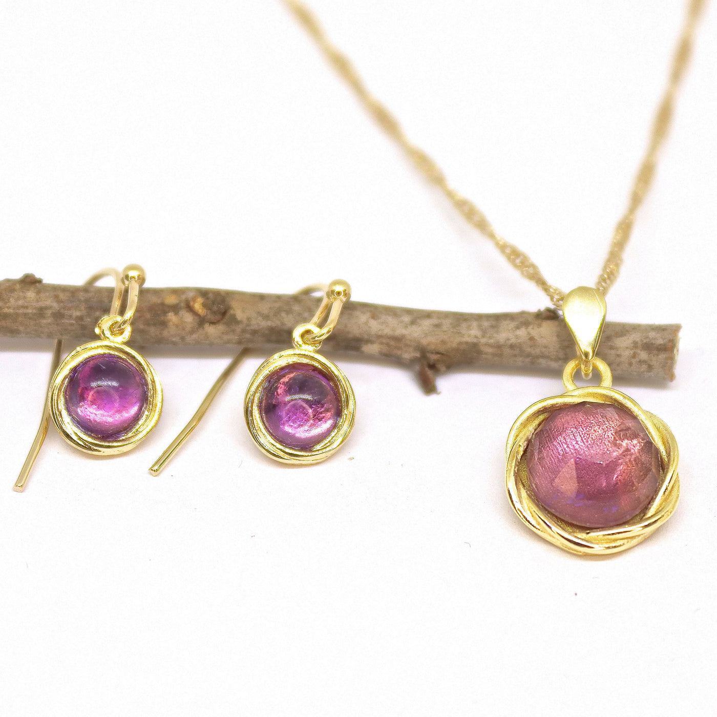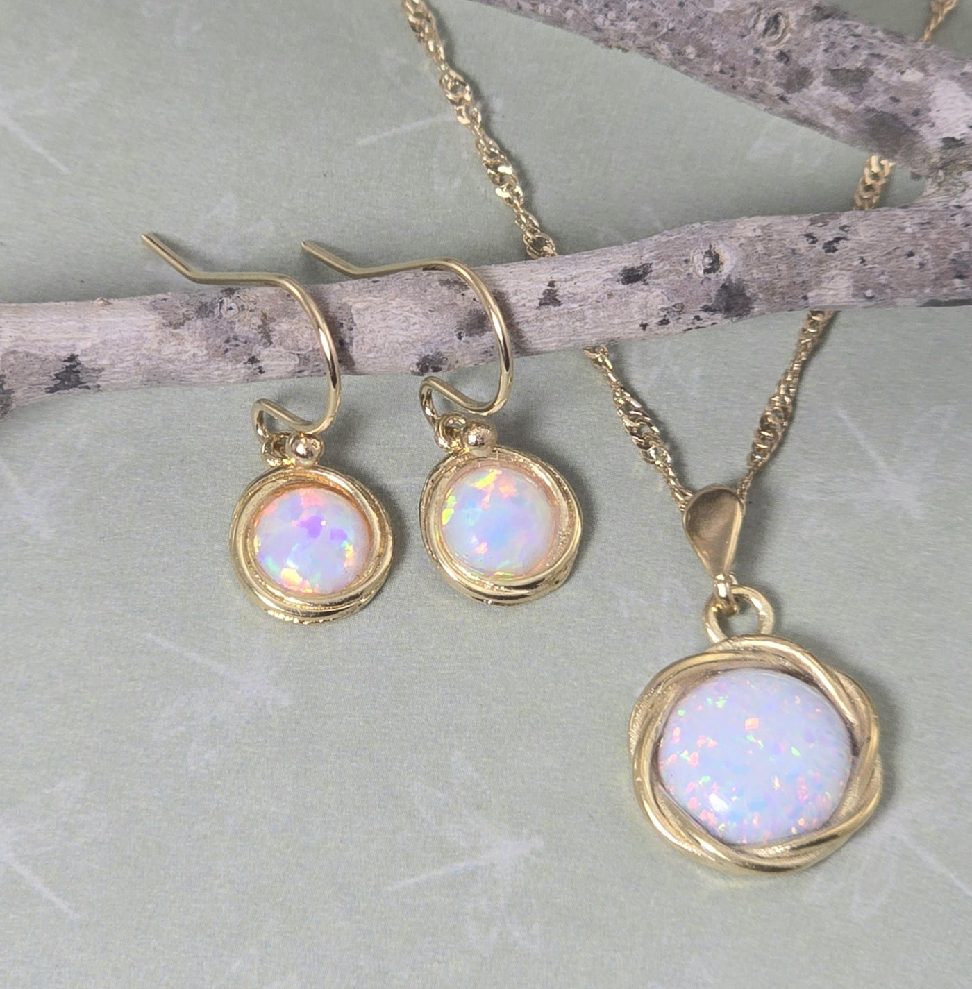 סט תכשיטים- עגילים ושרשרת ציפוי זהב בשיבוץ אופל לבן