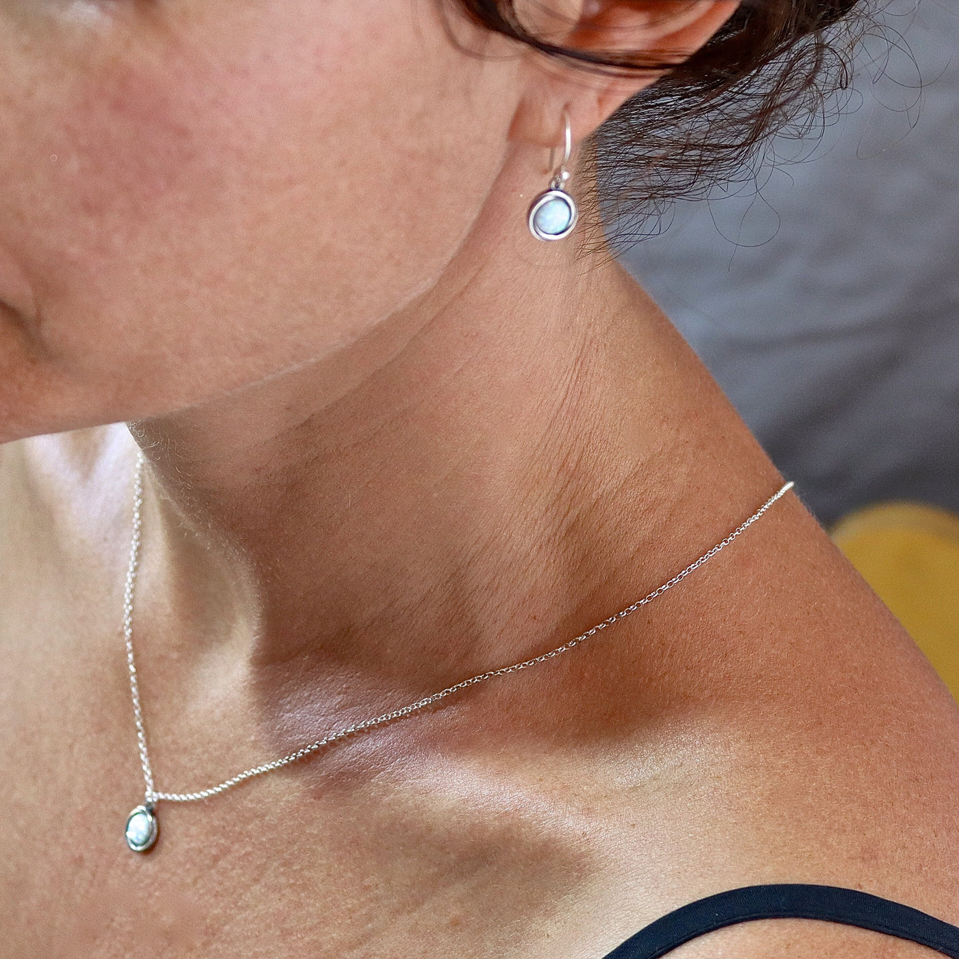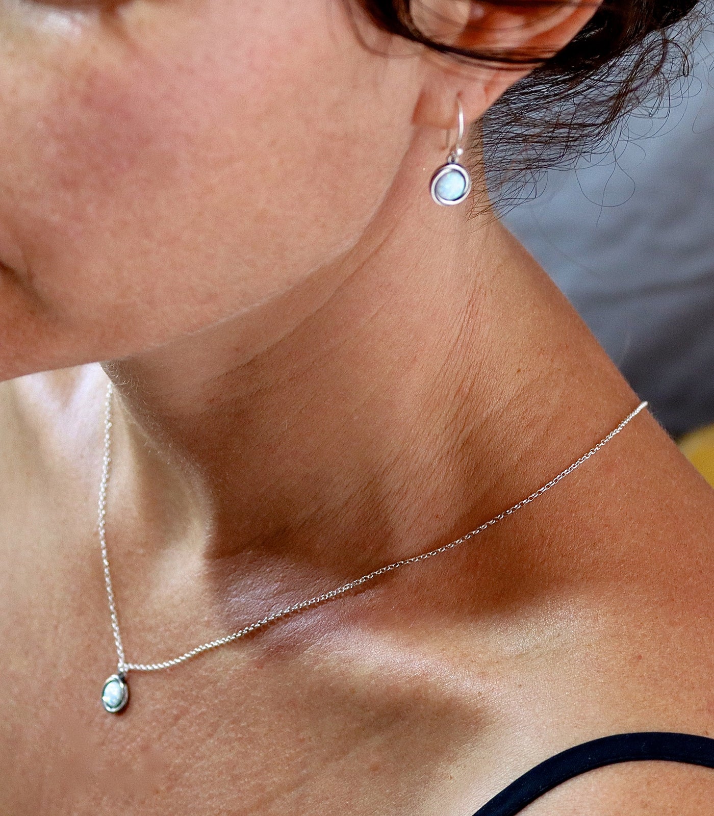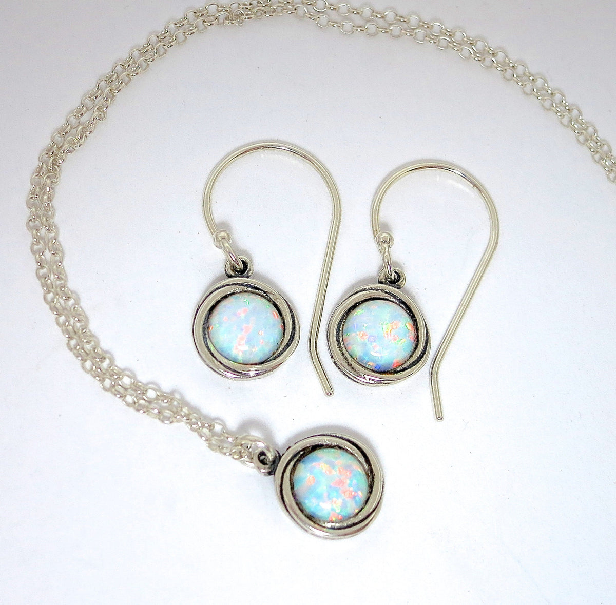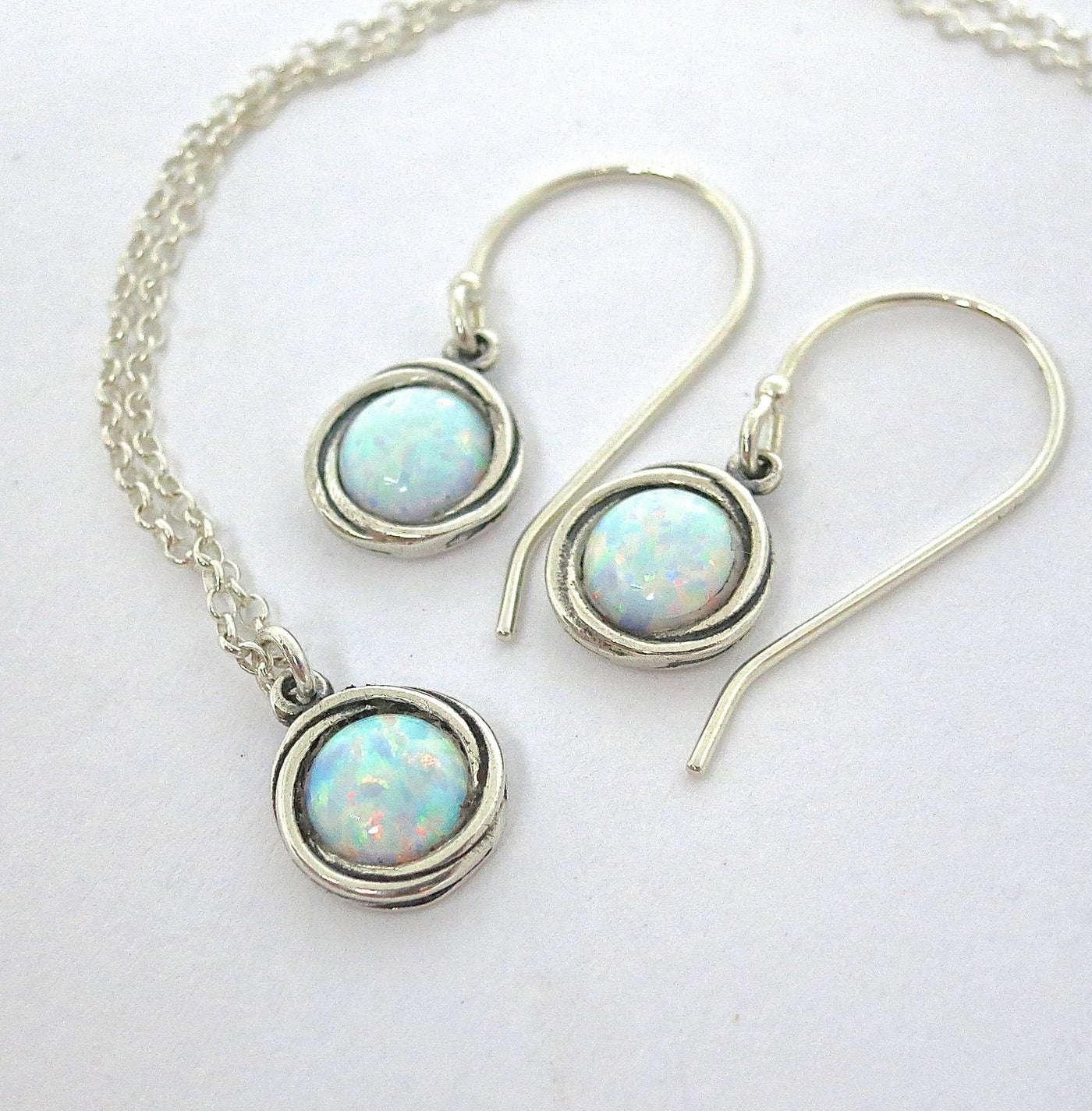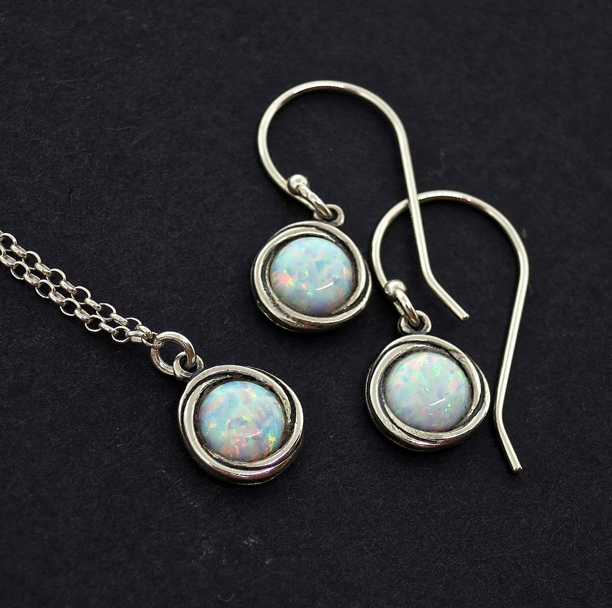 סט עגילים ושרשרת אופל קטנים ועדינים.