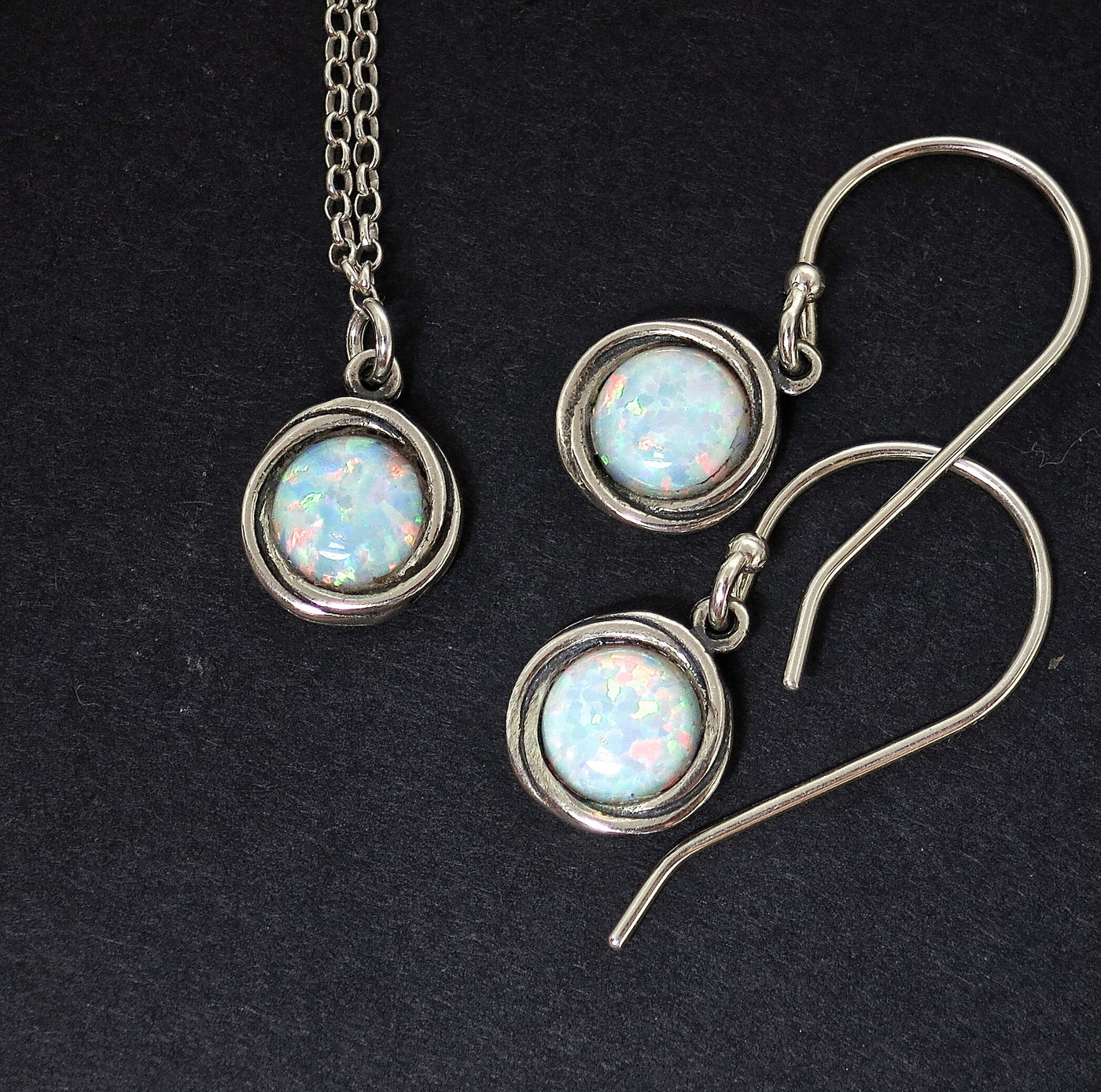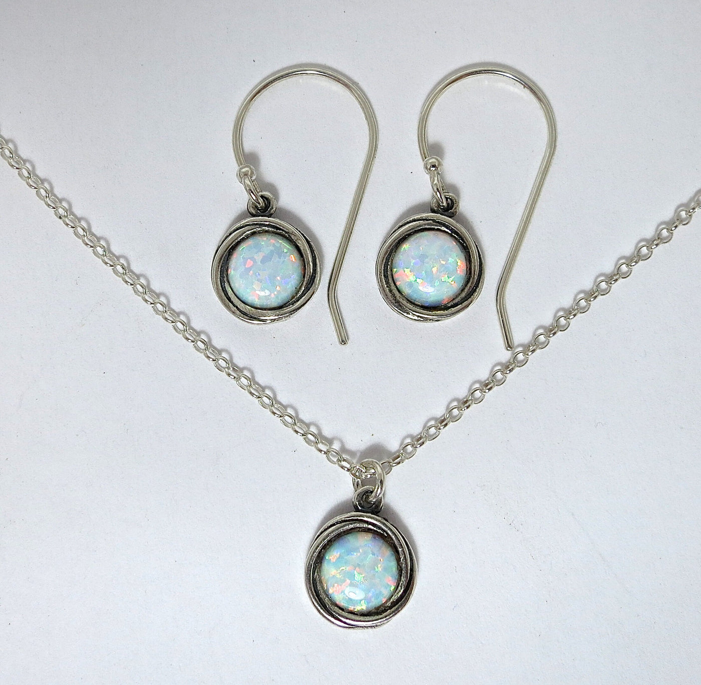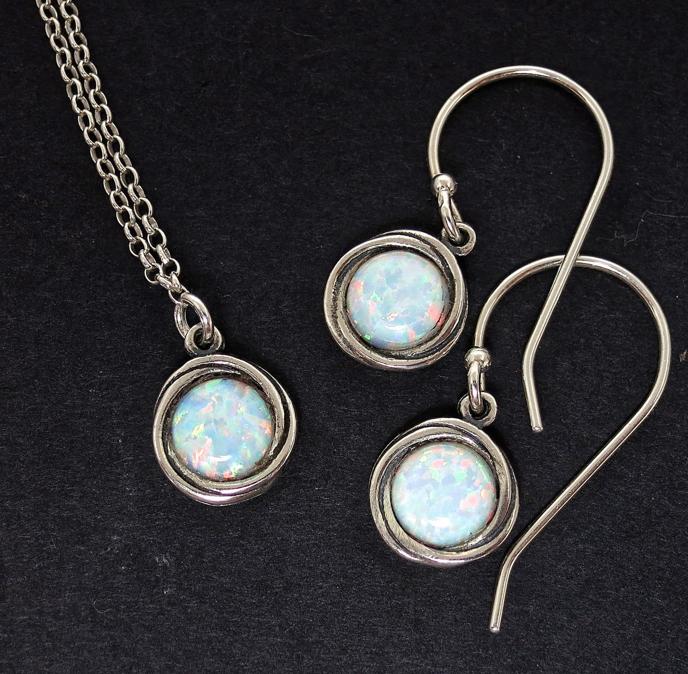 סט תכשיטי אופל- עגילים ושרשרת כסף 925