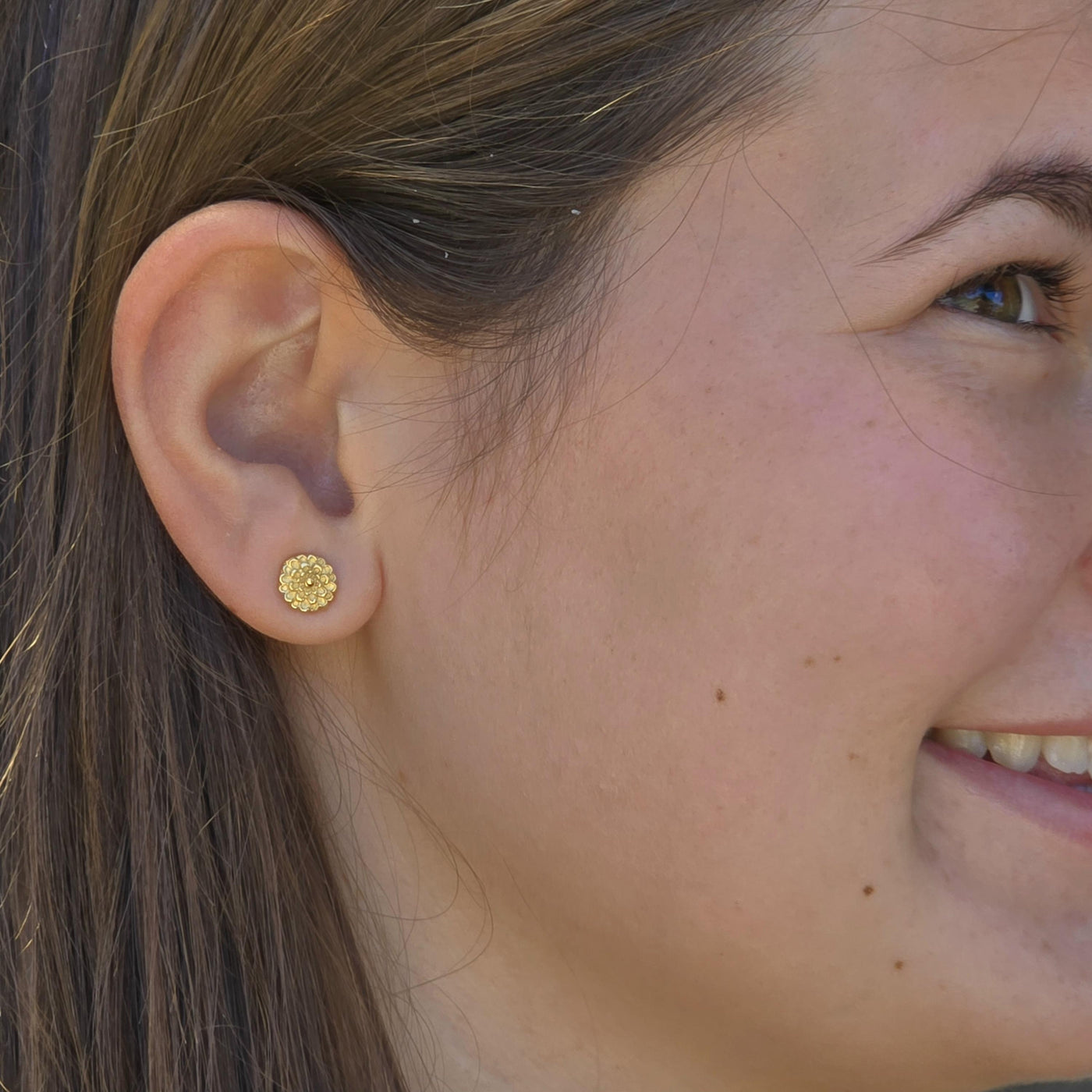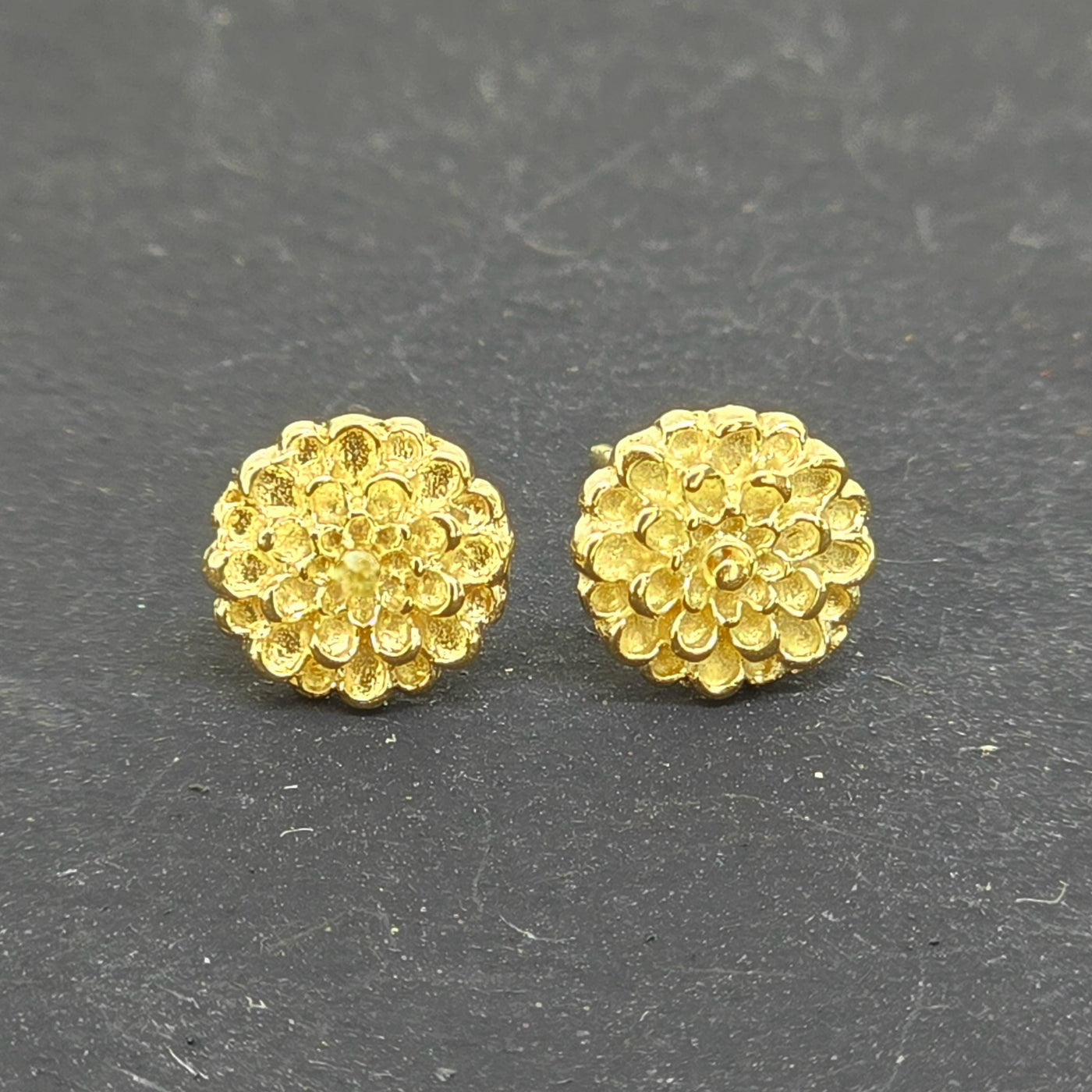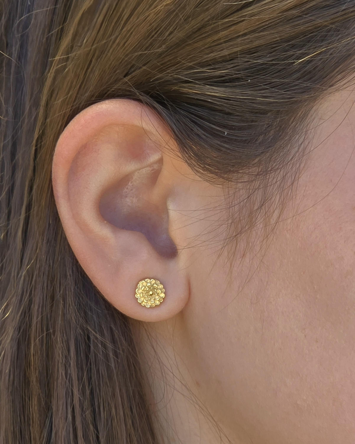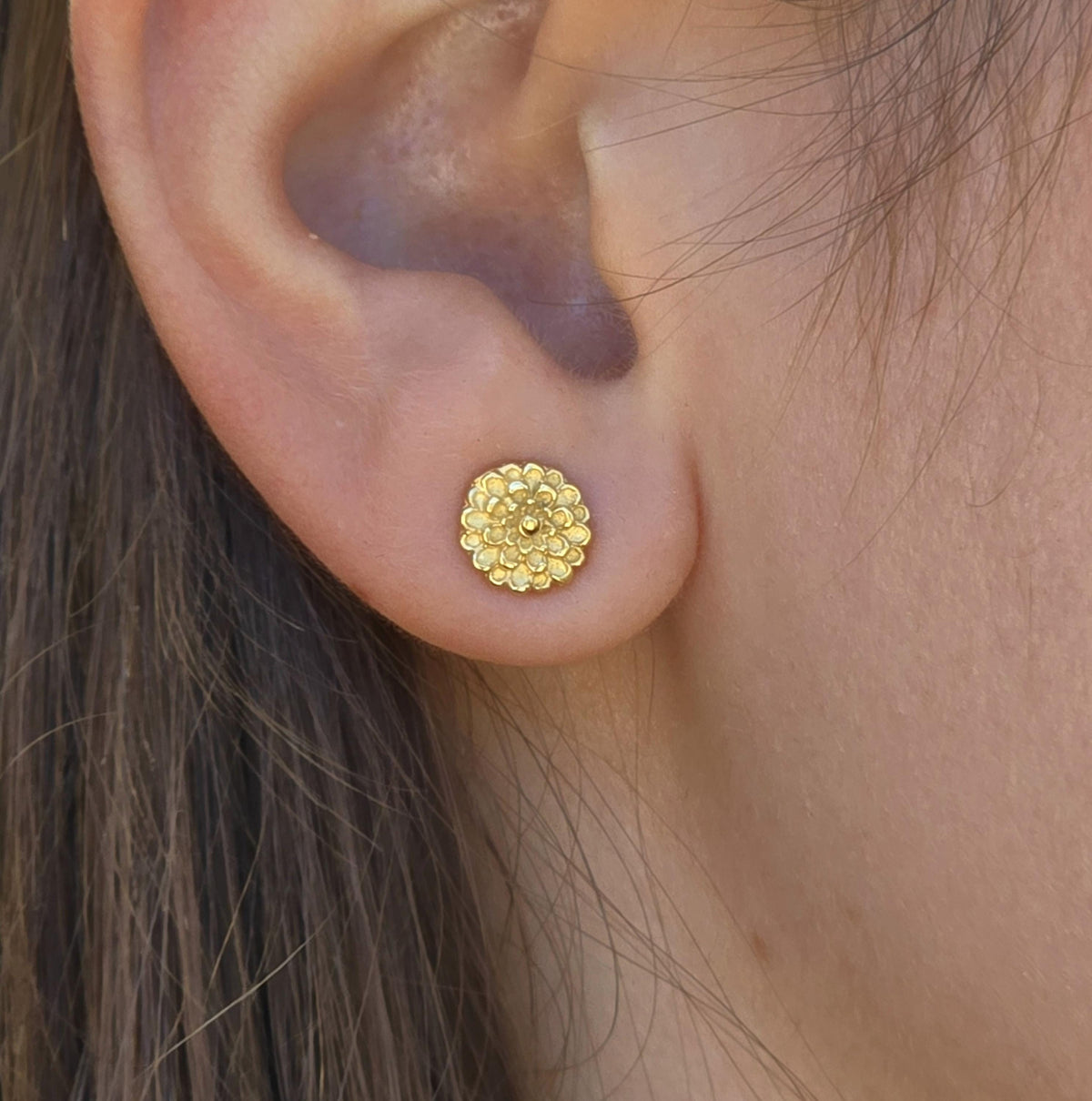 עגילי פרח דליה צמודים מזהב 14 קראט