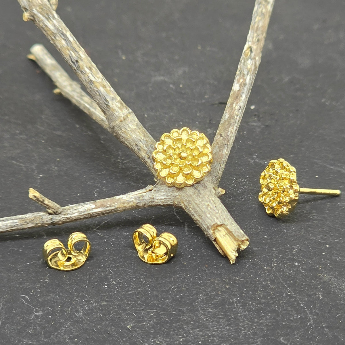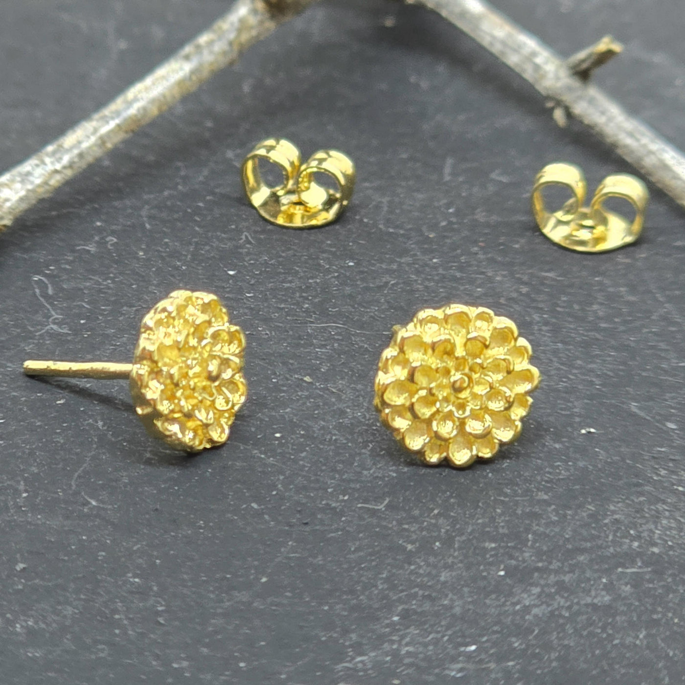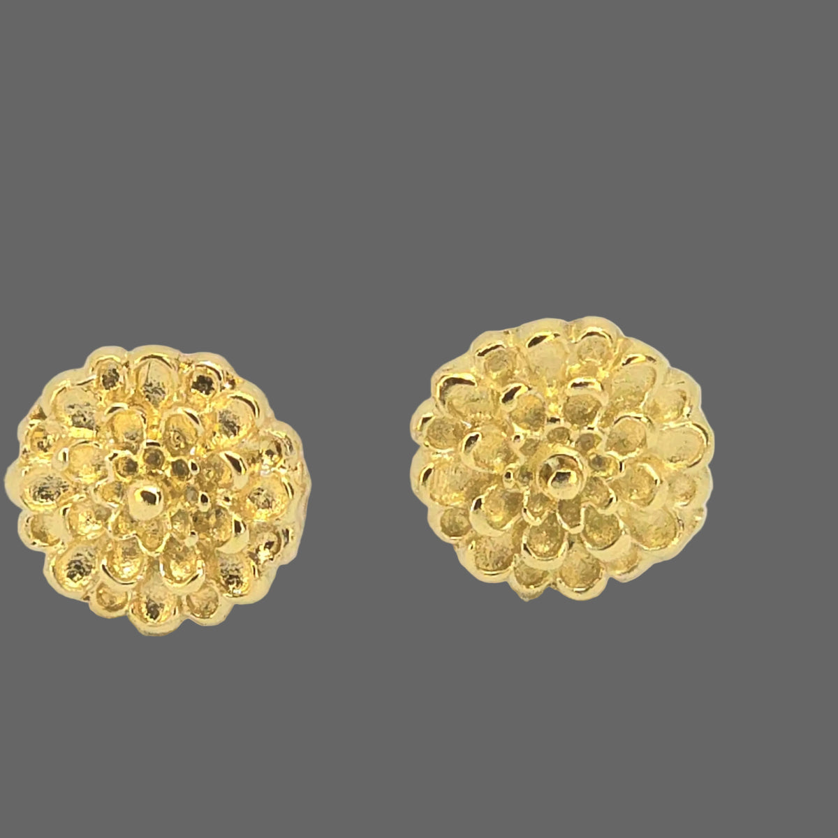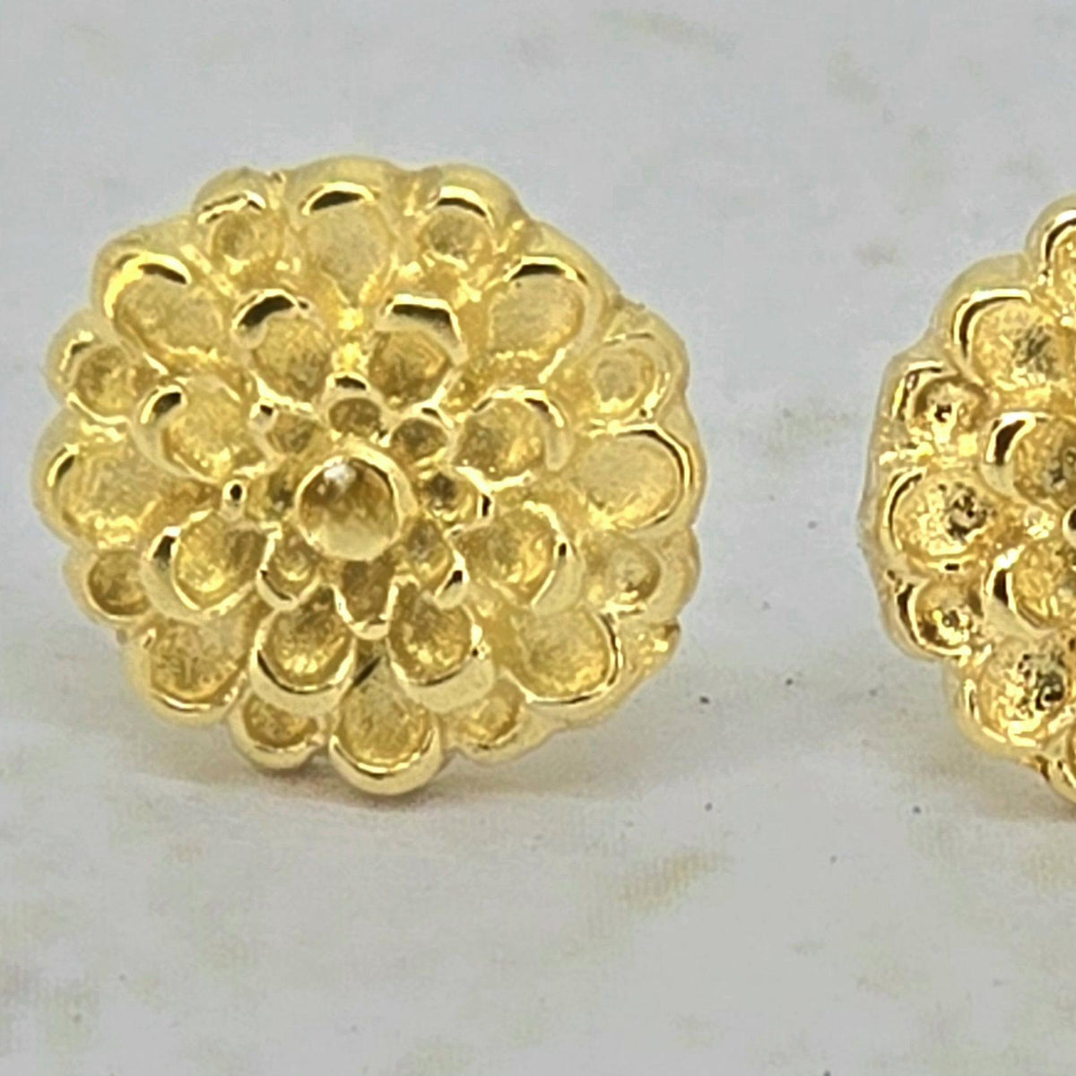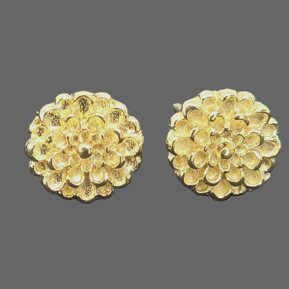 עגילי פרח דליה צמודים מזהב 14 קראט