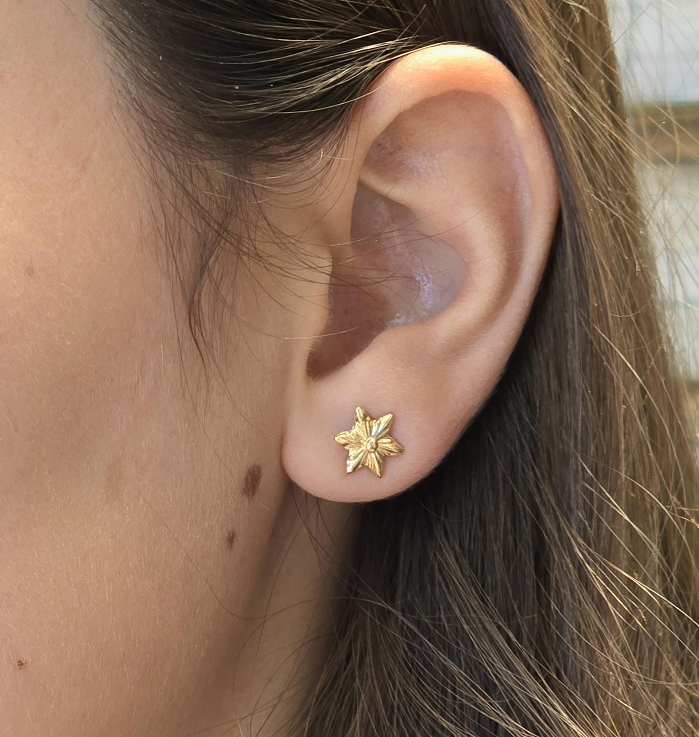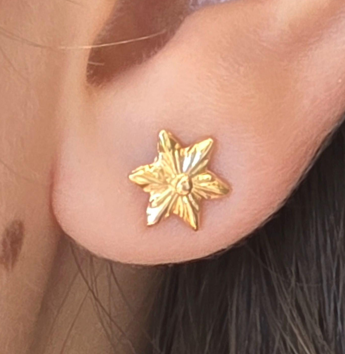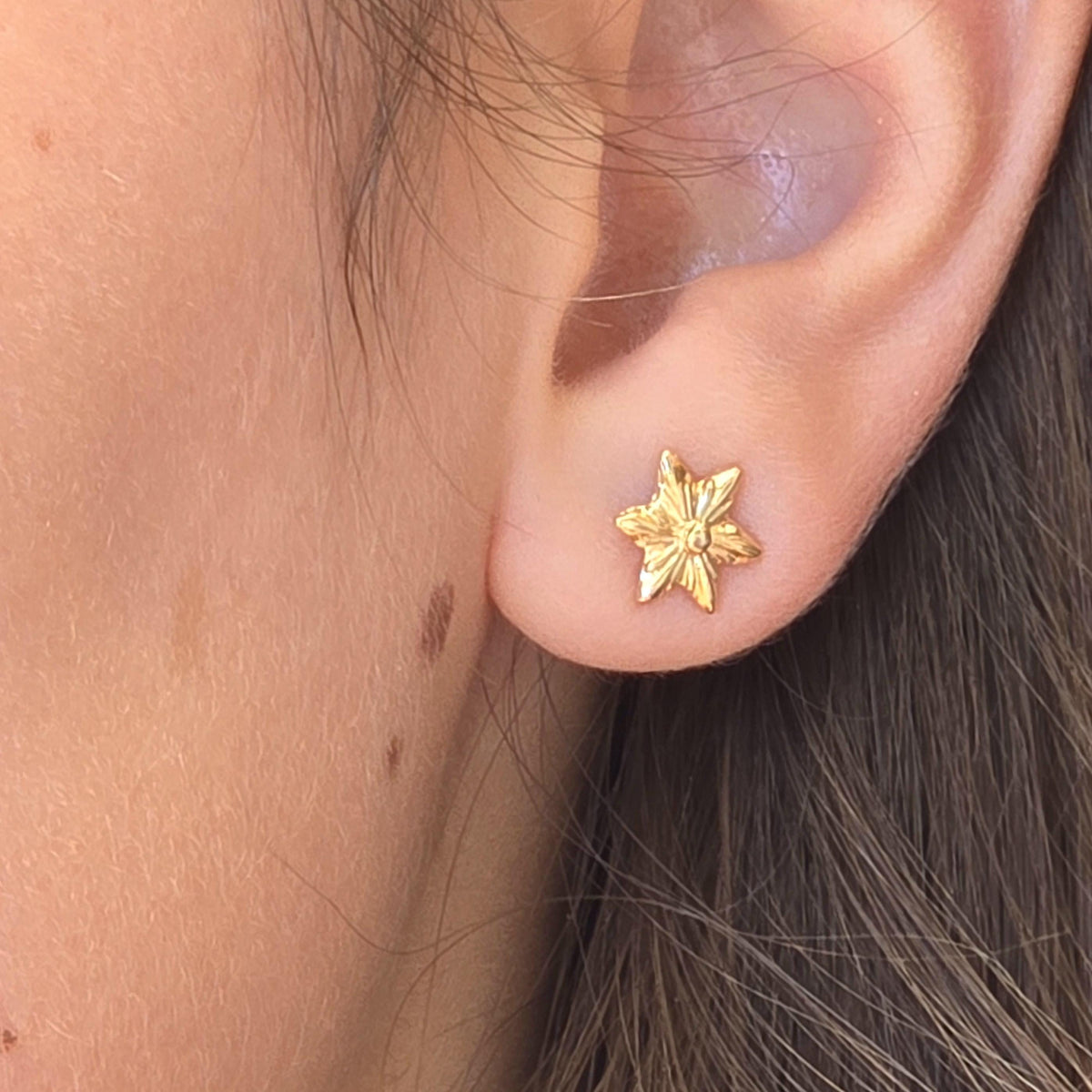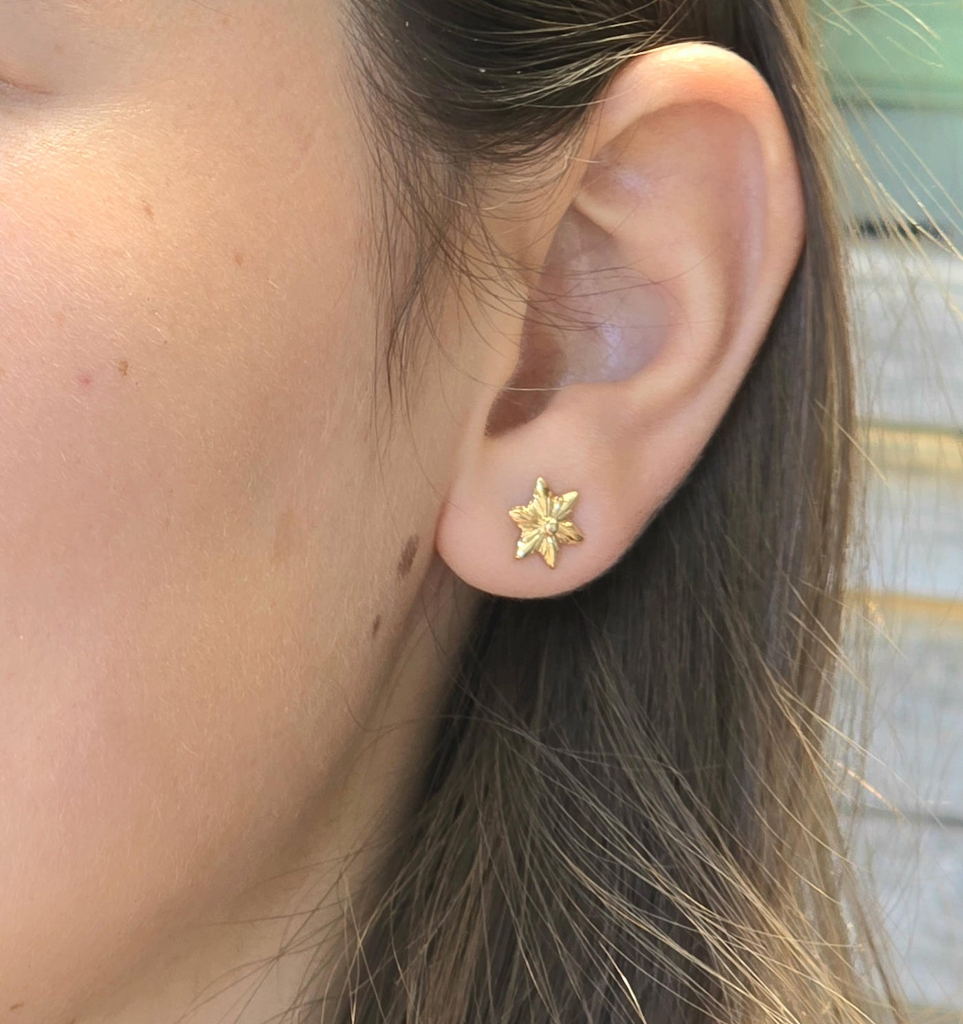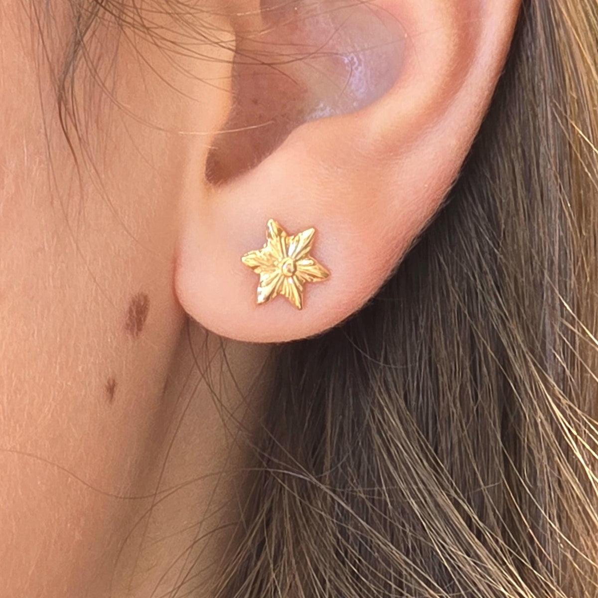 עגילים צמודים פרח כוכב מזהב 14 קראט