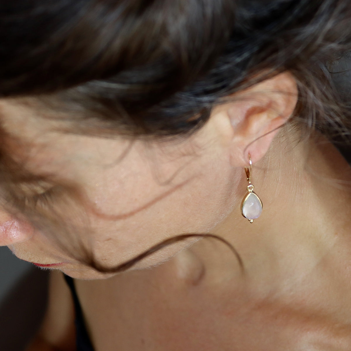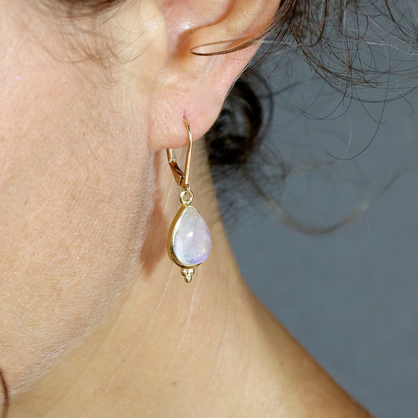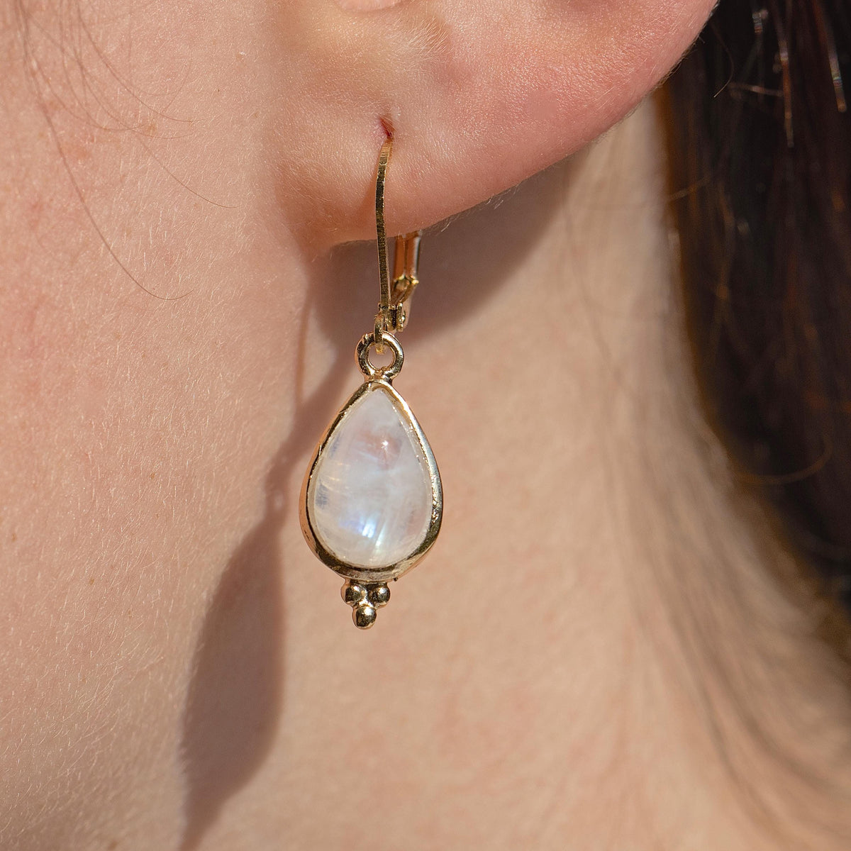עגילי זהב מלא משובצים באבן מונסטון