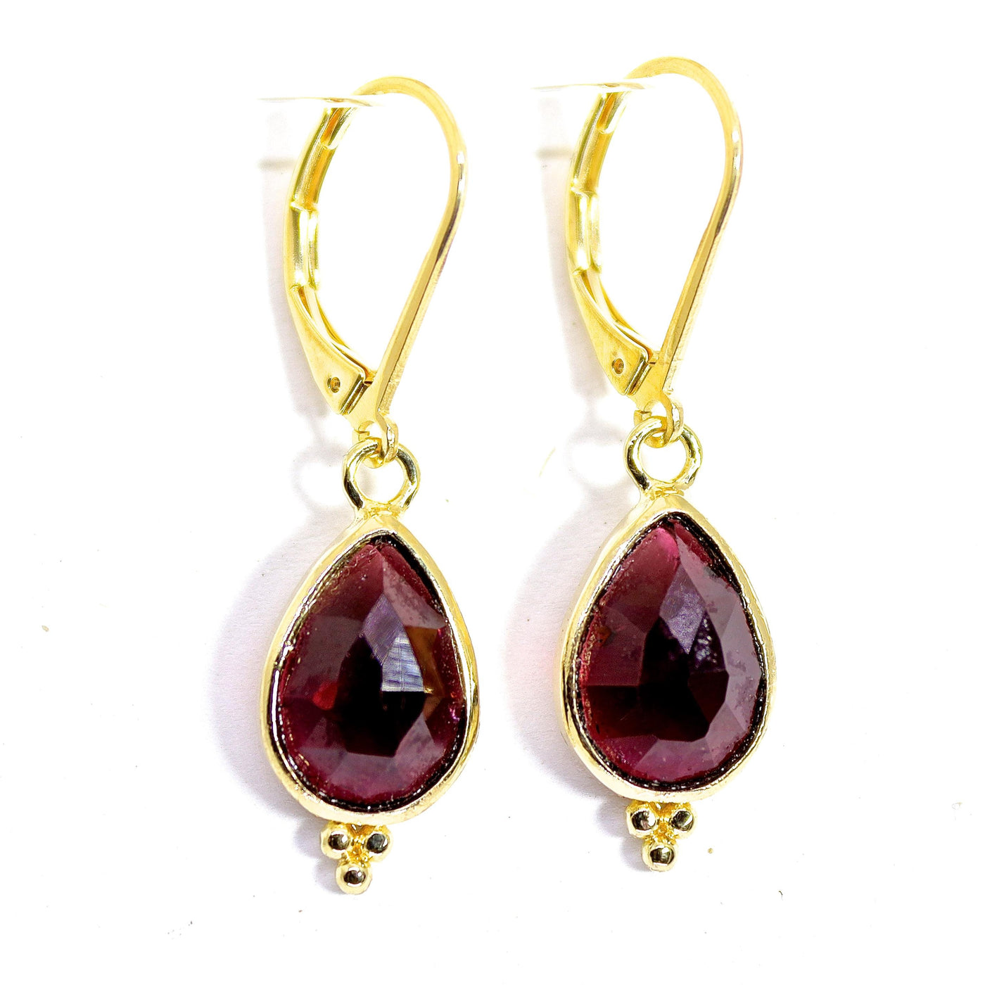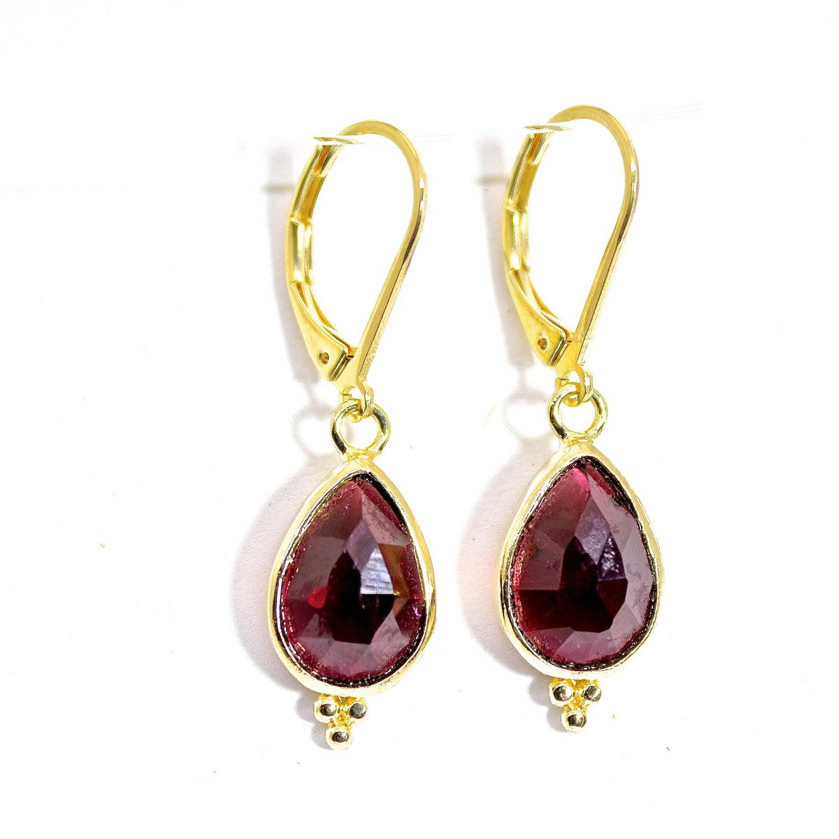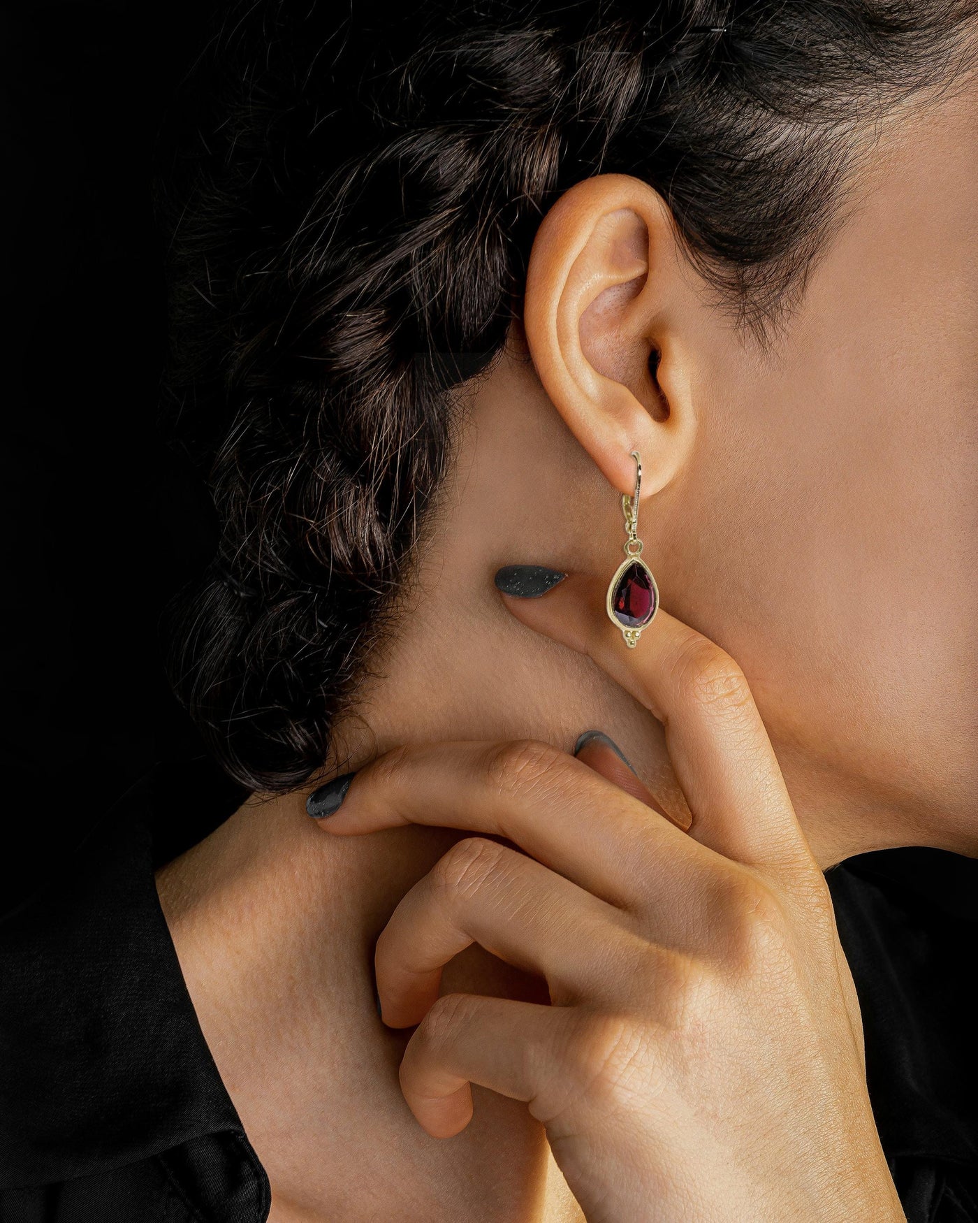 עגילי גרנט טיפה תלויים מזהב 14 קראט