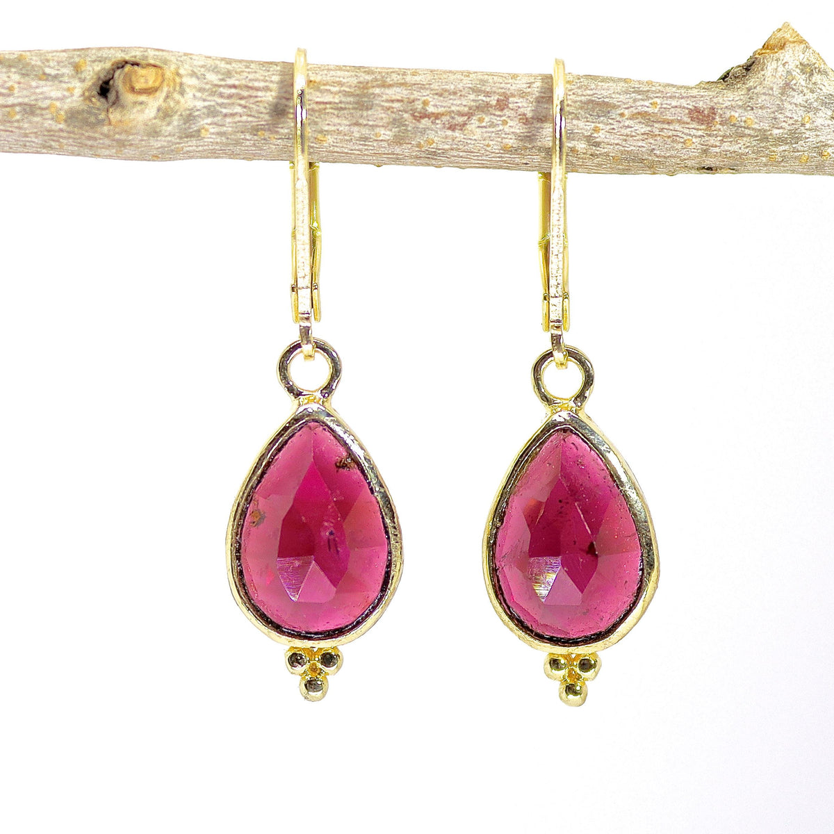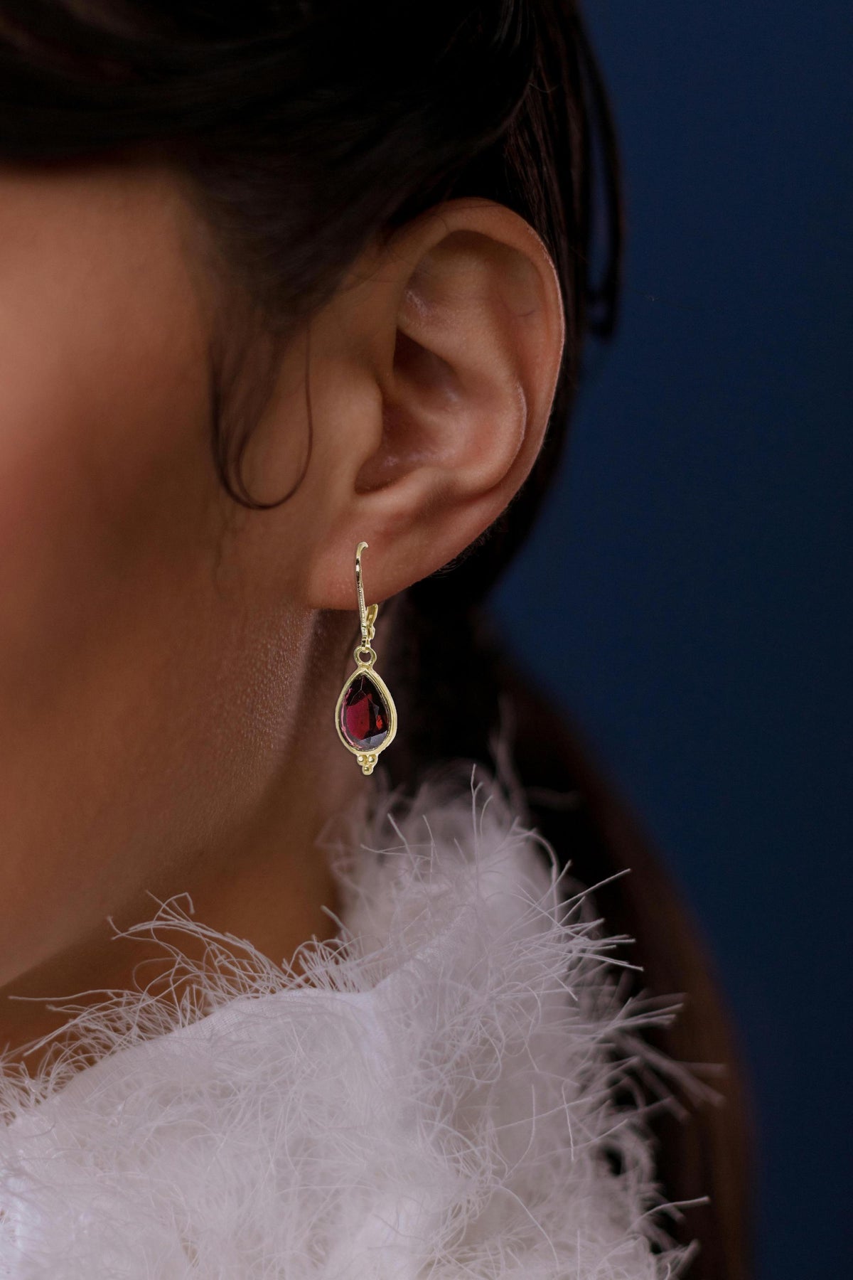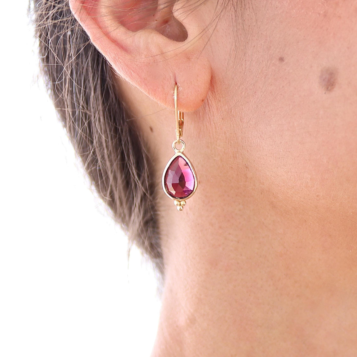 עגילי גרנט טיפה תלויים מזהב 14 קראט