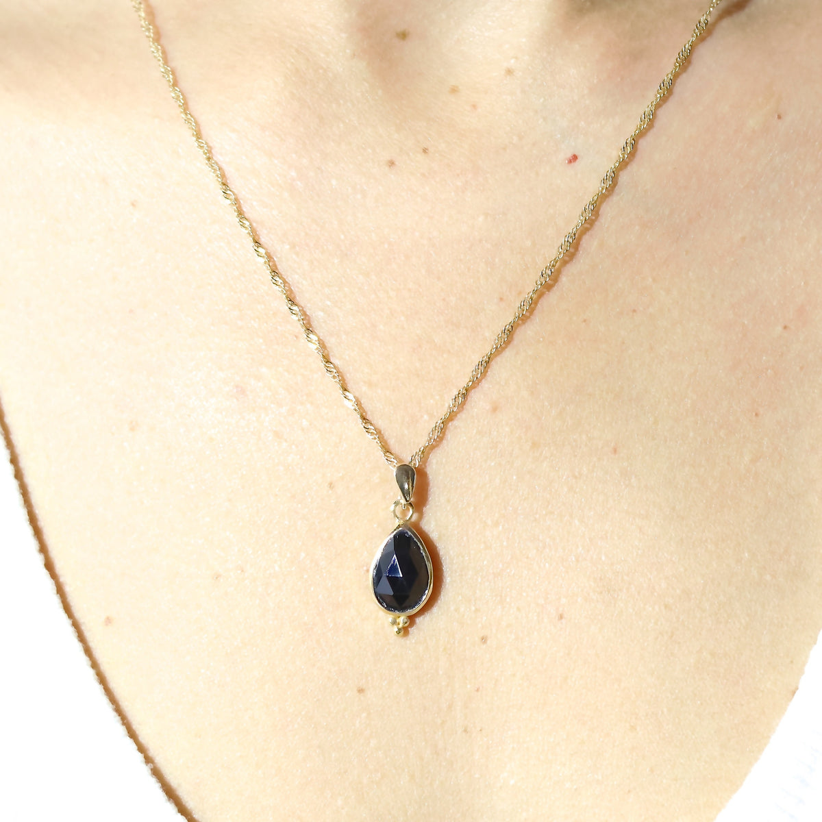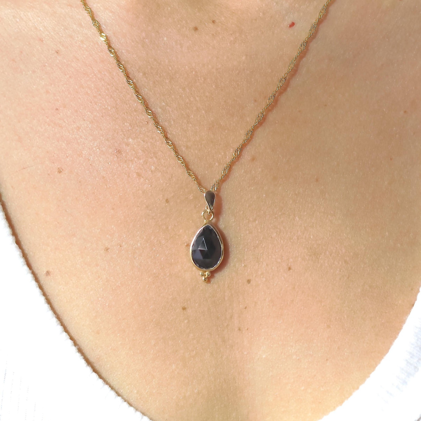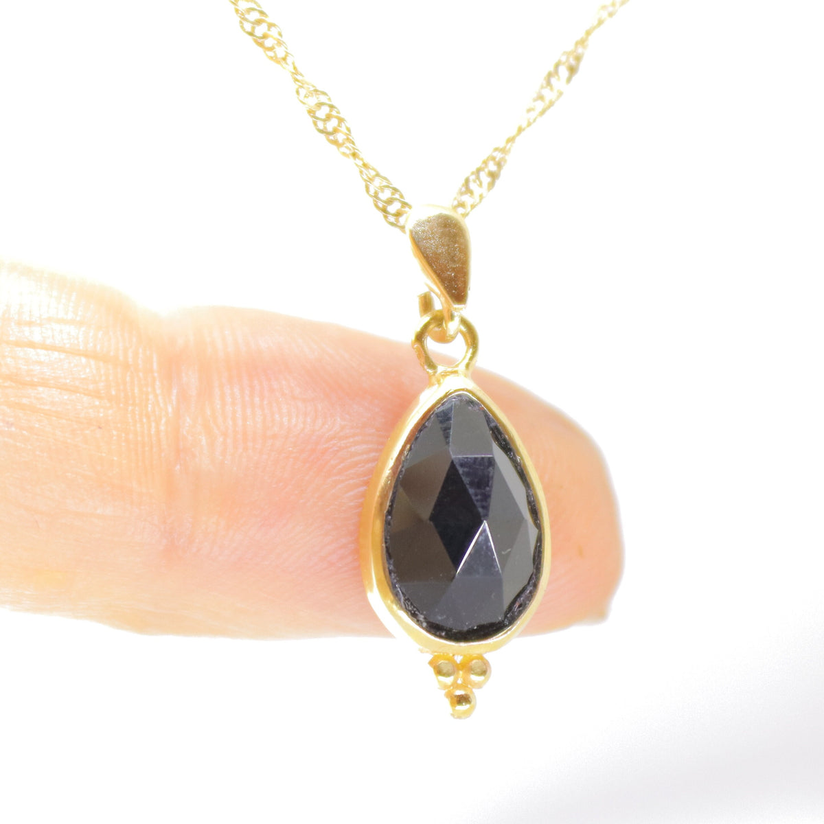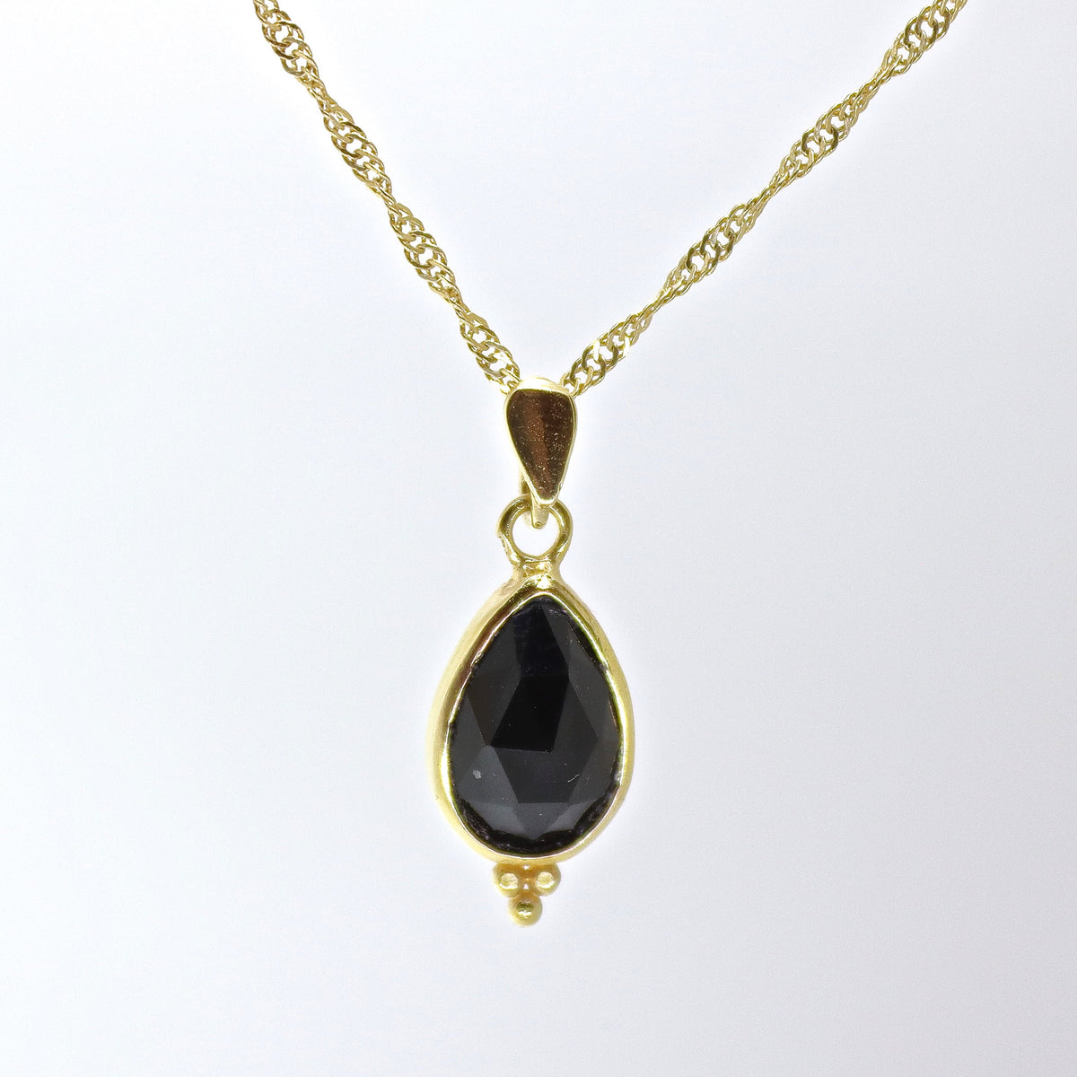 תליון שרשרת טיפה אוניקס שחור זהב 14 קראט