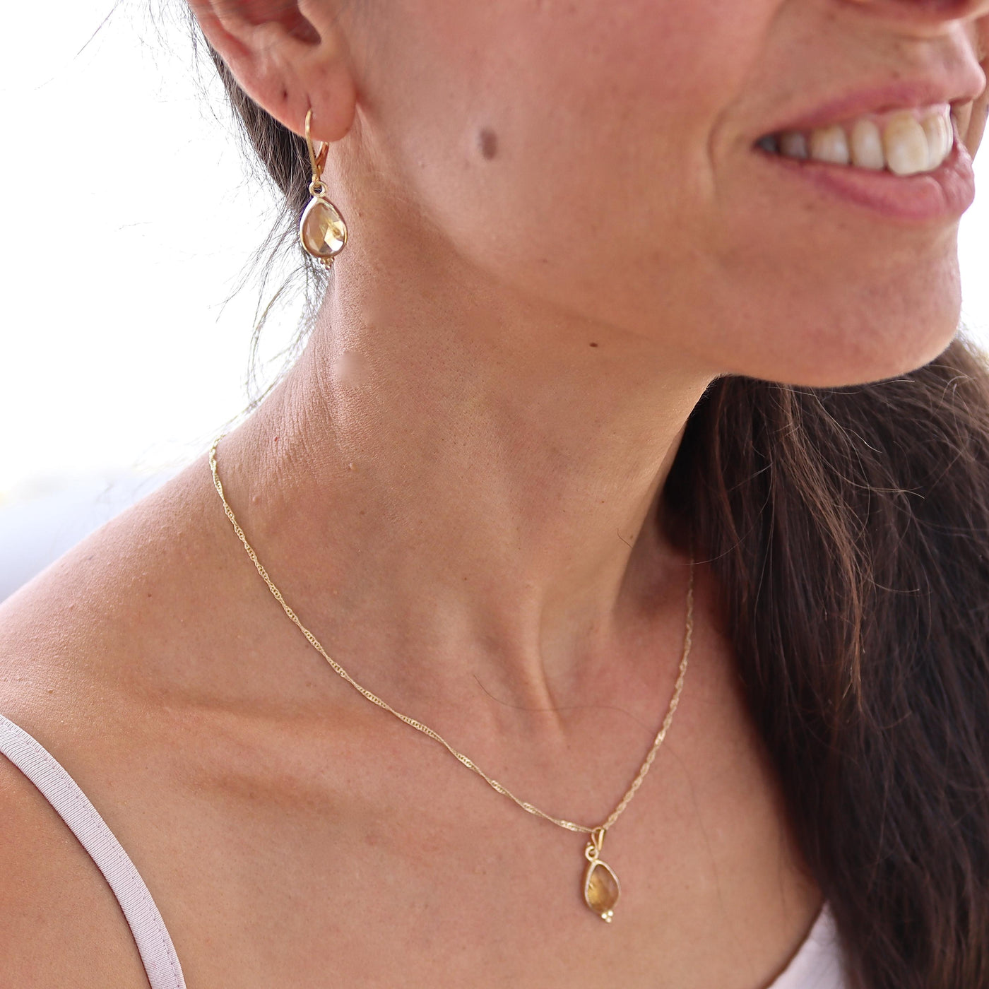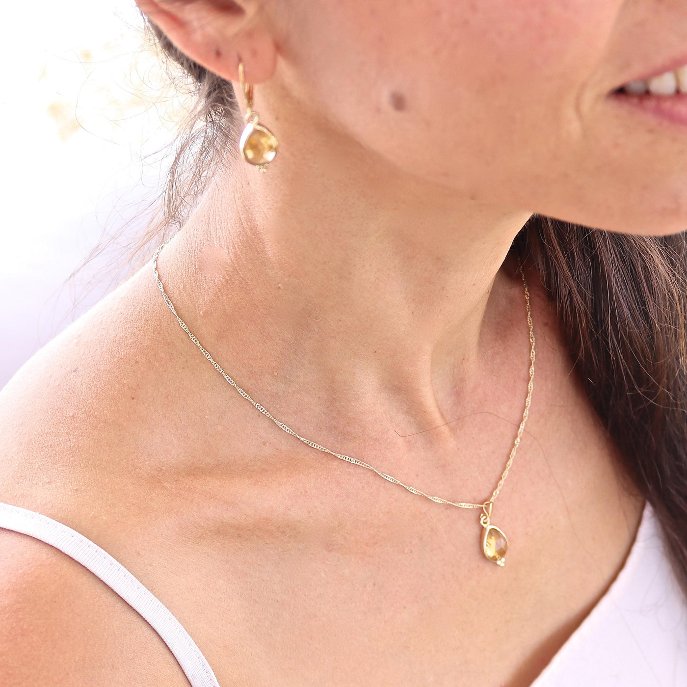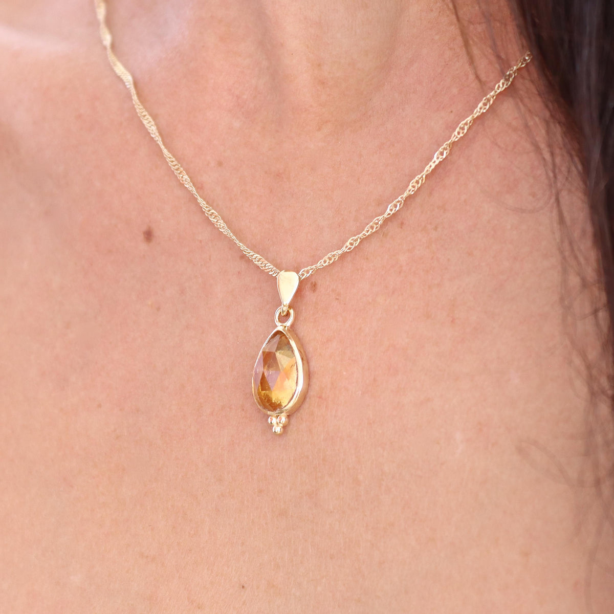תליון שרשרת טיפה סיטרין מזהב 14 קראט
