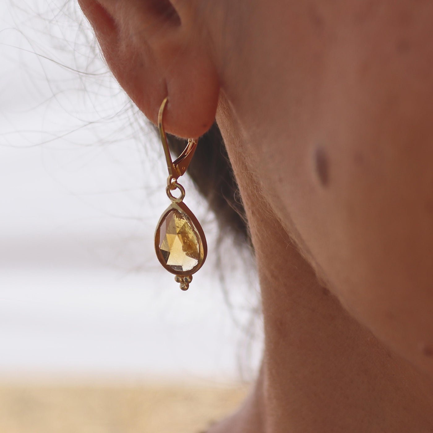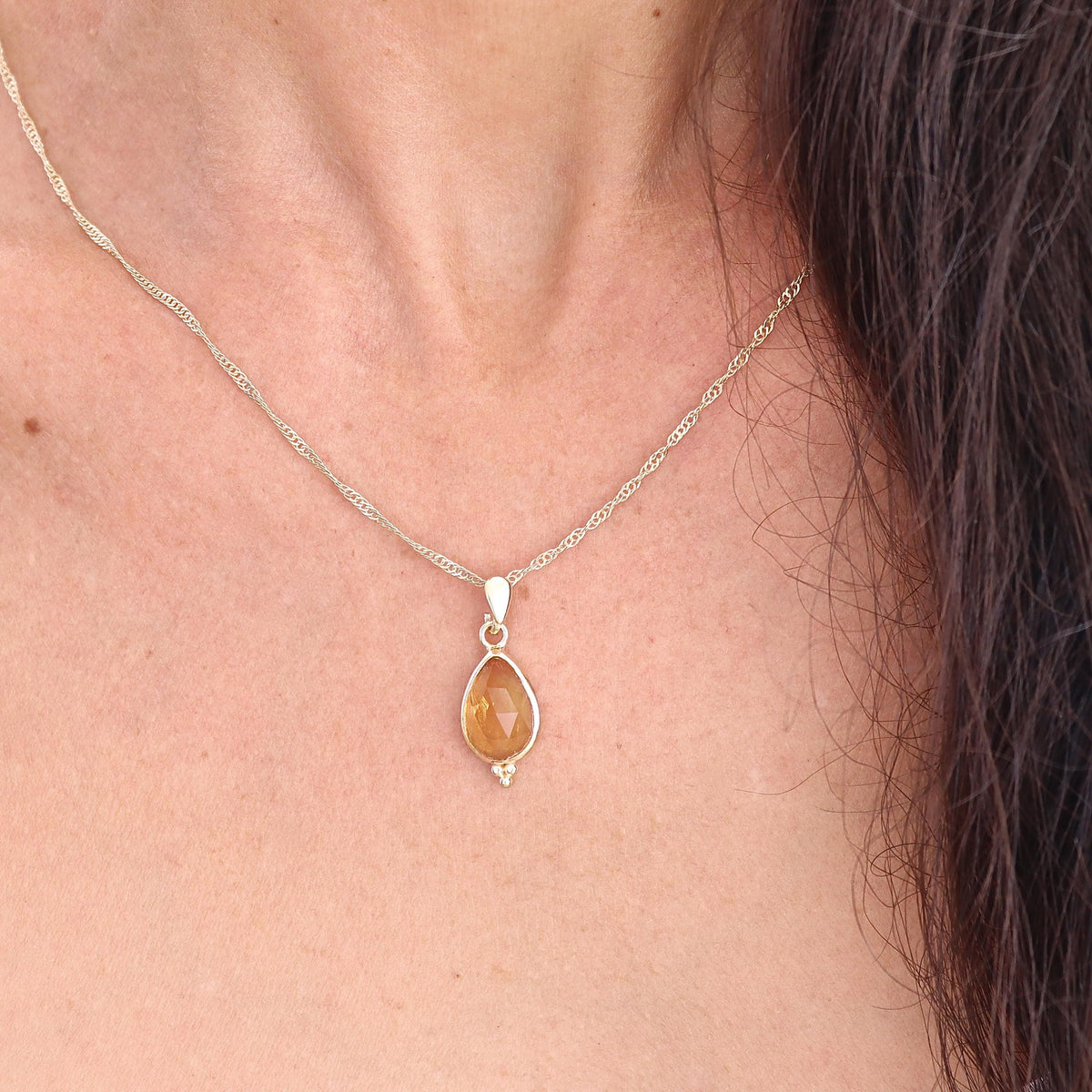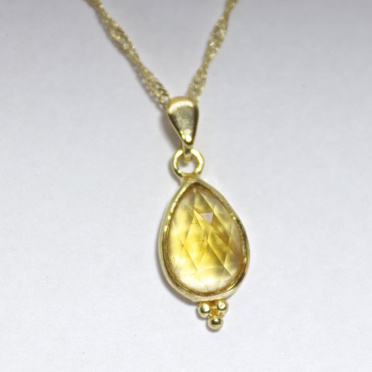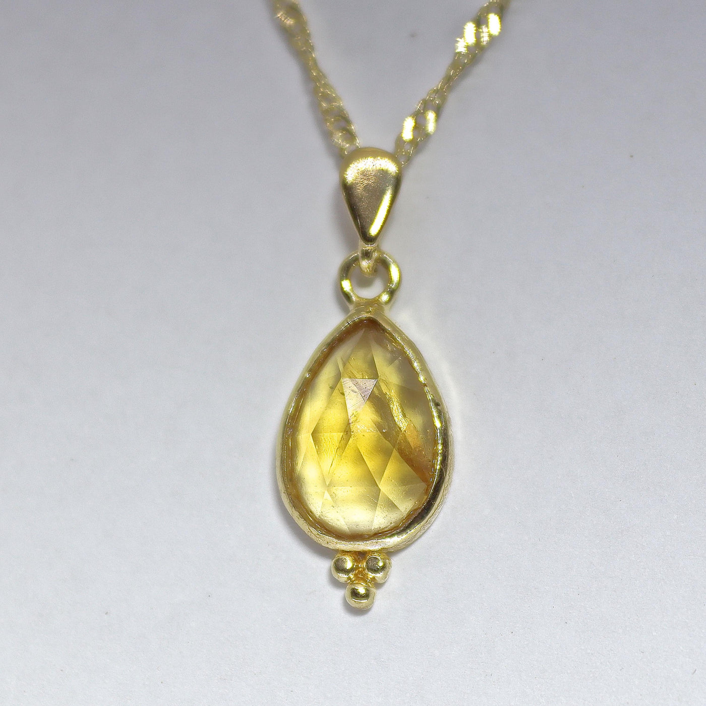 תליון שרשרת טיפה סיטרין מזהב 14 קראט