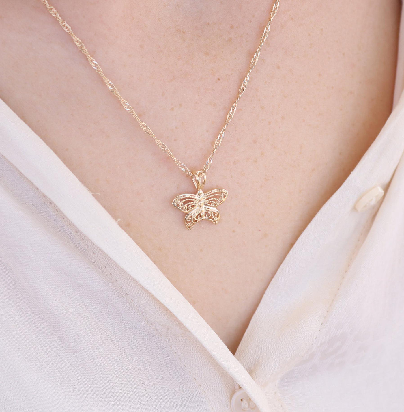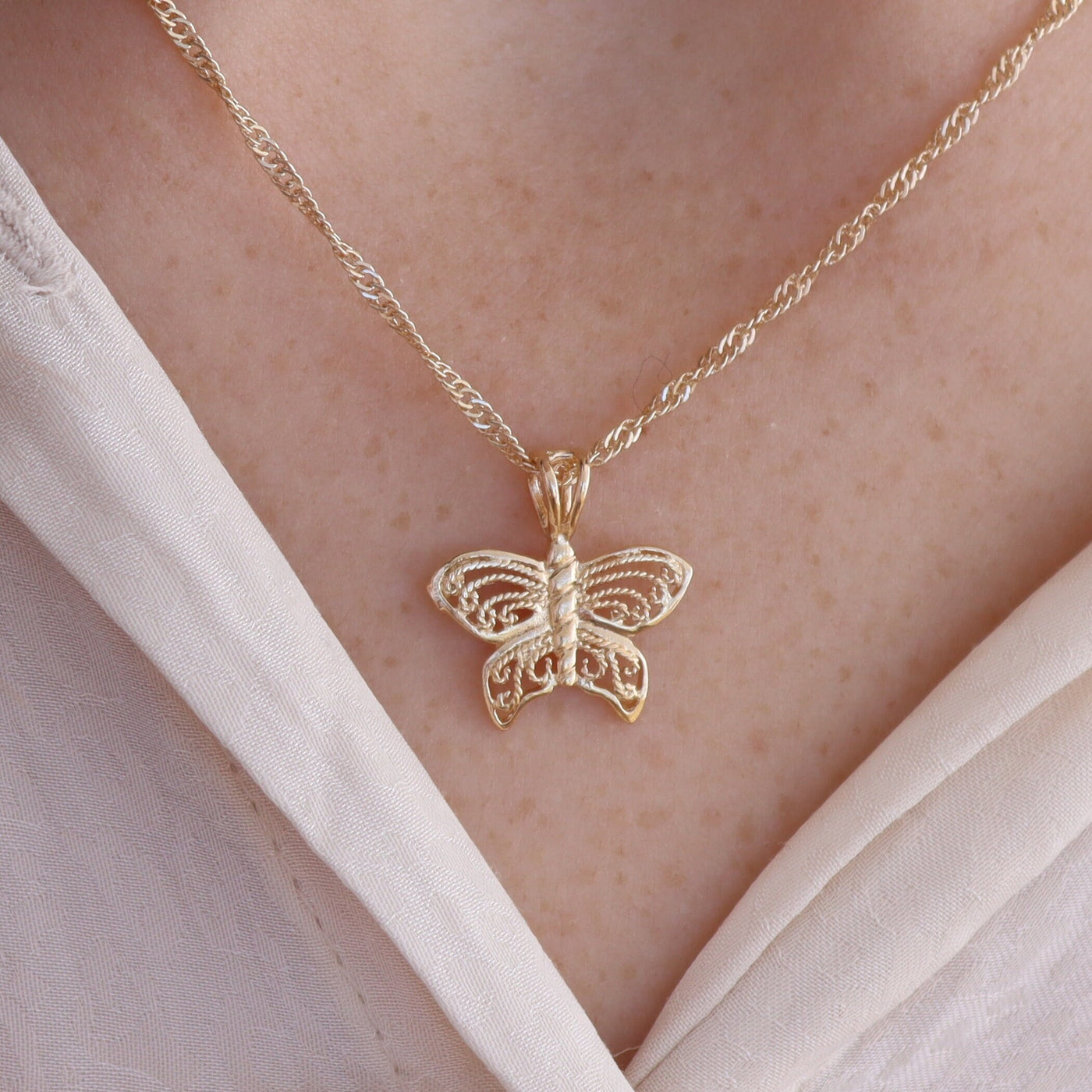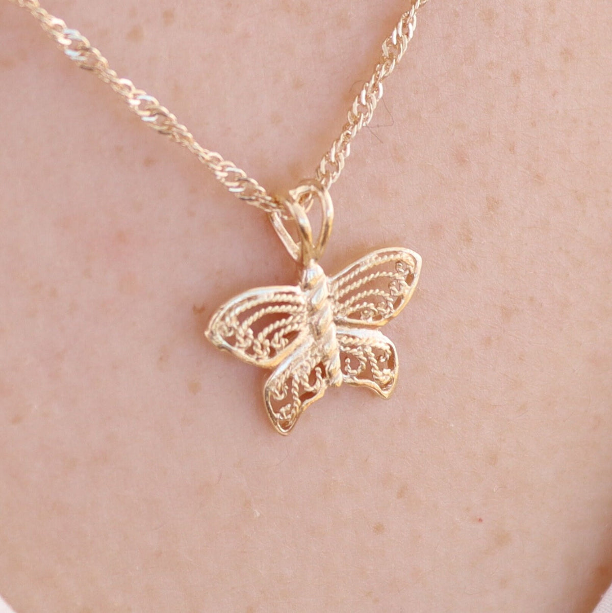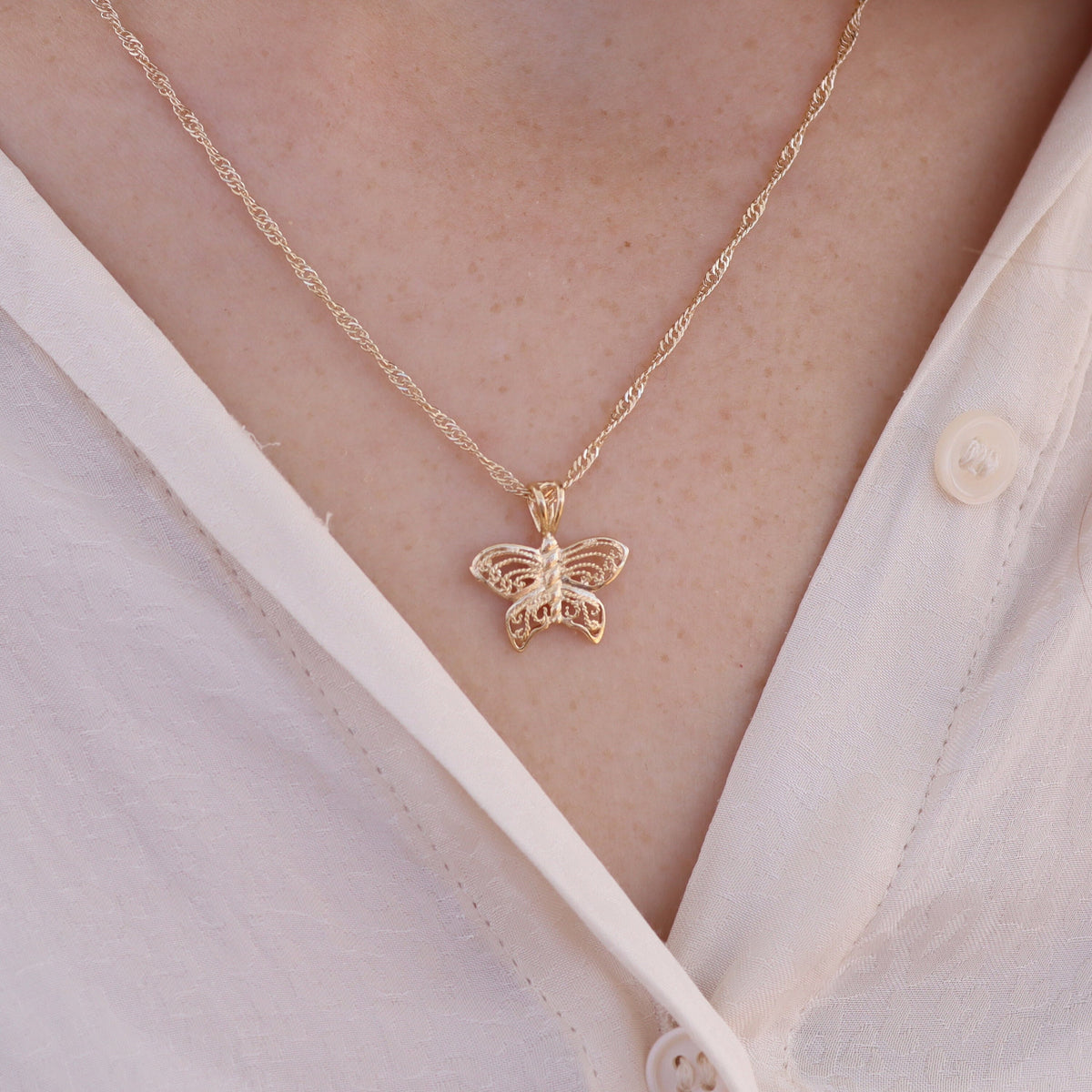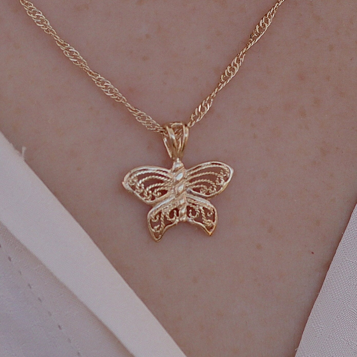 שרשרת פרפר פיליגרן מזהב 14 קראט