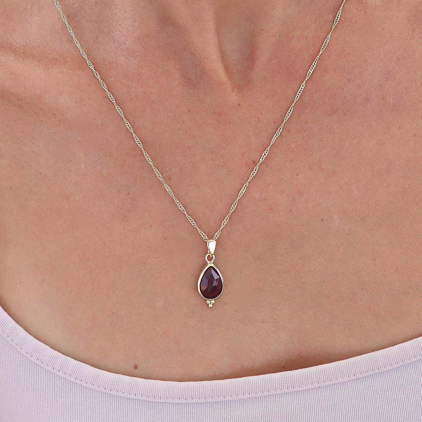 תליון שרשרת טיפה גרנט מזהב 14 קראט