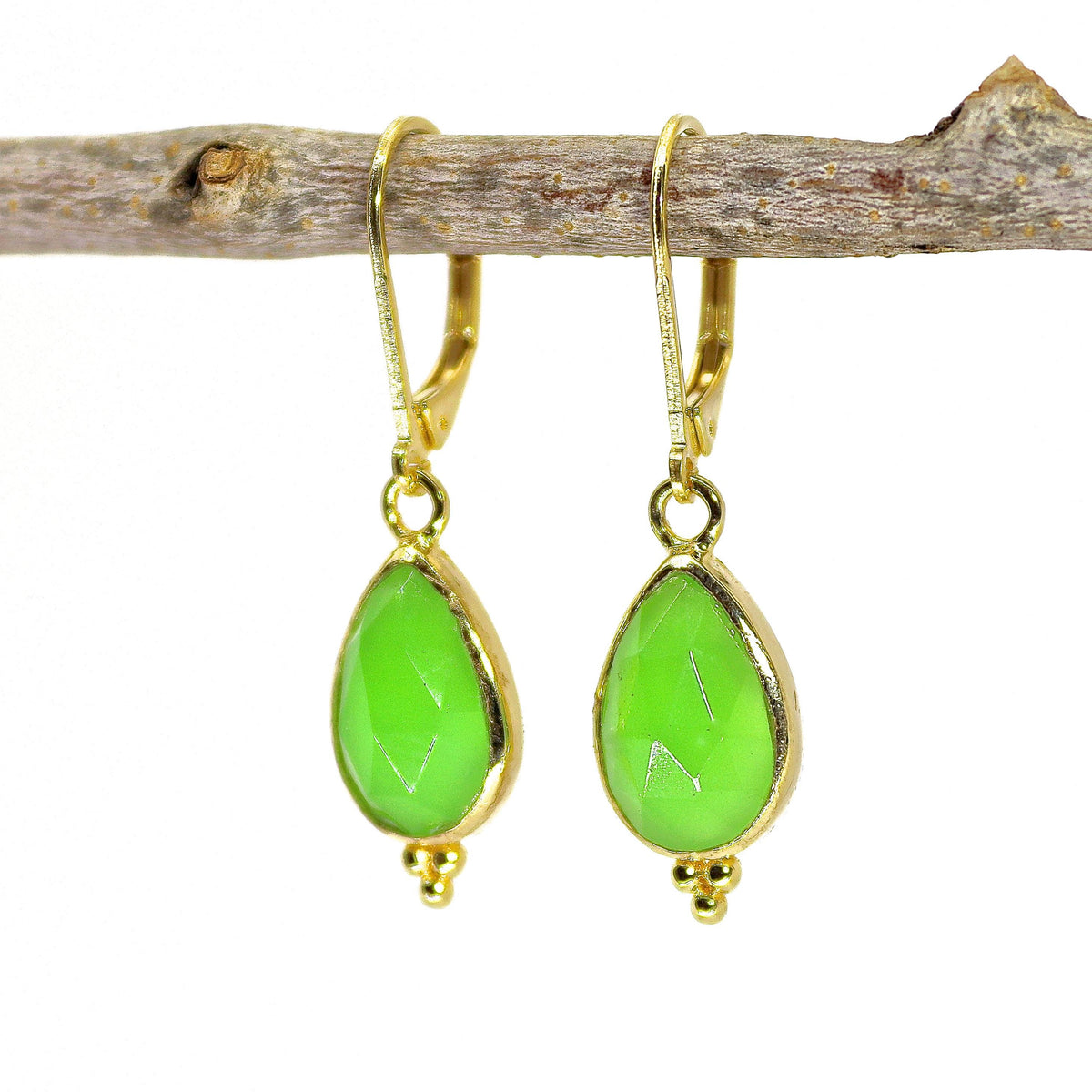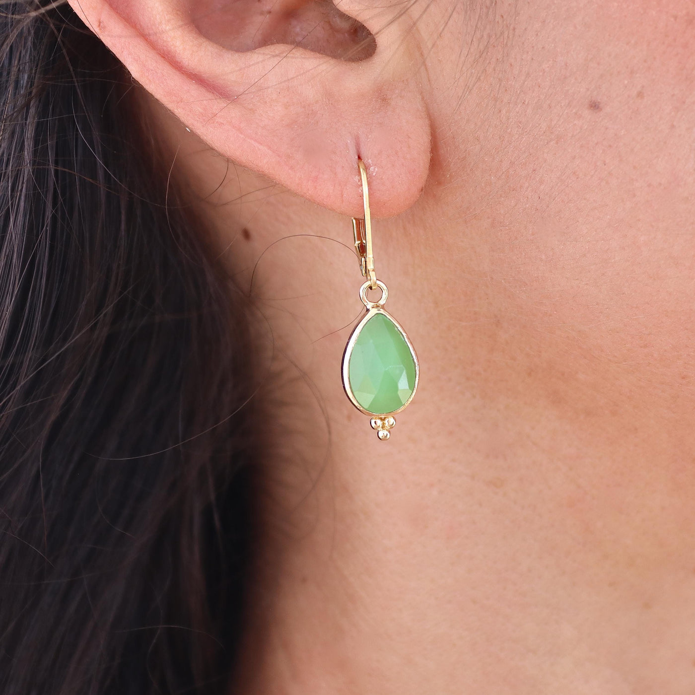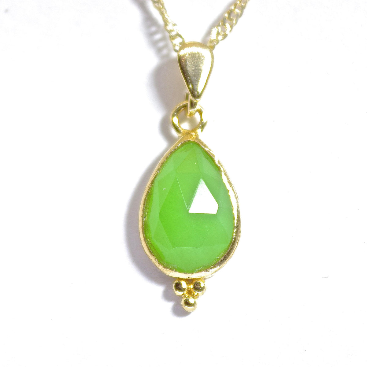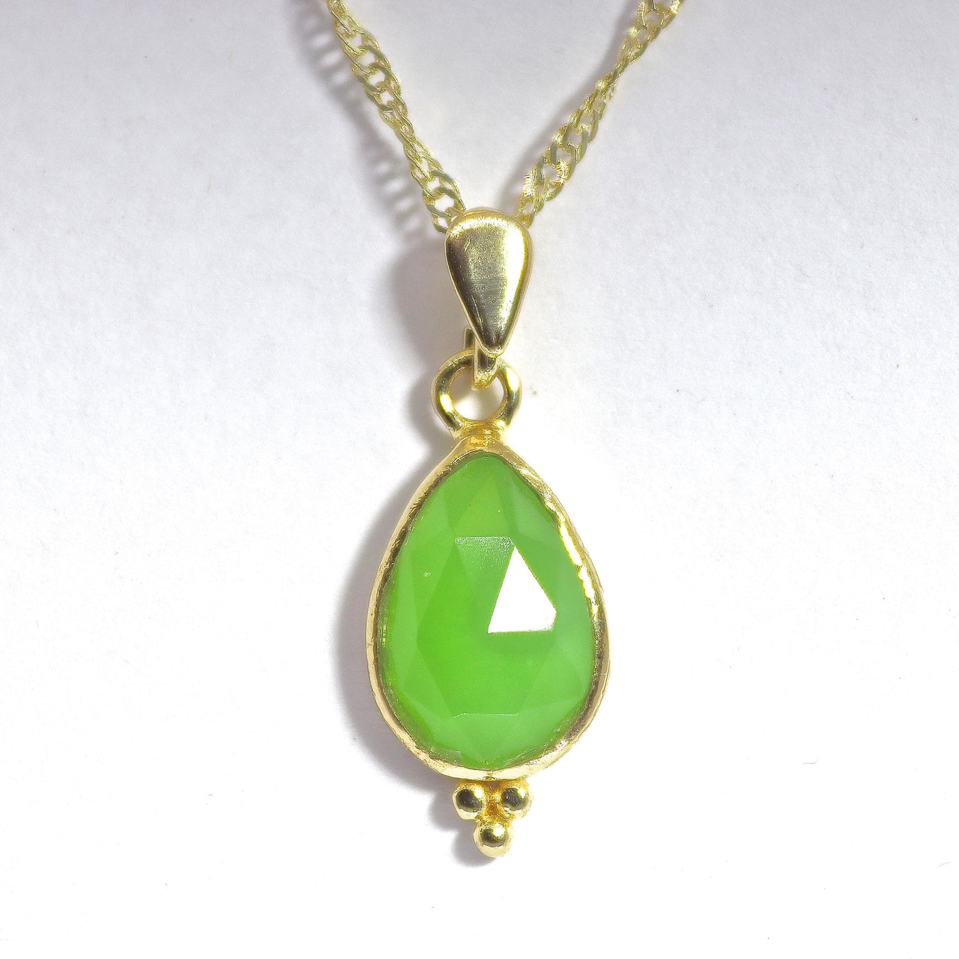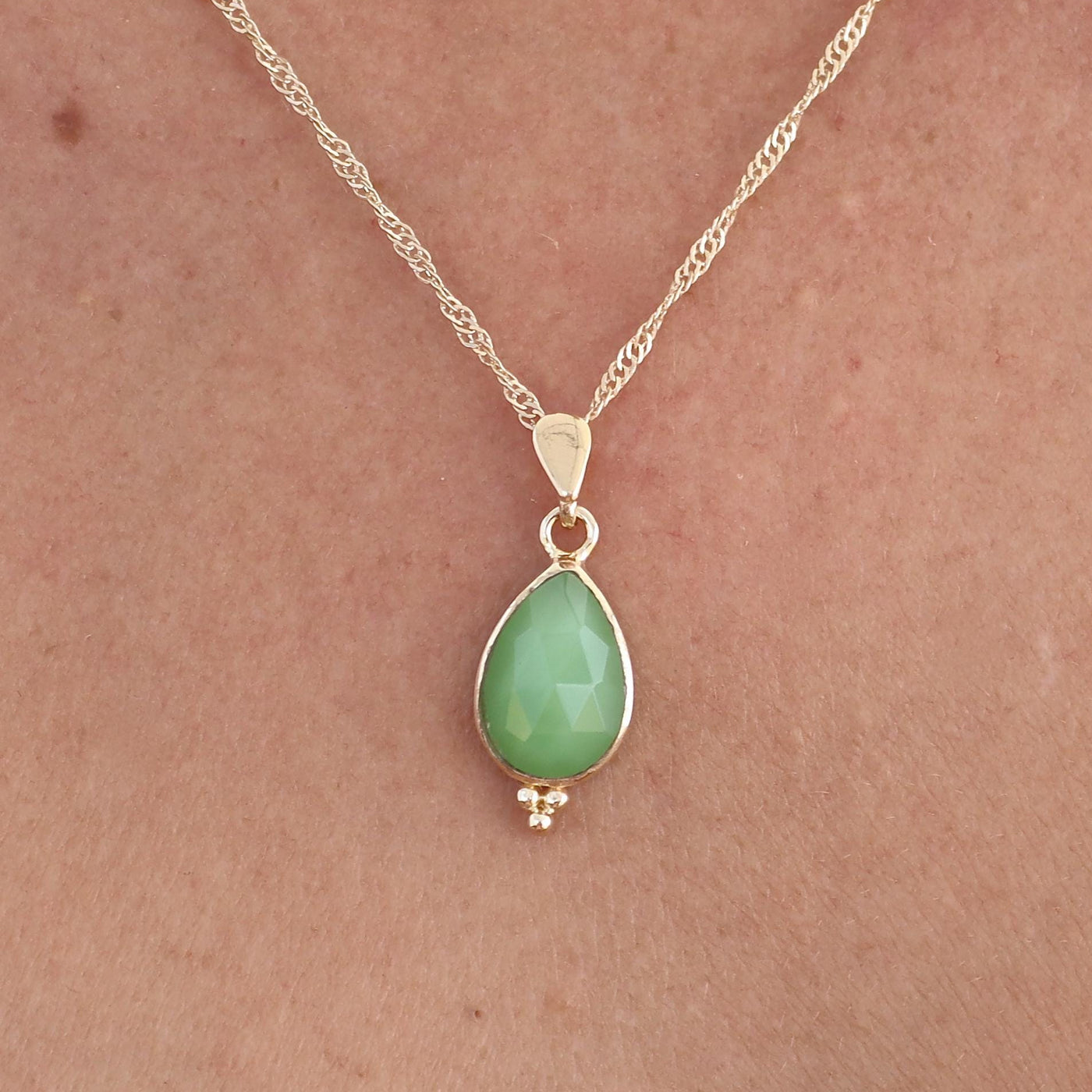 שרשרת ג'ייד טיפה זהב 14 קראט עם 3 נקודות