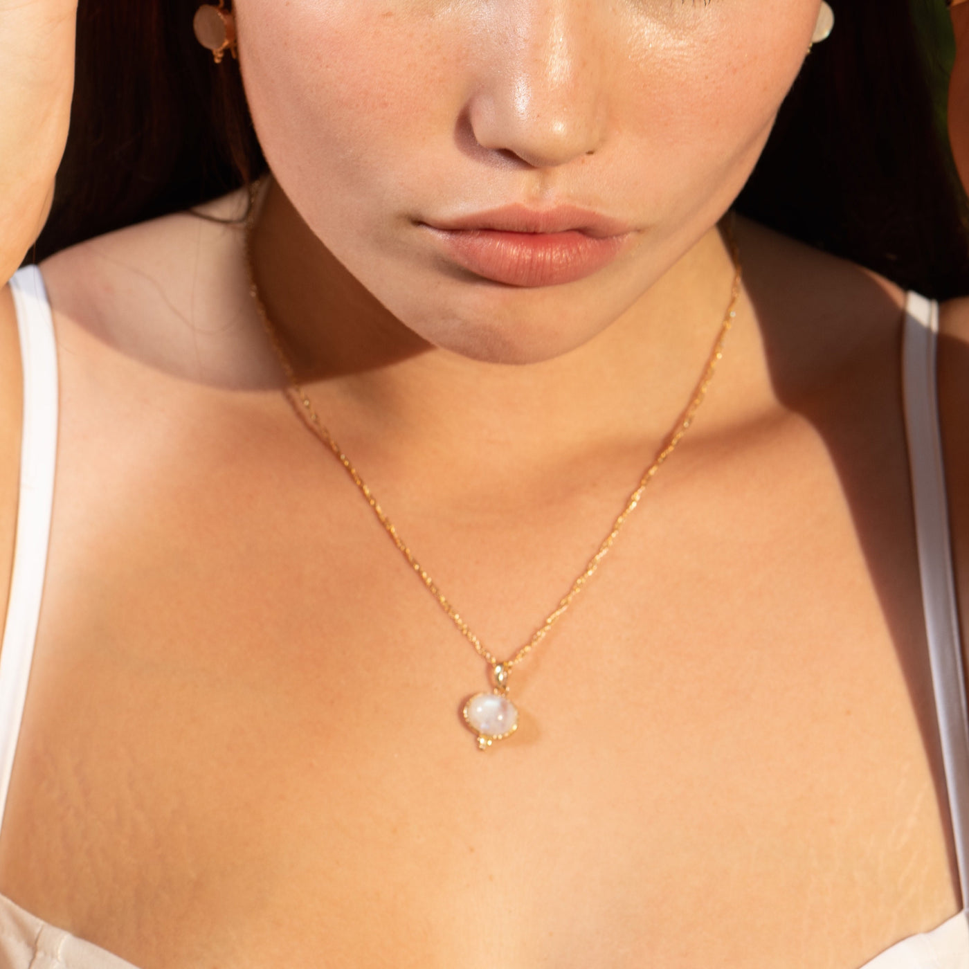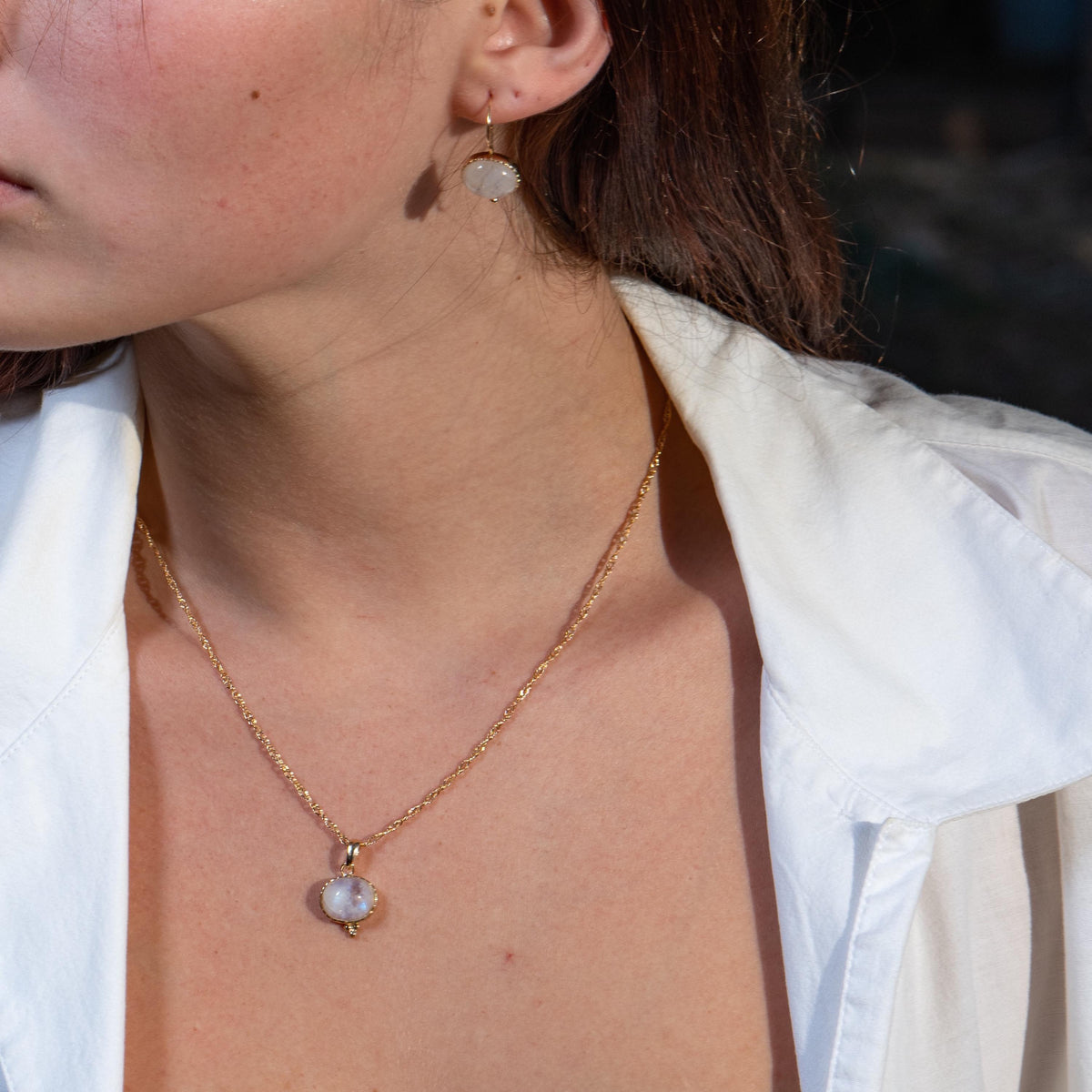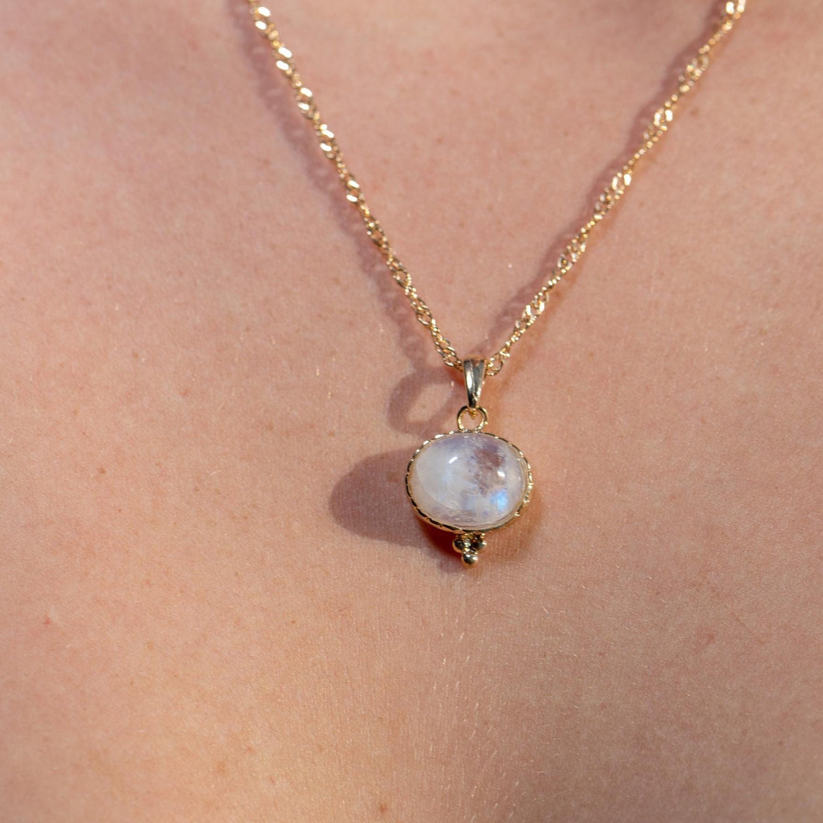שרשרת זהב 14 קראט משובצת באבן מונסטון