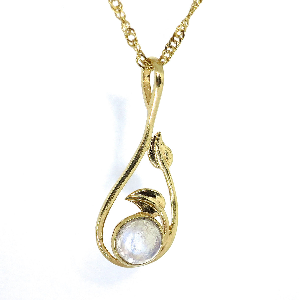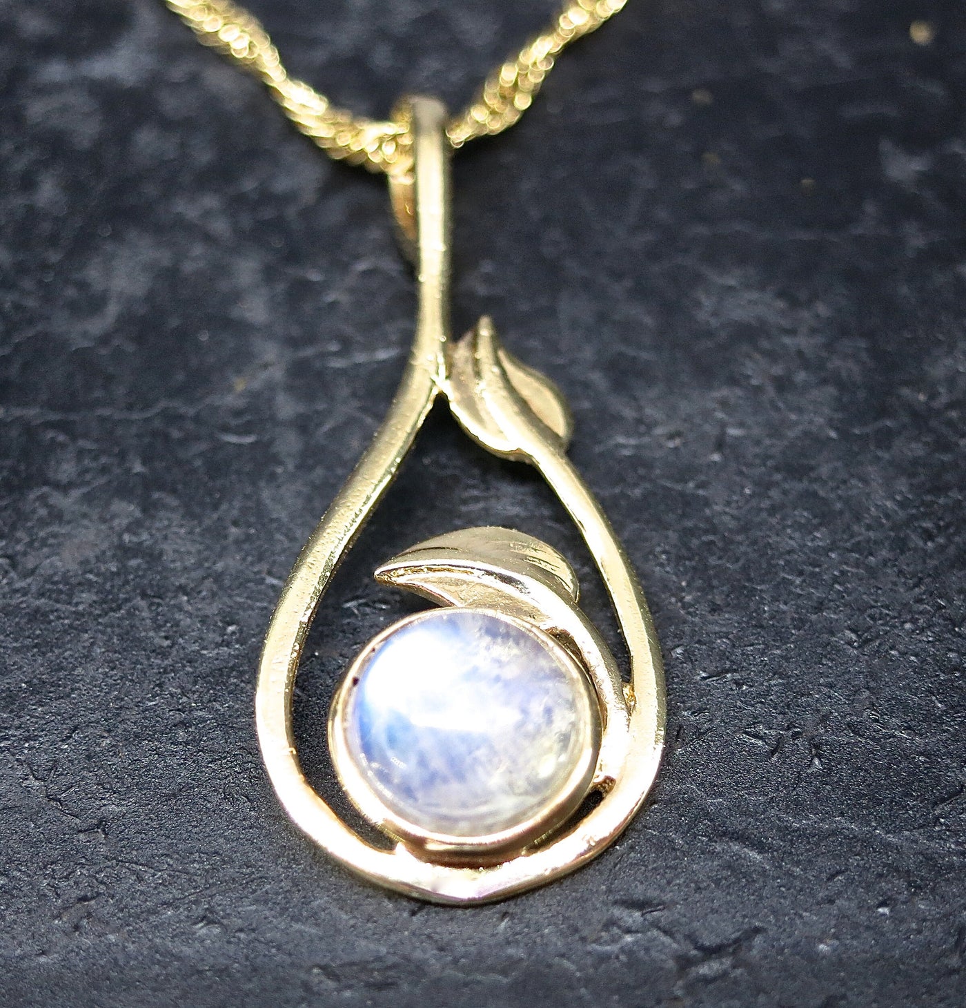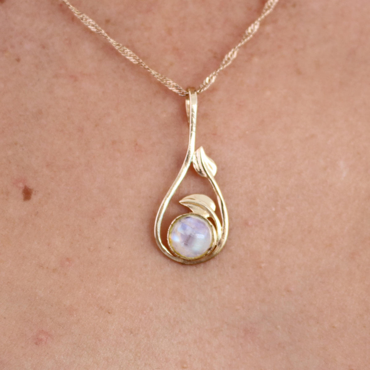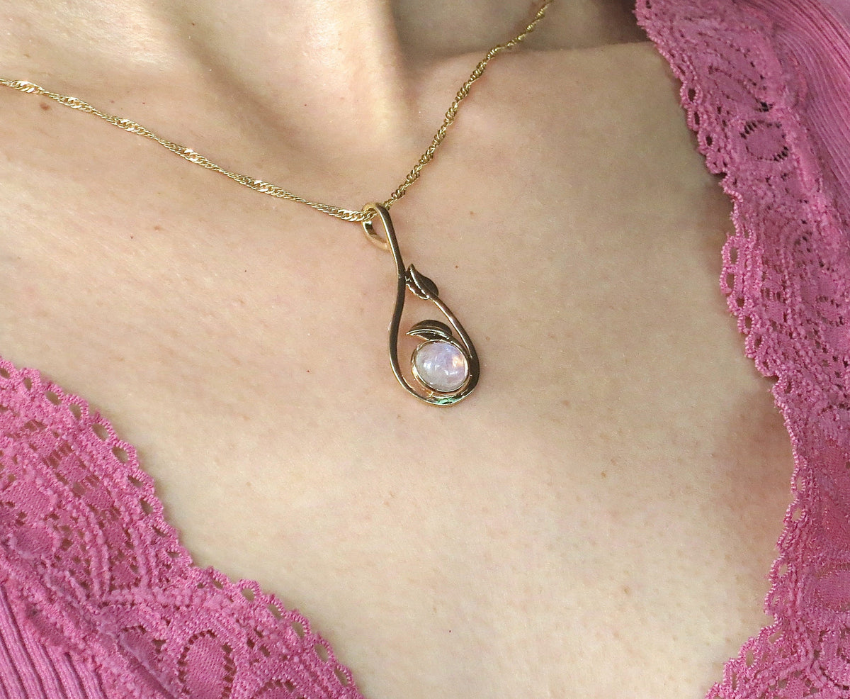 שרשרת תליון עלים בעבודת יד משובצת באבן מונסטון מזהב 14 קראט