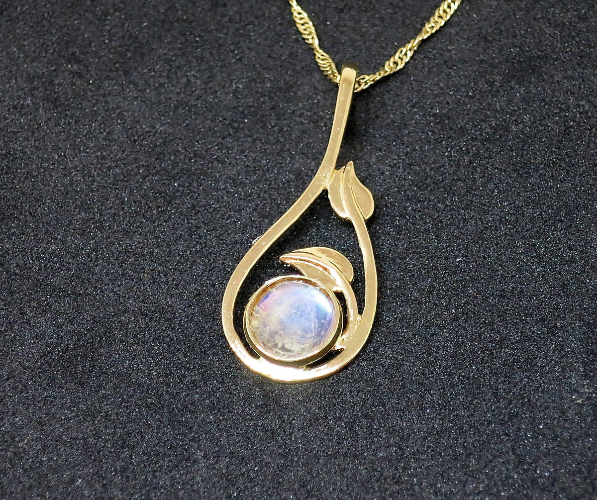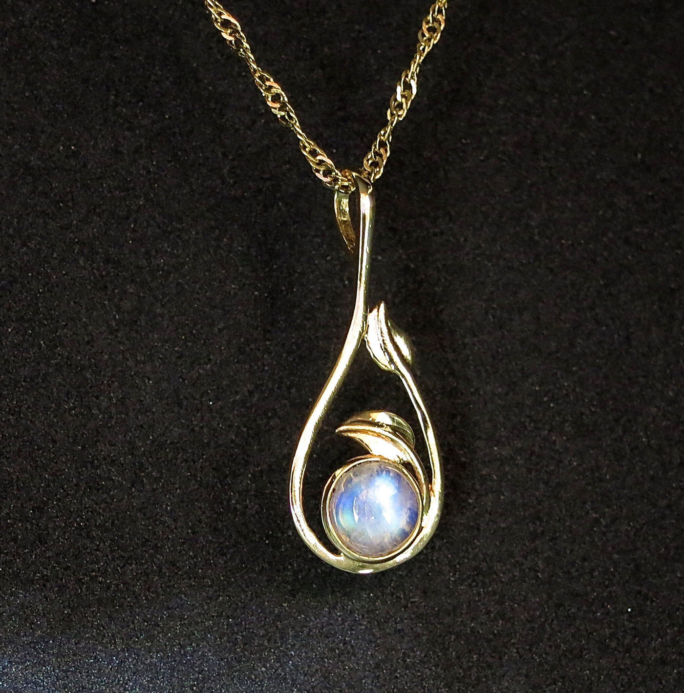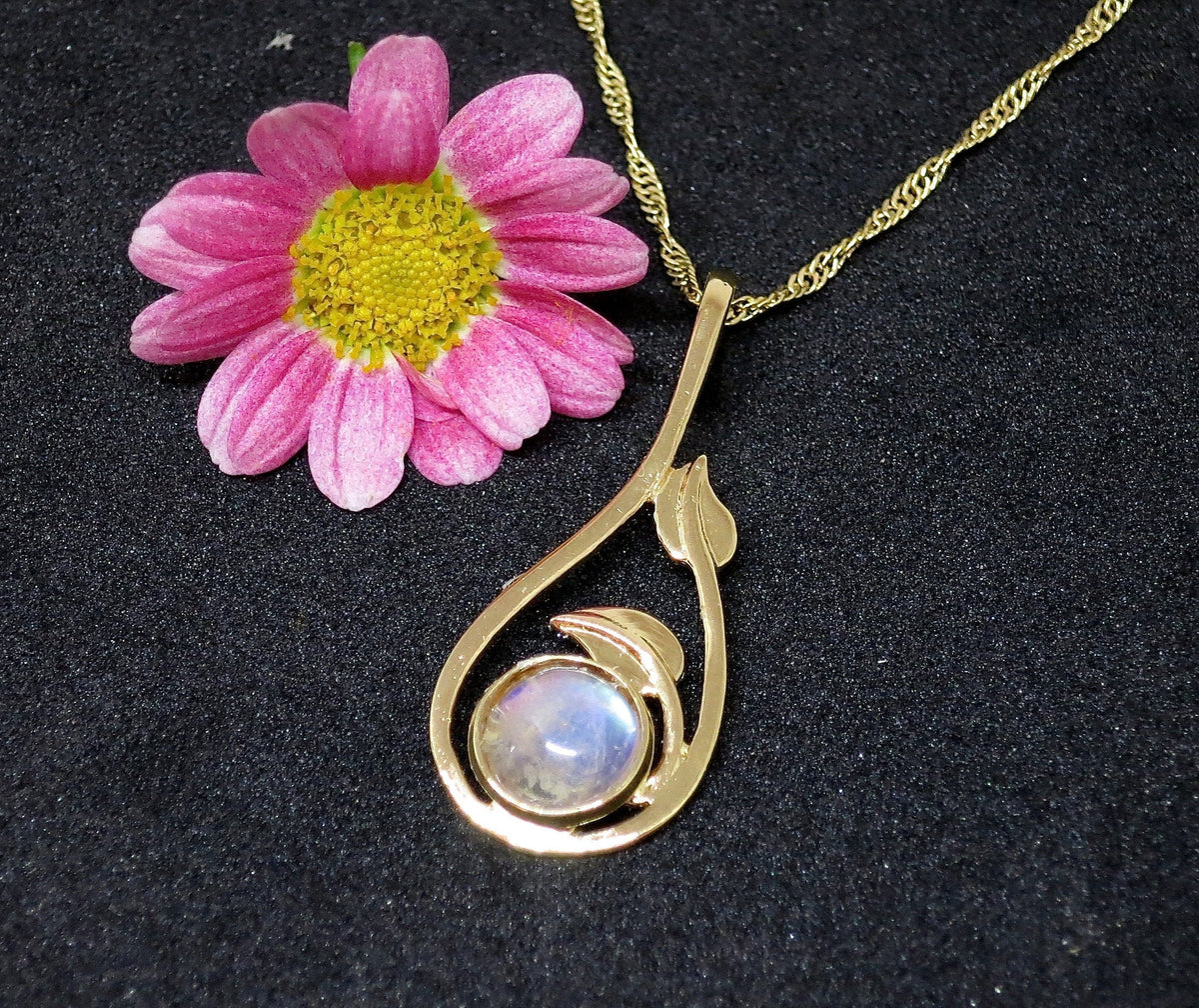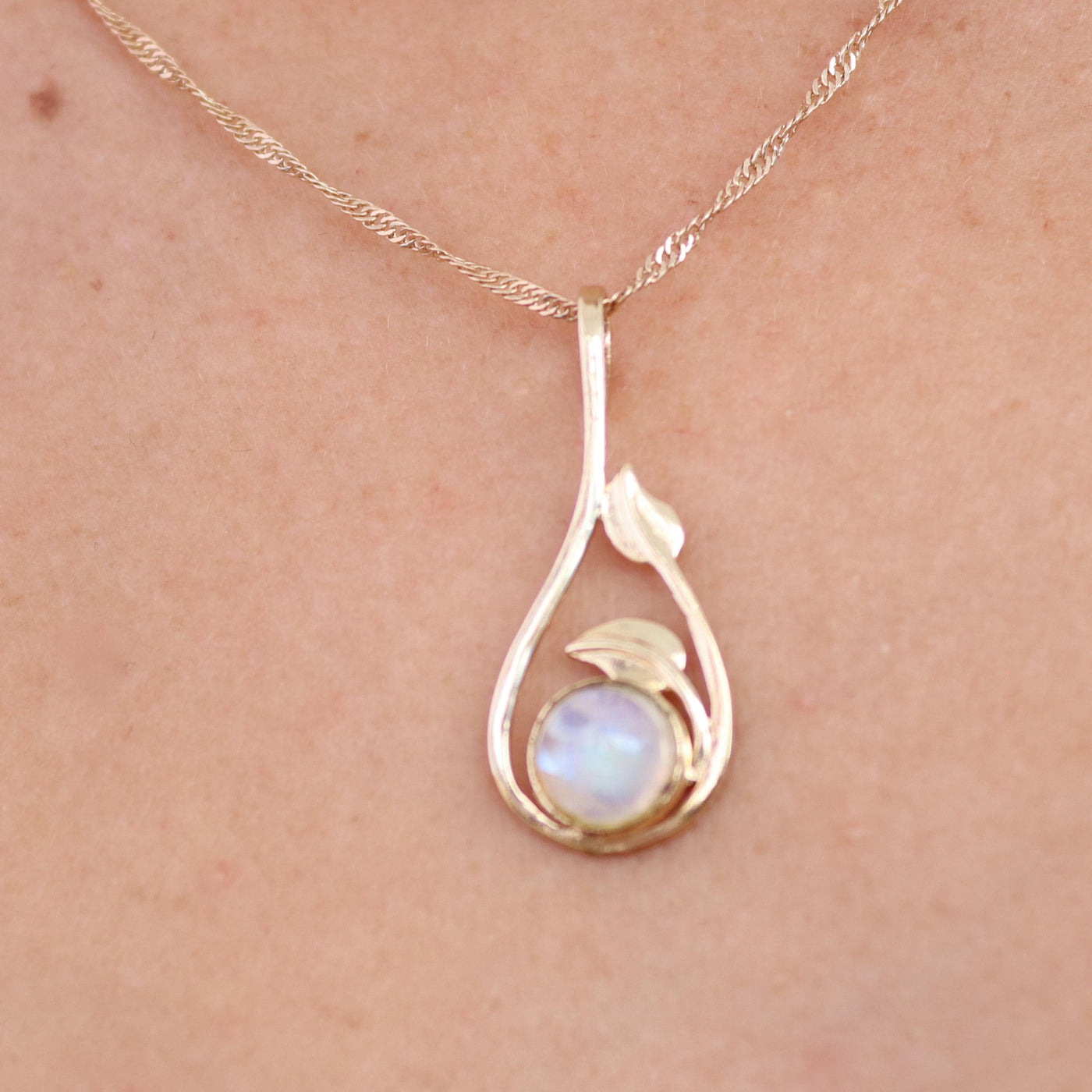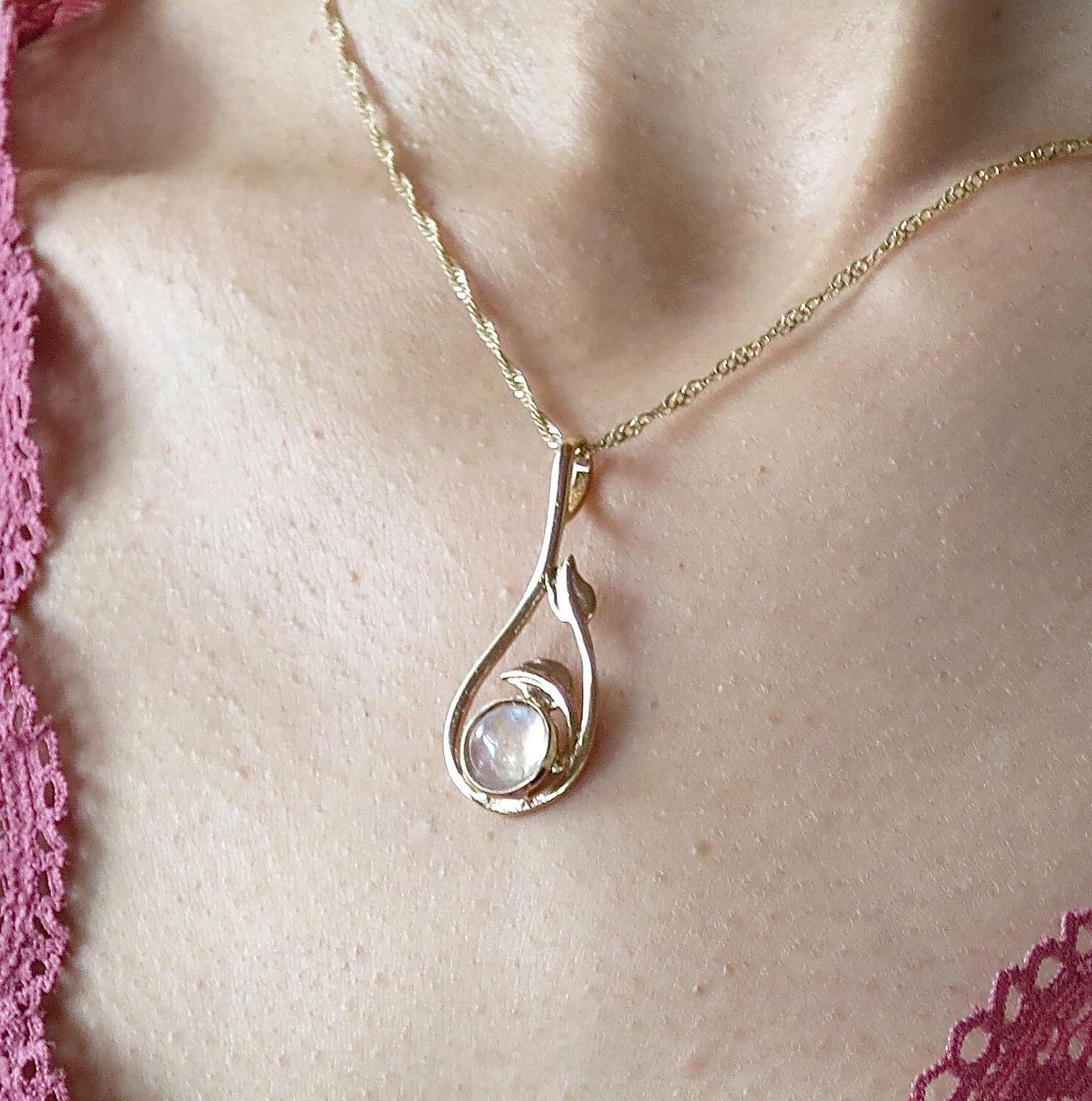 שרשרת תליון עלים בעבודת יד משובצת באבן מונסטון מזהב 14 קראט