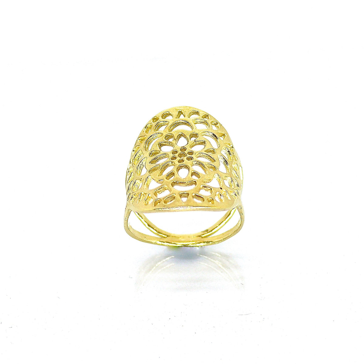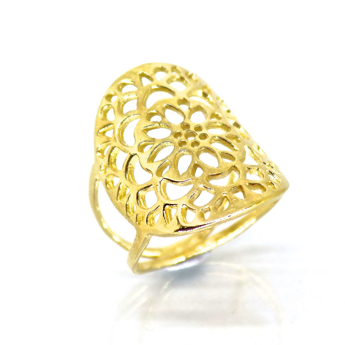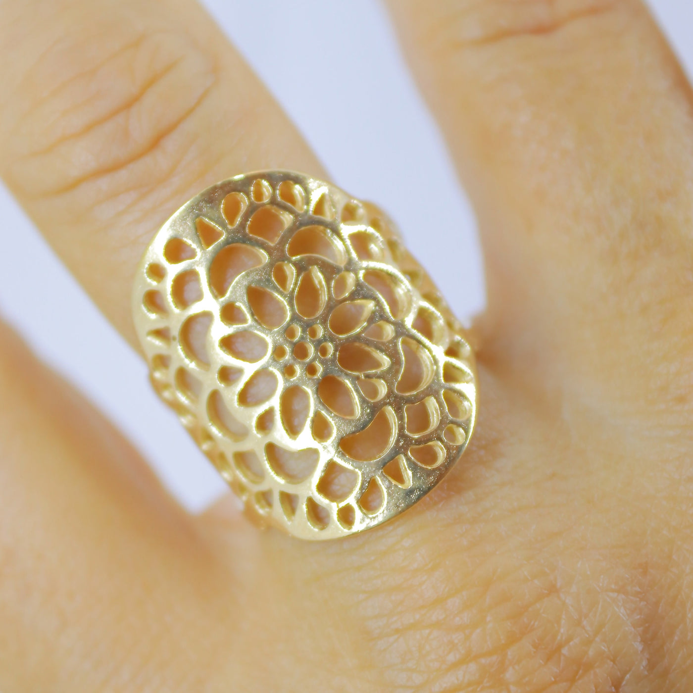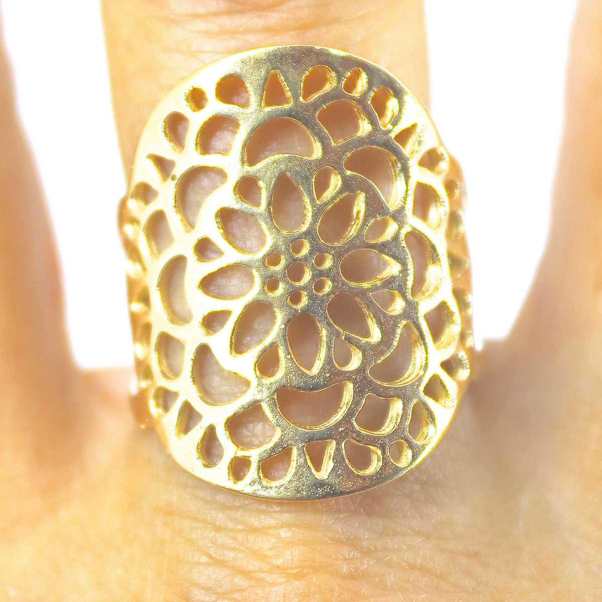 טבעת תחרה פרחונית ארוכה מזהב 14 קראט