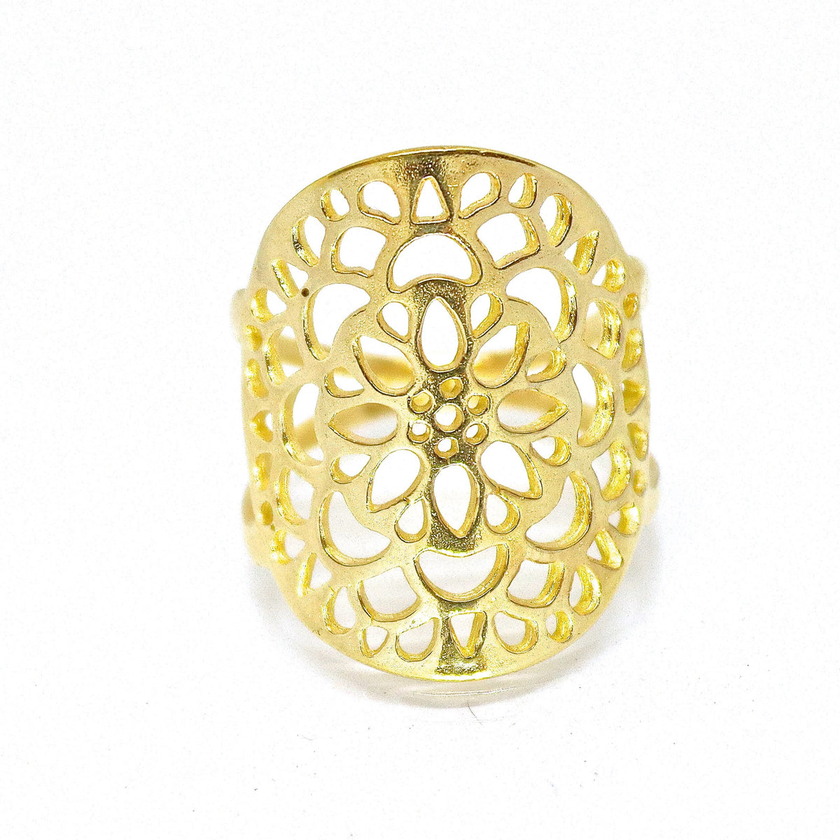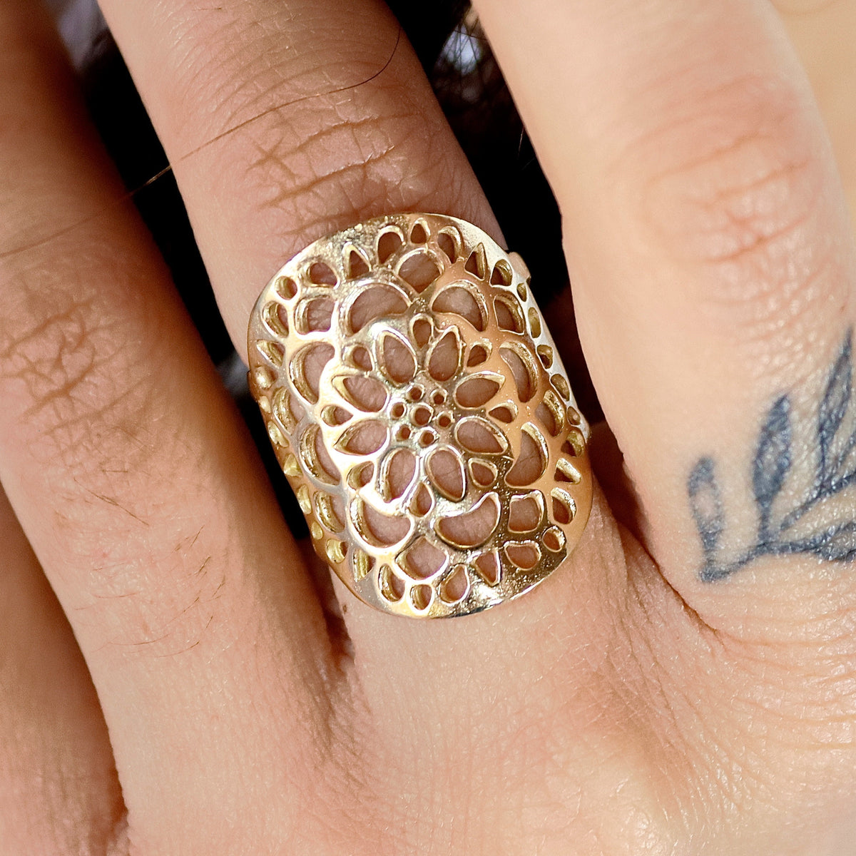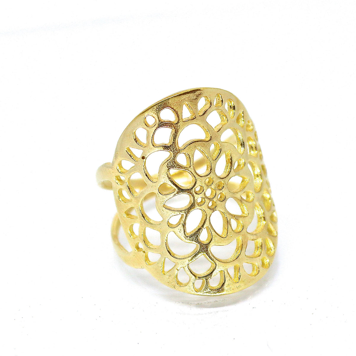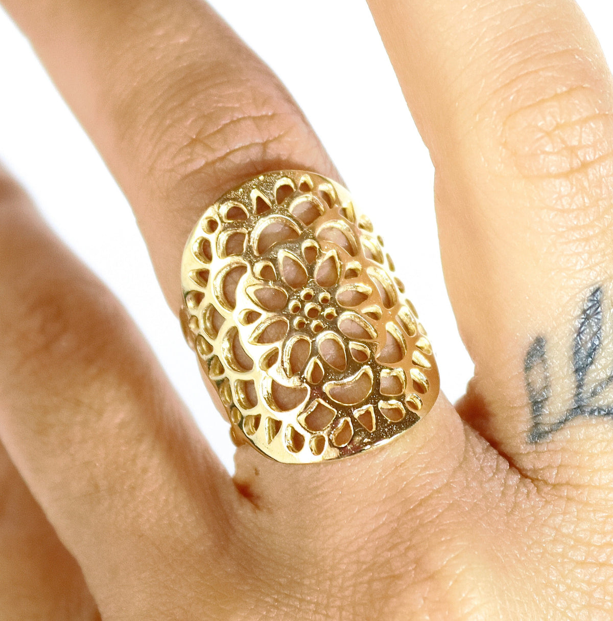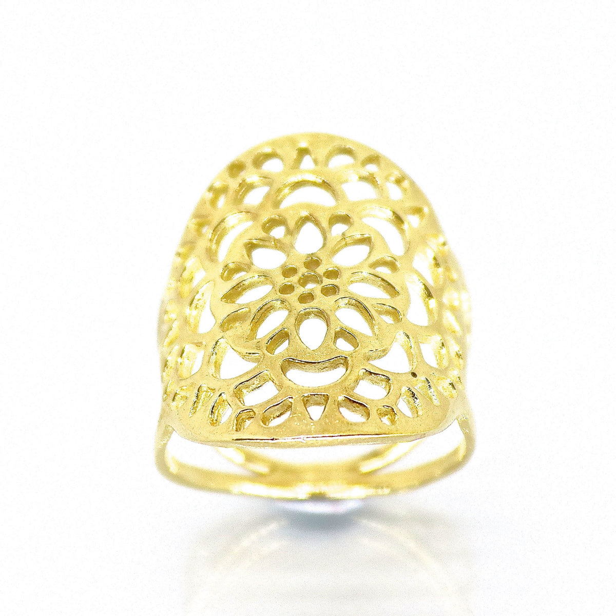 טבעת תחרה פרחונית ארוכה מזהב 14 קראט