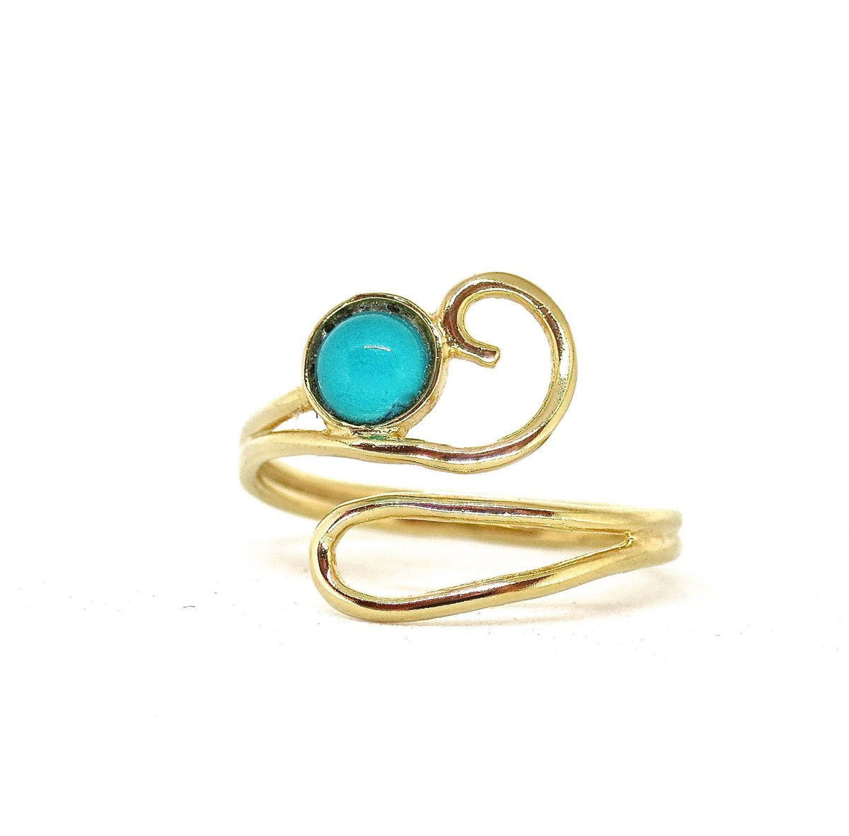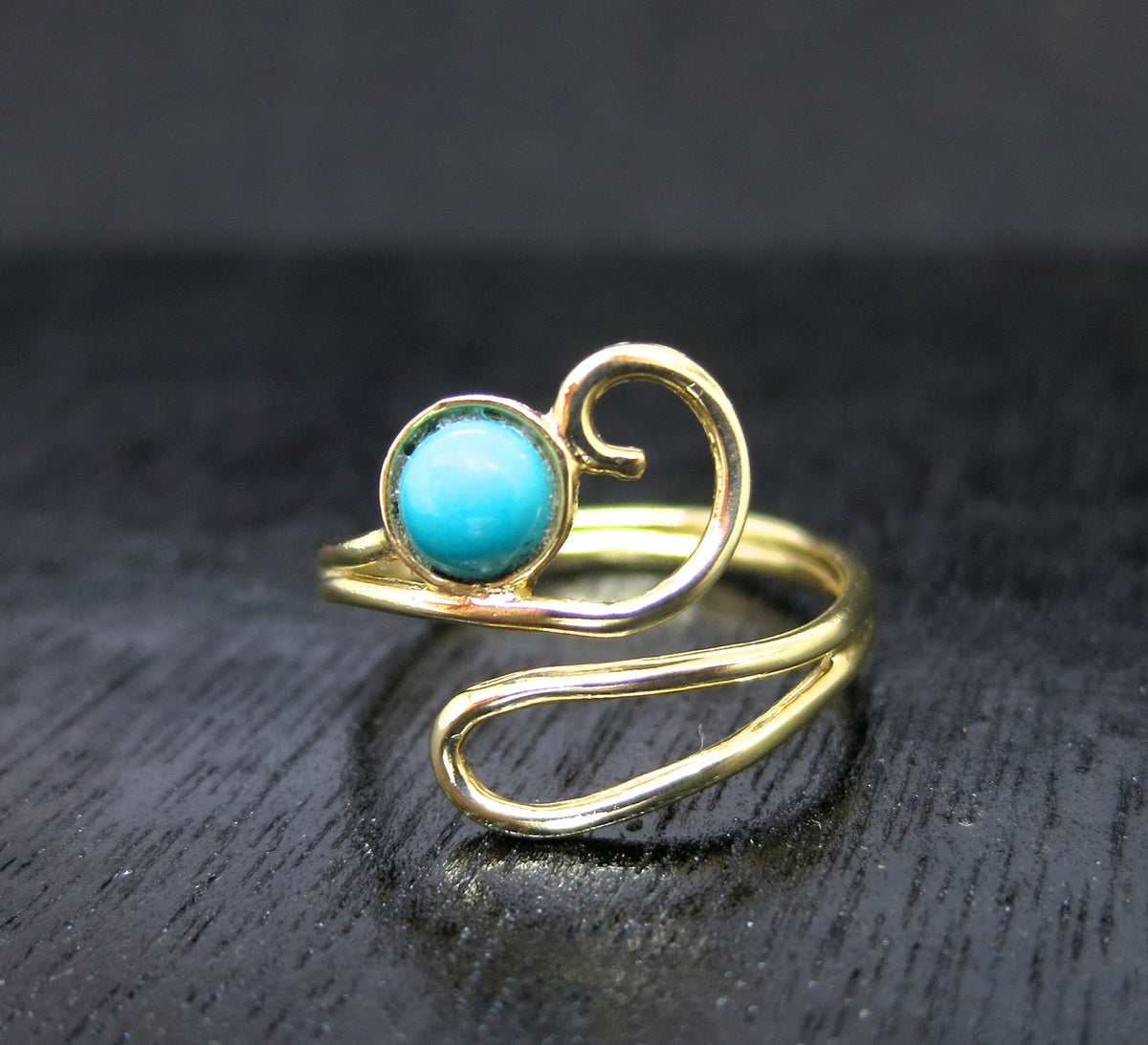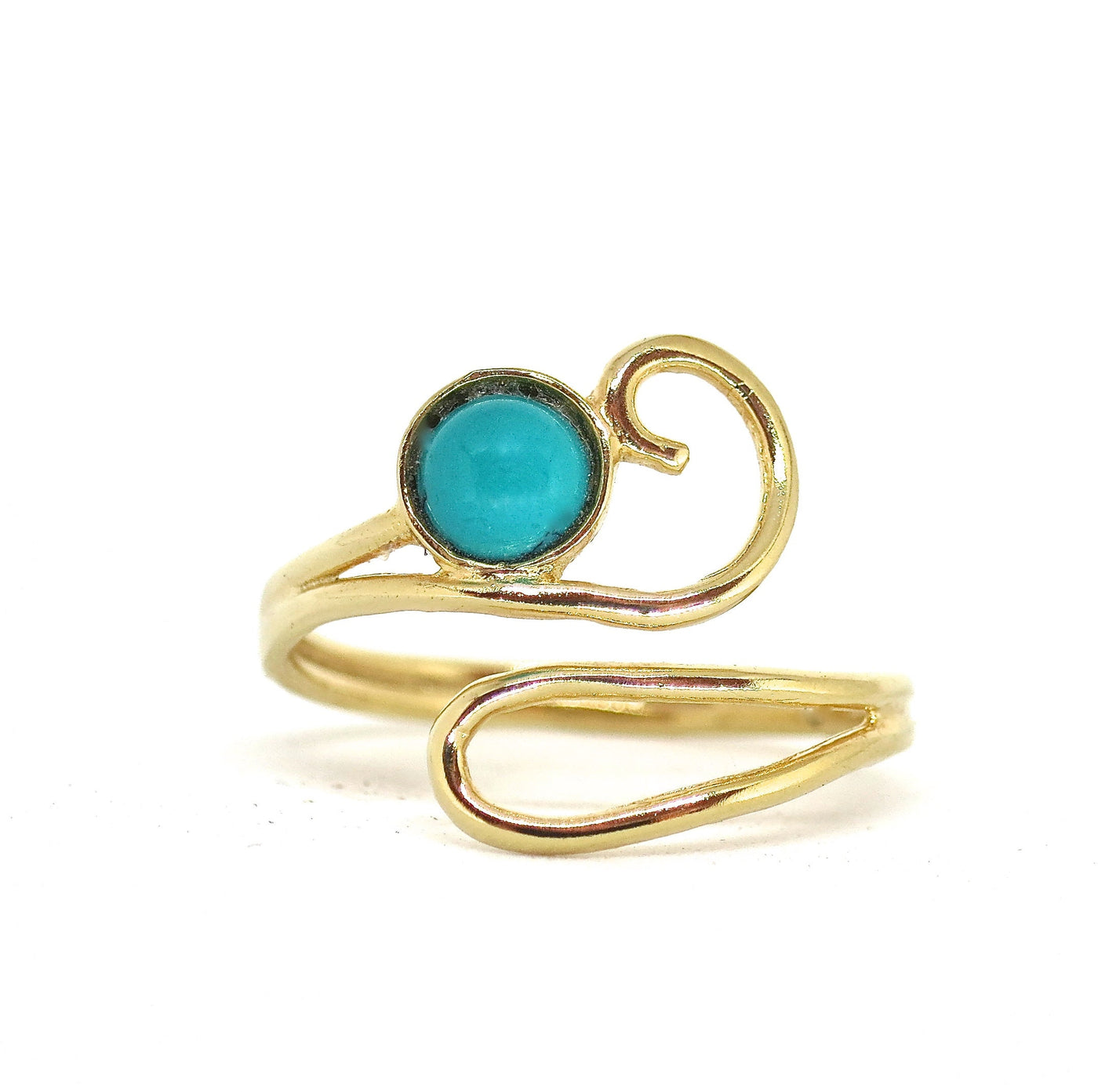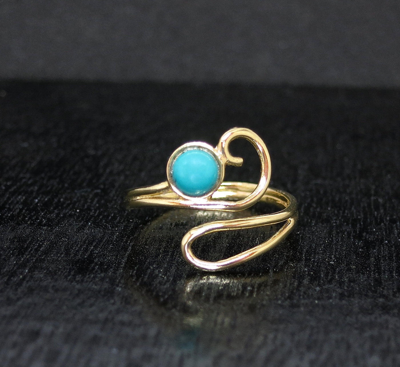 טבעת טורקיז מזהב 14 קראט, טבעת אבן מתכווננת טבעת זהב בוהמי, טבעת כחולה 14 קראט.