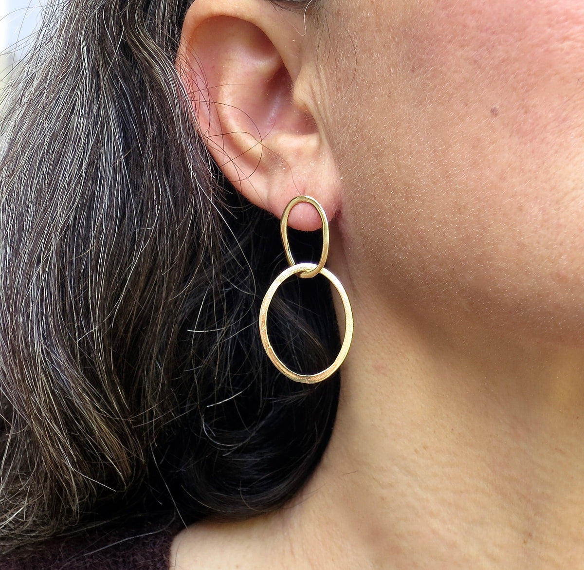עגילי חישוק אובליים מזהב 14 קראט