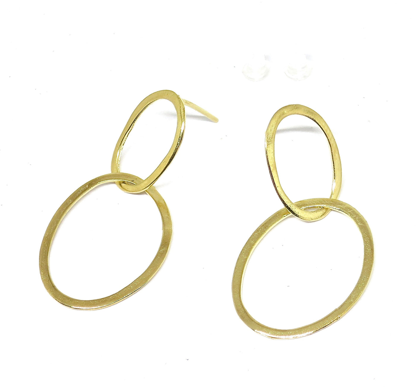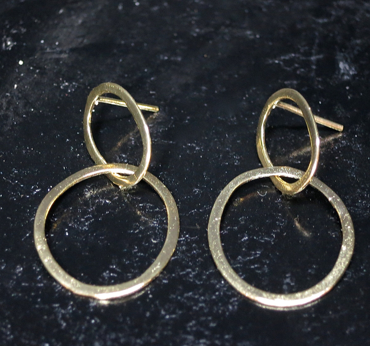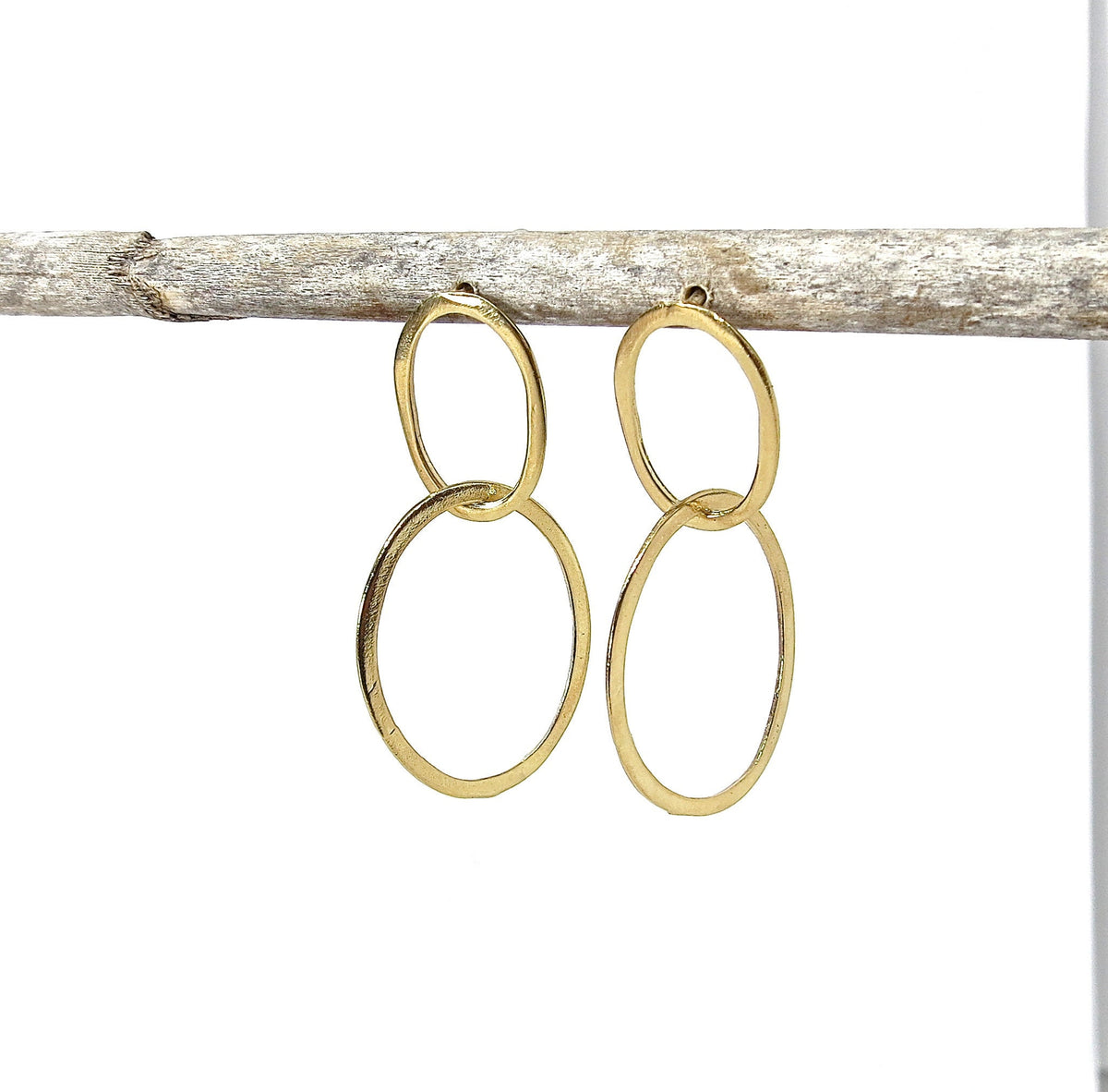 עגילי זהב כפולים בצורת חישוק, עגילי חישוק, עגילי חישוק אופנתיים, עגילי חישוק עגולים מודרניים.