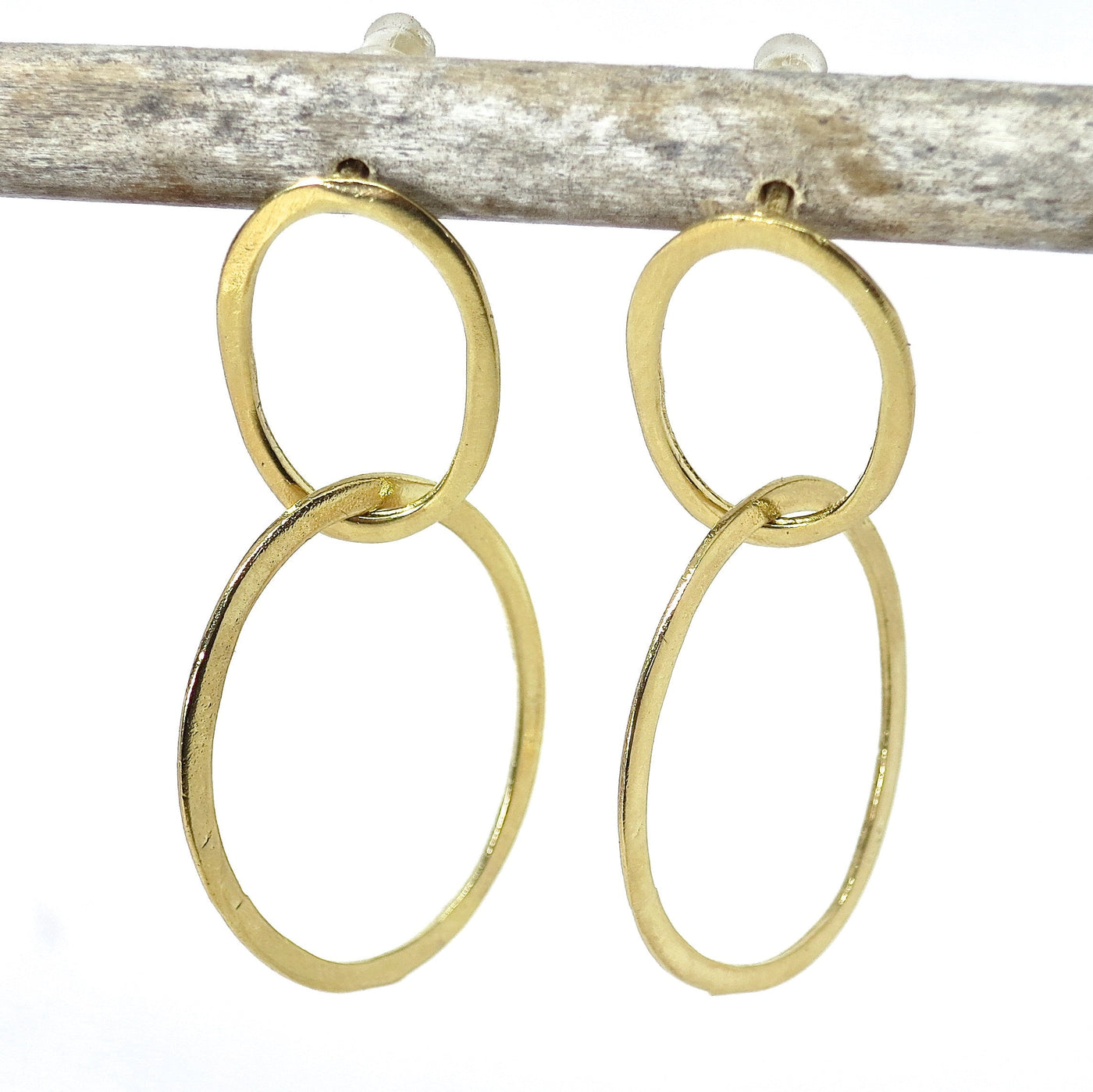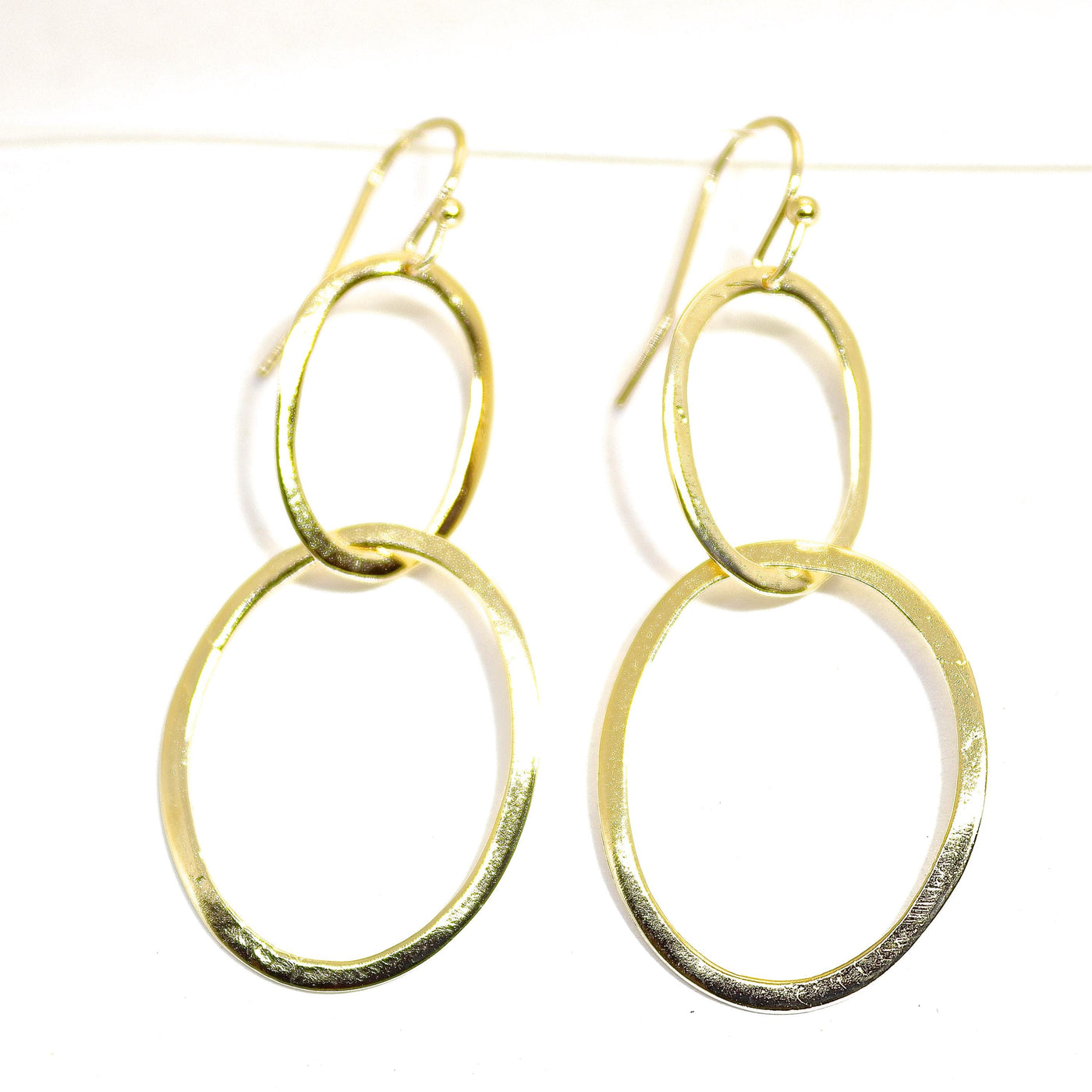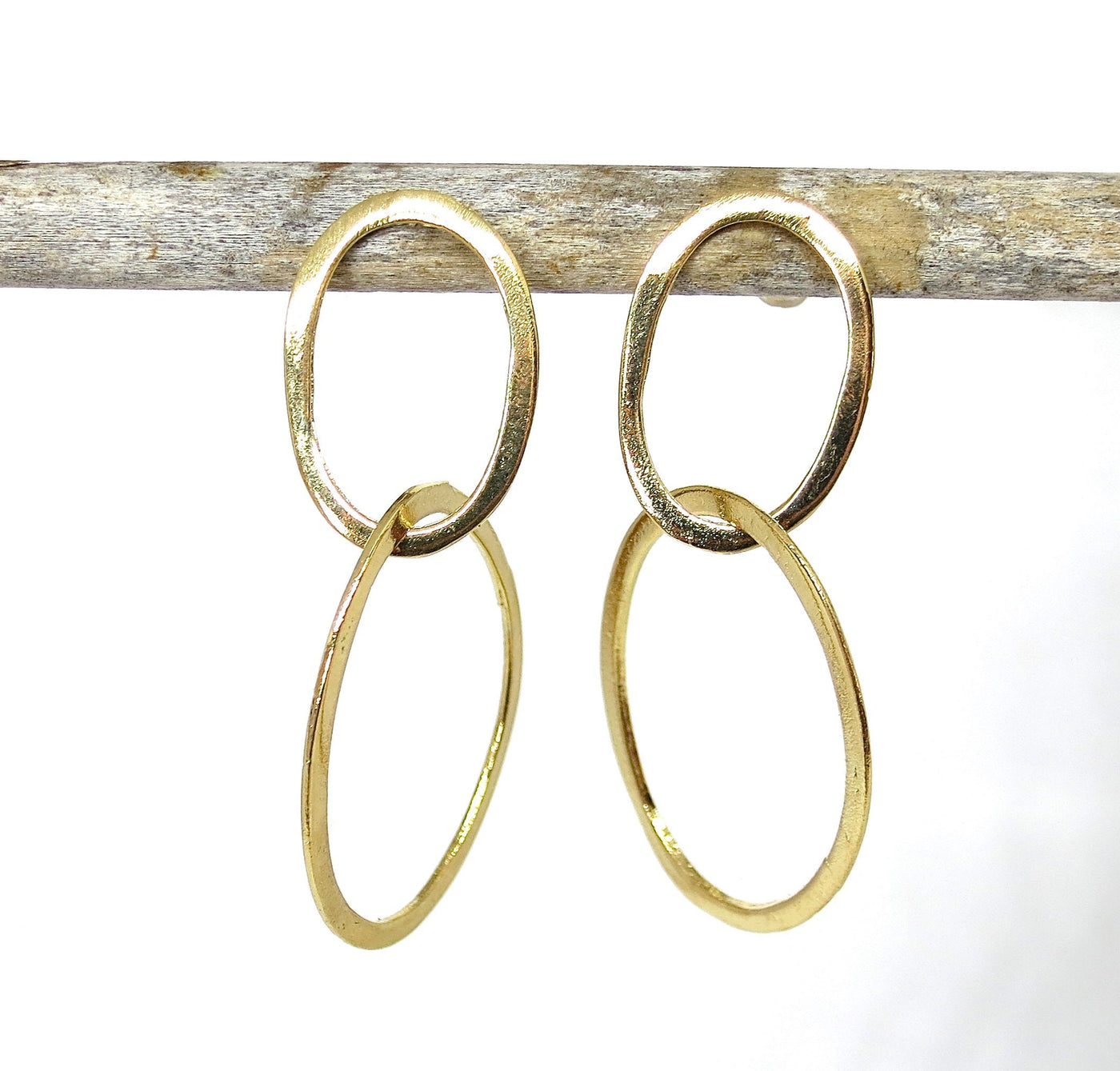 עגילי זהב כפולים בצורת חישוק, עגילי חישוק, עגילי חישוק אופנתיים, עגילי חישוק עגולים מודרניים.